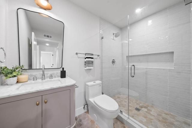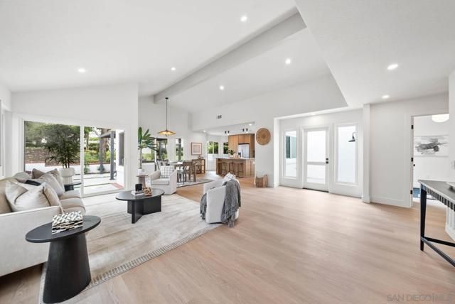 Newly renovated Ocean Hills St. Tropez model offering a seamless transition between indoor & outdoor living boasting a 7,190 square foot lot with a huge and very rare side-yard! This 2 bed/2 bath single level home plus bonus office is an entertainer's dream featuring an open concept living space with soaring vaulted ceiling & exposed beam, recessed lighting, luxury vinyl flooring, a stunning kitchen with spacious island & breakfast bar, timeless cabinetry, dazzling tile backsplash, modern fixtures & finishes, and a charming atrium to further enjoy the outdoors and bring light in! Palatial master retreat with spa-like bath featuring walk-in tiled shower and dual sinks. Low maintenance yard includes patio area with new pergola. Nestled around a private 18-hole golf course, this beautifully maintained and highly sought after 55+ community offers an unparalleled variety of amenities including a heated, Olympic-sized swimming pool, spa, lighted tennis courts, bocce ball courts, fitness center, billiards, and a secure RV storage area. Discover countless ways to stay active with 40 to 50 social clubs & classes! Outdoor lovers will enjoy miles of scenic walking paths, biking trails, and a dedicated dog park for furry companions.