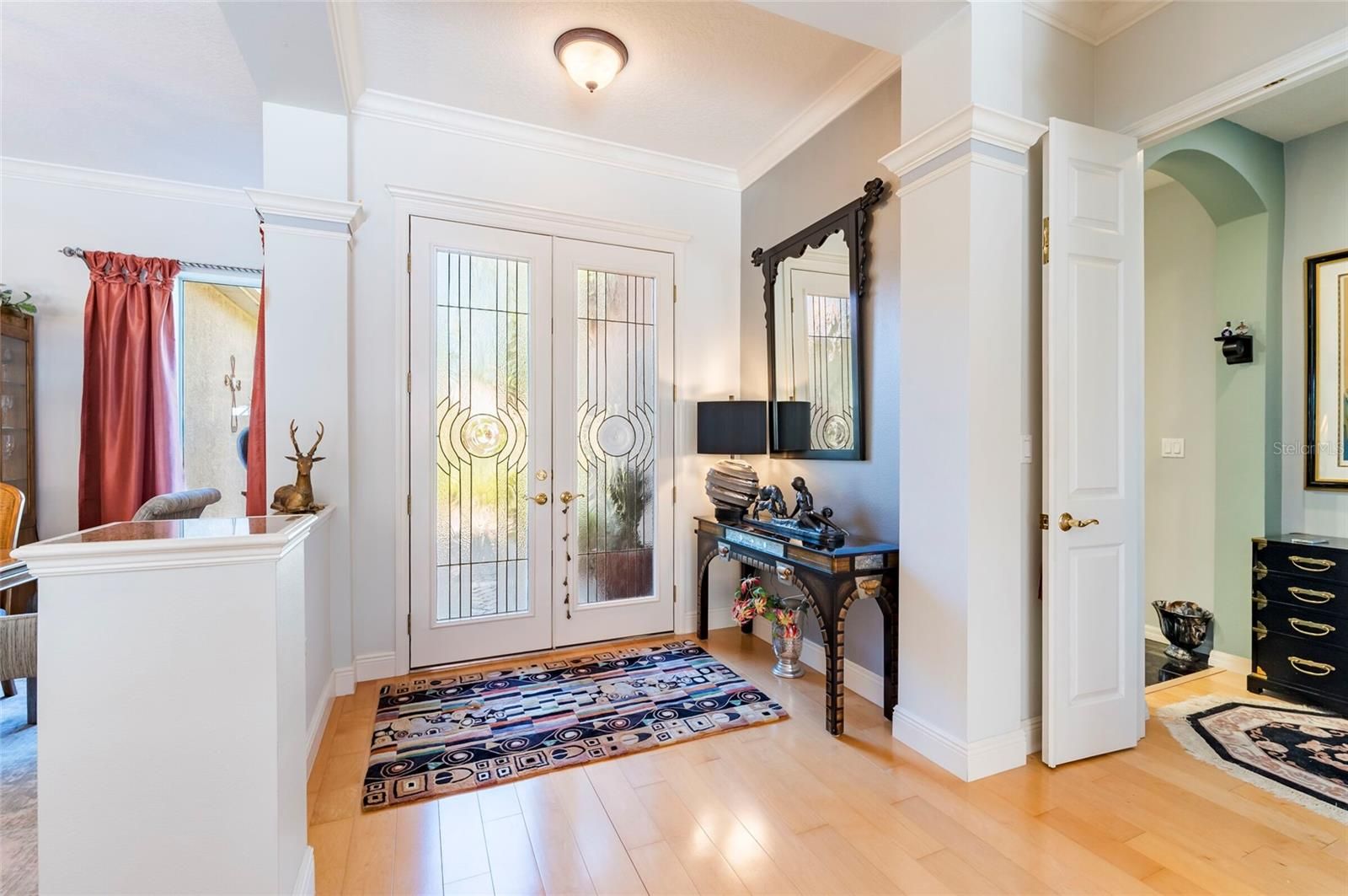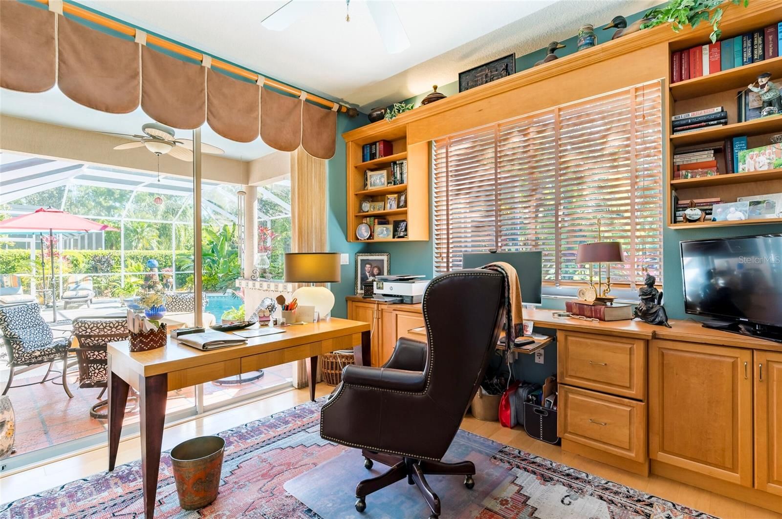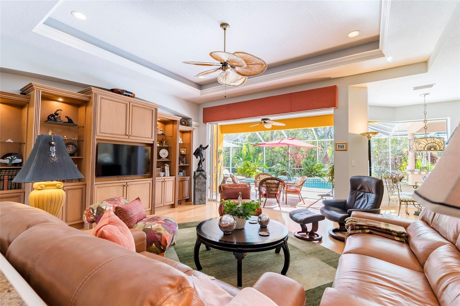 Under contract-accepting backup offers. Custom built, three bedroom and three bath home with den/study on exceptional very private beautifully landscaped lot in Treymore a gated subdivision in the Villages of Palm Aire. Spacious three car garage. Built-in entertainment center in family room. Built-ins in den/study plus wet bar, Stainless steel appliances, red wine and white wine coolers new water heater 2024; new air conditioner 2025 with a ten-year transferable warranty new pool skimmer 2024; new pool filter 2021; pool was resurfaced in 2015 pool heater 2020; Trey ceilings with stained glass front door, crown moldings. New wood kitchen cabinets, with self-close feature. Granite counter-tops marble flooring in guest baths new granite counter-tops and new sinks and faucets in all bath rooms. Roman shower in master walk in shower in guest bath. Aquarium windows in dining room and breakfast area. Convenient to UTC mall Sarasota/Bradenton International Airport. Tons of excellent restaurants with ample shopping and just 15-20 minutes from some of the best beaches in the USA. A short commute by car or golf cart to Palm Aire Country Club. A member owned Country Club. With two excellent golf courses, eight tennis courts plus Pickle Ball and a PADEL court. Fitness facility at the tennis Pro shop staffed by an excellent Tennis Pro. Palm Aire Country Club offers a variety optional memberships; social, family Golf, family tennis. Excellent Pro shop staffed by PGA Golf Pros and a great selection of name brand clothing. Reasonable HOA fee and no CDD fee.