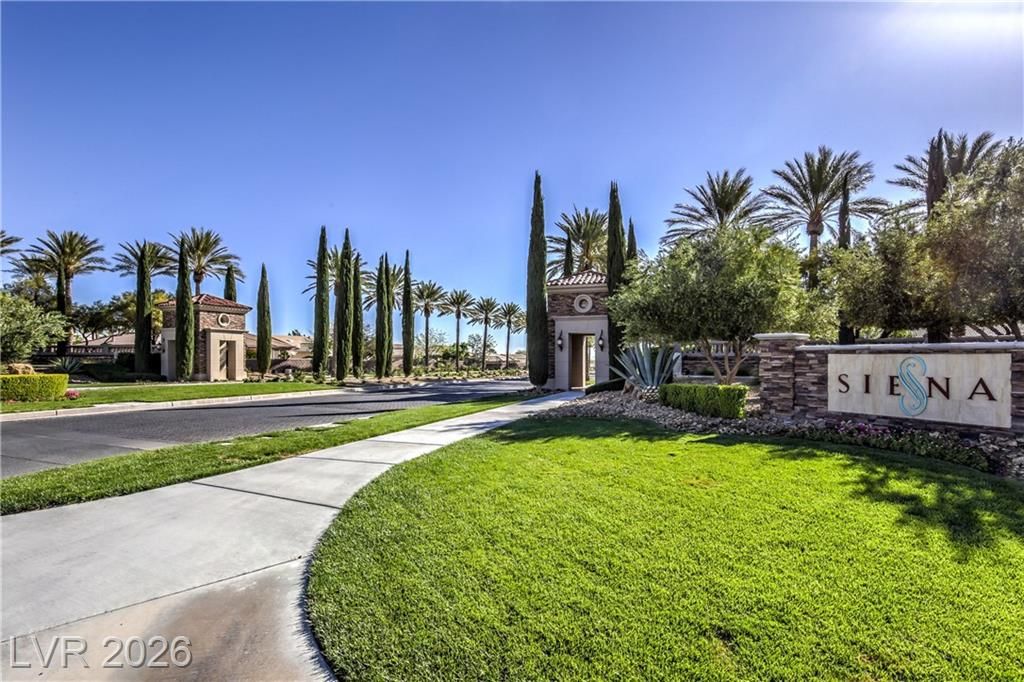 Gorgeous Remodeled Golf Course Home with a Spacious 3-Car Garage located in the Heart of Siena a 55+ Guard Gated Golf Course Community in Summerlin. Enjoy Beautiful Golf Course Views from this Home located near the T-Box. Stunning Entry into a Beautifully Landscaped Gated Courtyard featuring a Fountain, Patio, and Garden. Completely Remodeled and Relandscaped. Almost every Room has a Beautiful View of Nature. Open Floor Plan with Neutral Colors. Spacious 3-Car Garage has Built-In Storage. Agent/owner can accommodate a quick close of escrow.
