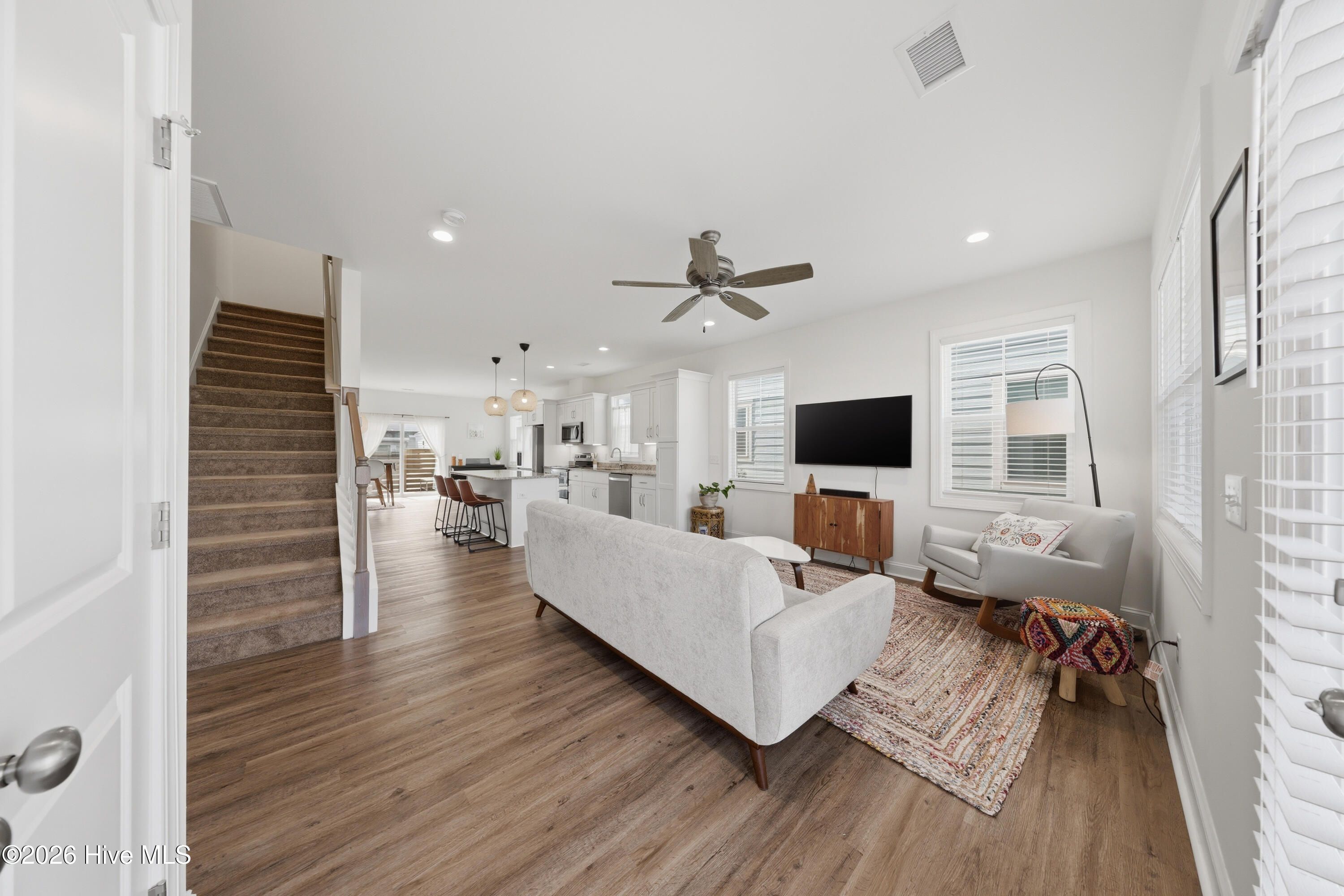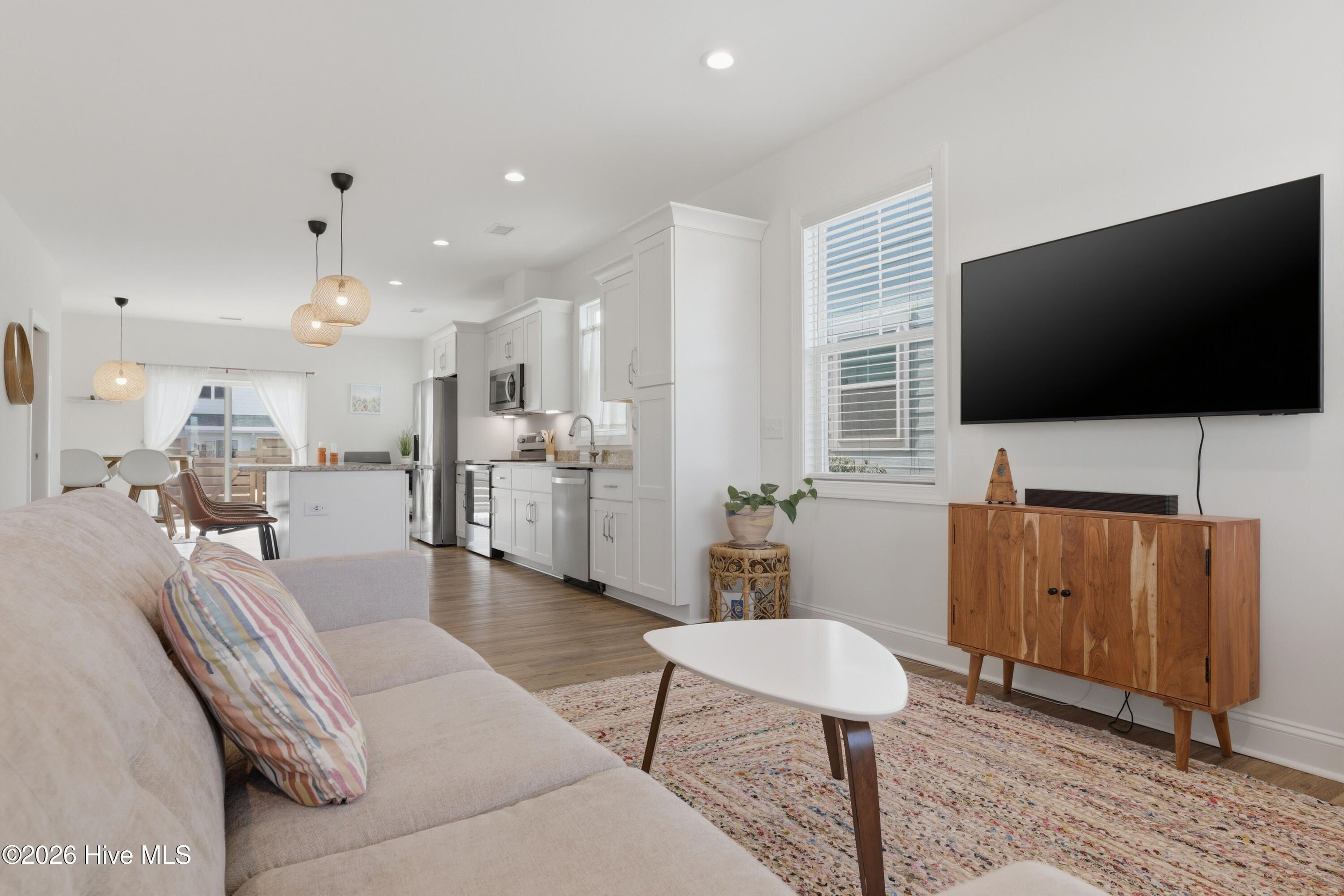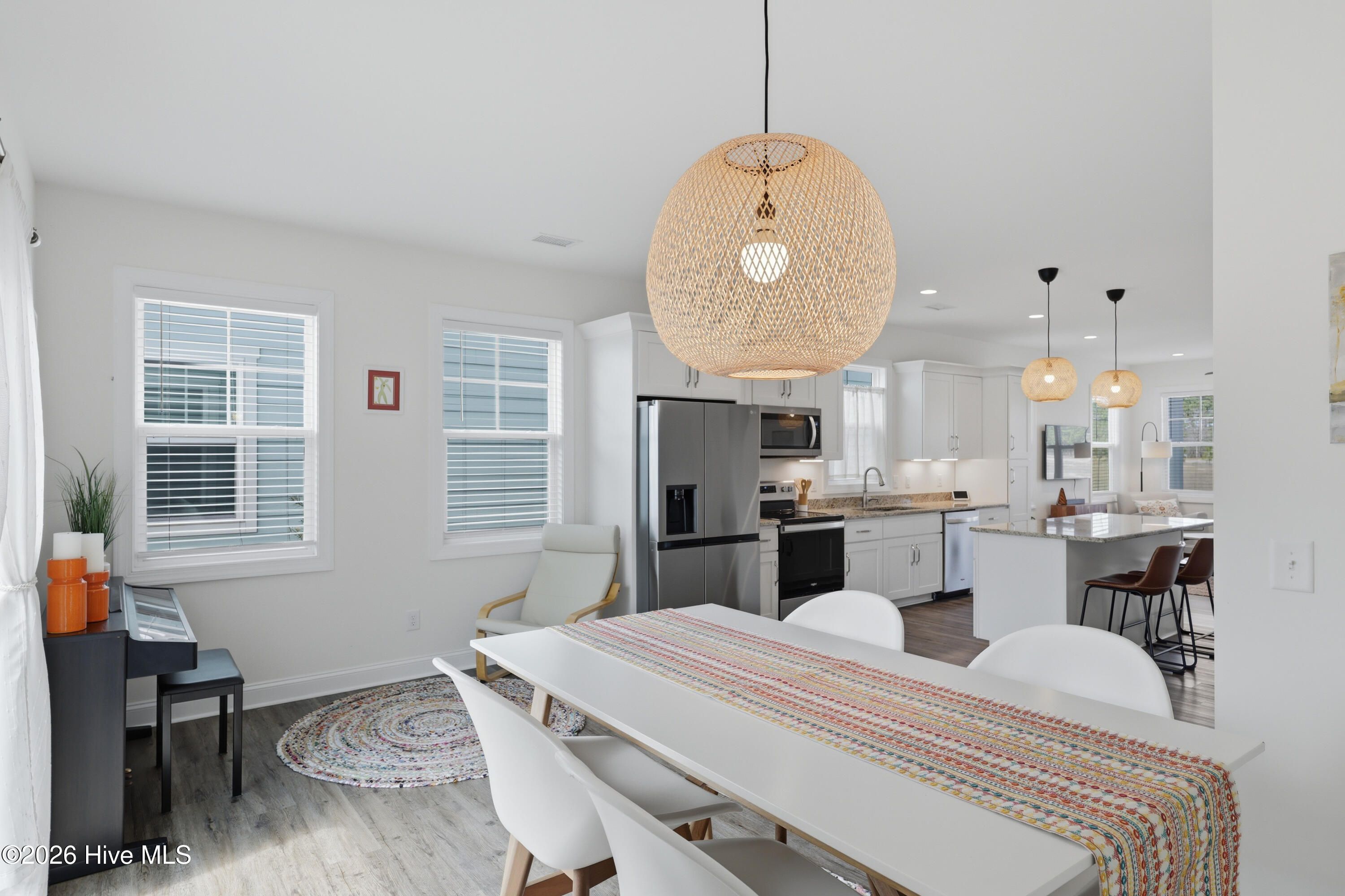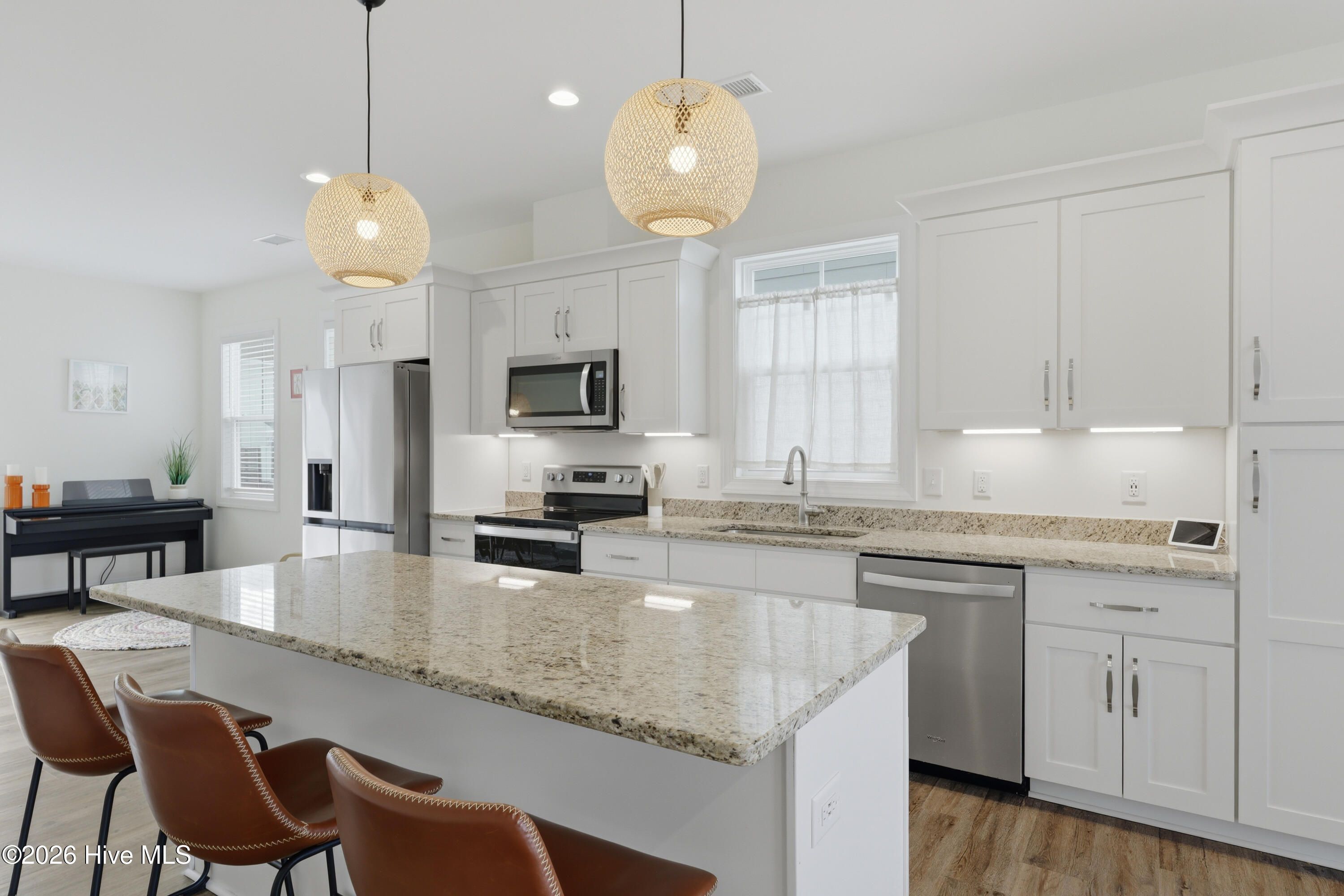 Enjoy low-maintenance living at its best in this charming Sloop townhome offering 2 bedrooms and 2.5 baths in a bright, inviting end-unit. Perfectly positioned with nothing built across the street, the home enjoys peaceful pond views and an open setting that enhances the sense of space. Inside, the thoughtfully designed floorplan creates an effortless flow for everyday living and entertaining. The main living area feels warm and welcoming, filled with natural light and complemented by custom light fixtures. The kitchen features white cabinetry with soft-close doors and dovetailed drawers, under-cabinet lighting, a pantry cabinet, refrigerator surround, and a large center island with generous storage. Then, a versatile dual-purpose space easily accommodates dining along with a home office or music area, offering flexibility for today's lifestyle. Upstairs, the primary suite is a true retreat, featuring a private covered porch overlooking the pond, a walk-in closet, and an en suite bath with dual vanities and walk-in shower with built-in bench. The secondary bedroom also includes a private en suite bath, closet, and built-in wardrobe, providing comfort and convenience for homeowners and guests alike. All appliances convey, and the home includes blinds throughout. Step outside to a private fenced patio with pavers and gated entry, ideal for relaxing, dining outdoors, or enjoying quiet moments. Ownership is easy and low-maintenance, with homeowners responsible for the interior of the home while the HOA manages many exterior services. These include a comprehensive ''all-in'' master insurance policy, landscaping, irrigation, exterior building maintenance, pressure washing, pest control, and termite bond. Set within the RiverLights community, residents enjoy access to a 38-acre lake with scenic 3.4-mile trail, as well as walking and biking trails that wind throughout the neighborhood. A vibrant mixed-use district continues to grow with restaurants, a bike shop, a nail salon, and additional businesses planned. The community also offers an impressive range of amenities, including a clubhouse with billiards, two fitness centers, two pools, a dog park, playgrounds, bocce courts, and pickleball. 6-month minimum lease permitted by HOA; no short-term rentals.