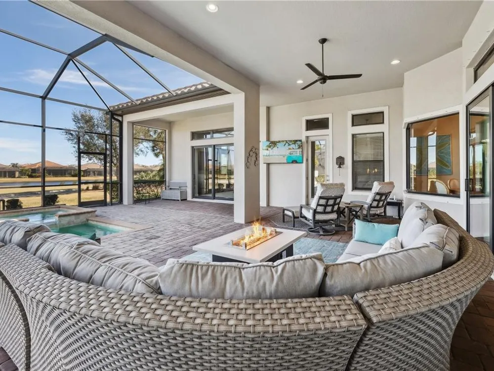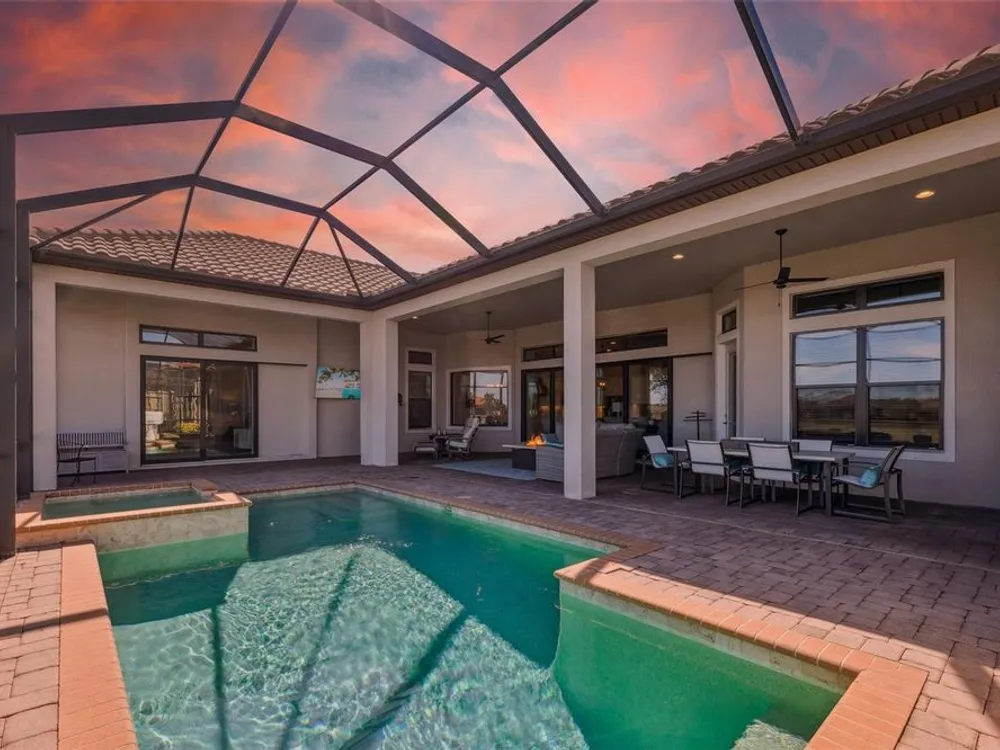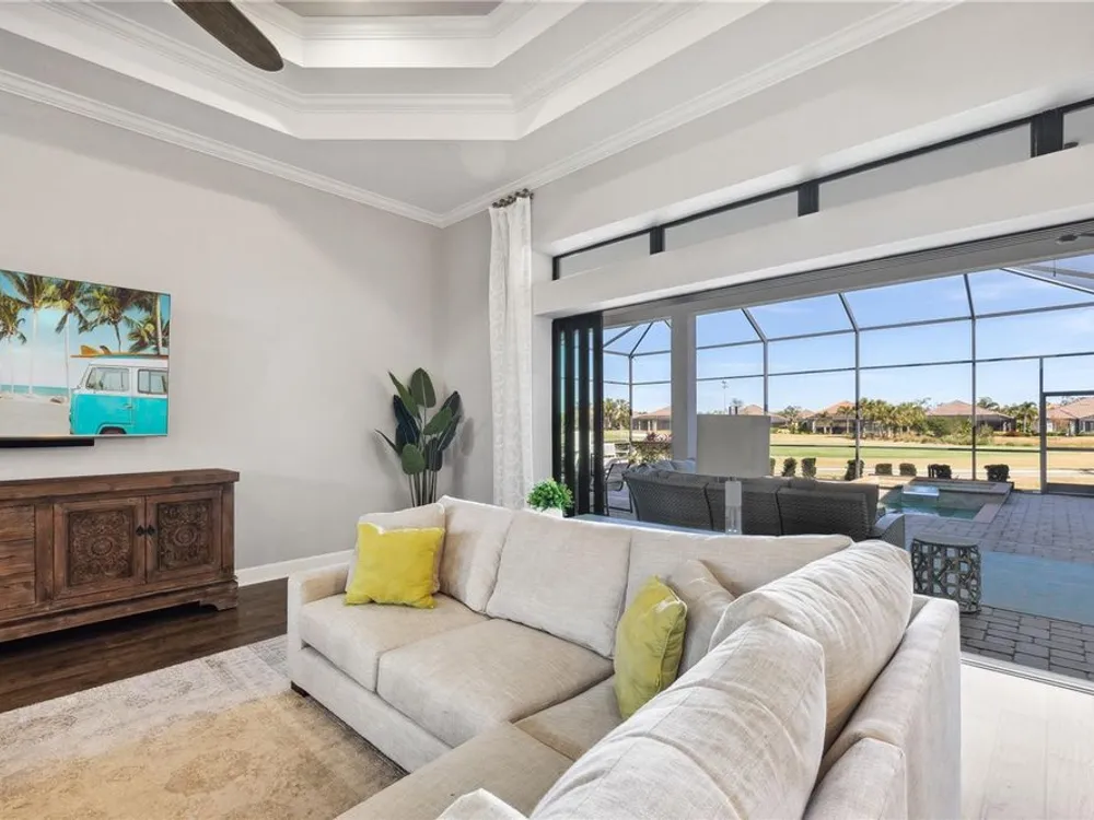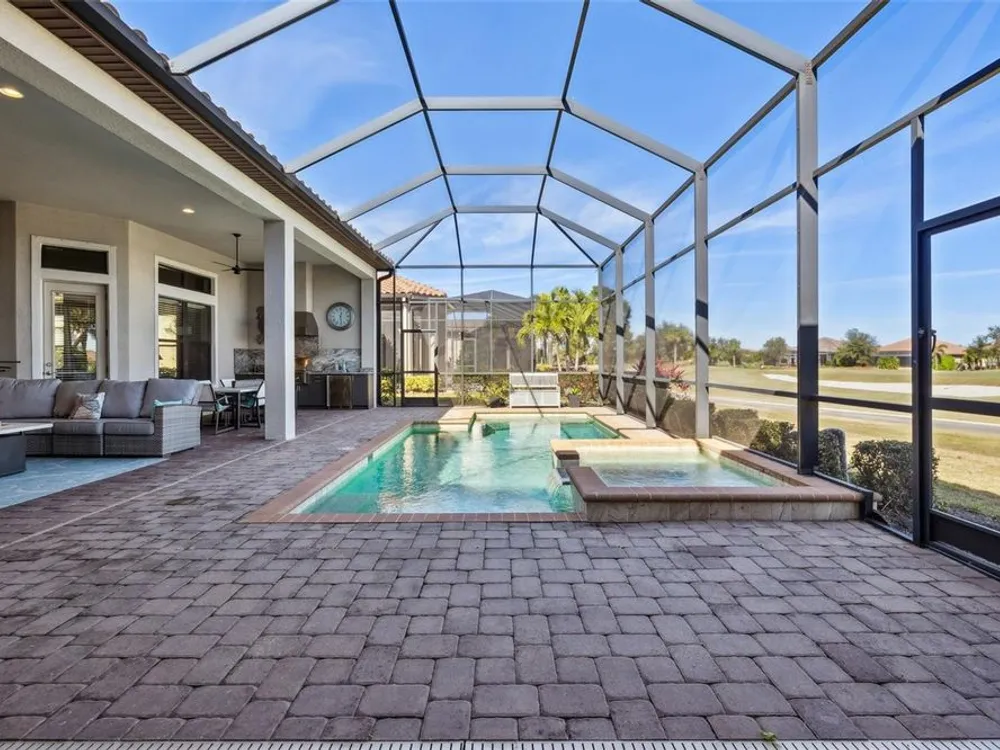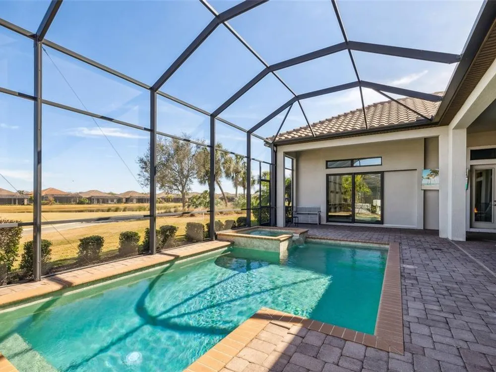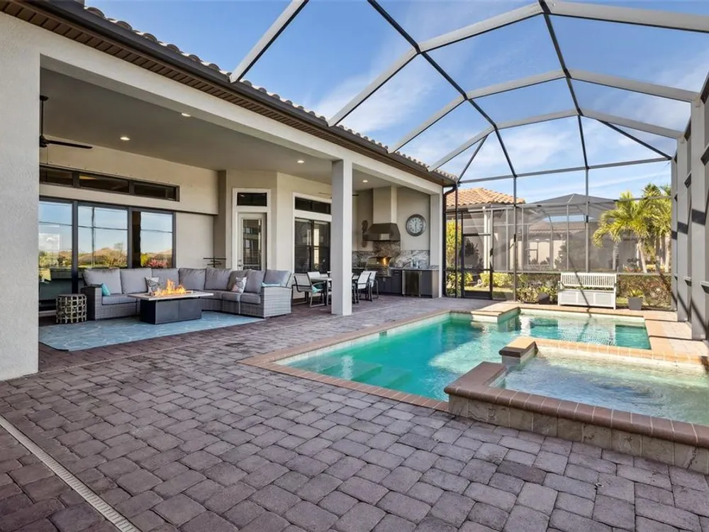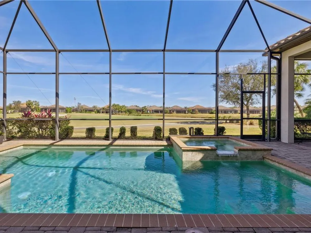PRICE IMPROVEMENT! | Motivated Sellers – Esplanade Golf Estate Sellers have adjusted the pricing to reflect market conditions while maintaining the premium this home deserves for its golf course location, private pool, and luxury upgrades. Now $1,699,000 — a rare opportunity in Lakewood Ranch’s premier golf community. Perfectly positioned on the 8th green of the sought-after Esplanade Golf & Country Club at Lakewood Ranch, this meticulously maintained Mercedes Model blends refined design with resort-style living. Offering 3 bedrooms with en-suite baths, a half bath, a dedicated office with French doors, and a spacious bonus/media room wired for surround sound, this home features soaring 12-ft tray ceilings, crown molding, and luxury laminate wood flooring throughout. The gourmet kitchen showcases an oversized island, quartz countertops, 5-burner gas cooktop, double convection ovens, walk-in pantry, upgraded cabinetry, and under-cabinet lighting. The primary suite offers custom-built closets, a spa-inspired bath with large-format porcelain tile, soaking tub, walk-in shower, and direct lanai access. Outside, enjoy a screened lanai with a custom heated pool, spa, and full outdoor kitchen, perfect for entertaining against panoramic golf and water views. Technology upgrades include Cat 5 LAN wiring, Cat 6 outlets, and high-speed internet throughout. The 3-car garage offers overhead storage, a workshop area, and water line for a garage refrigerator. HOA fees include a bundled golf membership, maintenance-free living, and access to world-class amenities—two pools, tennis & pickleball courts, fitness centers, a full-service spa, and on-site dining at The Barrel House Bistro & The Bahama Bar. Just minutes from Lakewood Ranch Main Street, University Town Center, and Florida’s top beaches, this is your chance to own a premium golf course estate at an exceptional value. Passing 4-point inspection available to review. Now priced at $1,749,000 — schedule your private showing today and bring your offer!