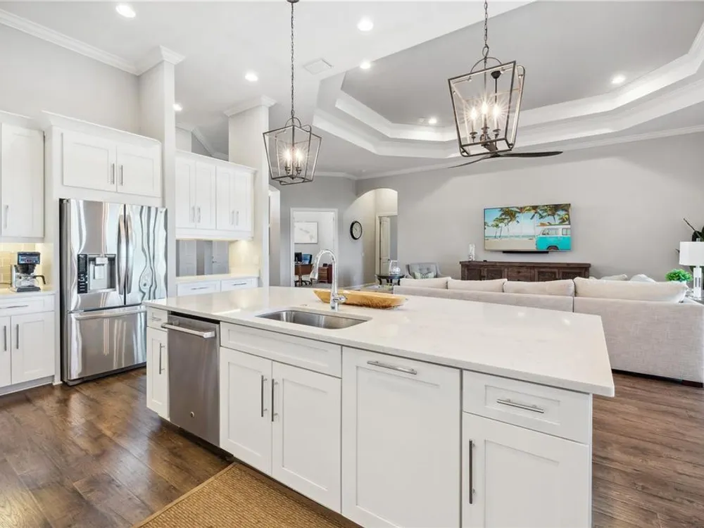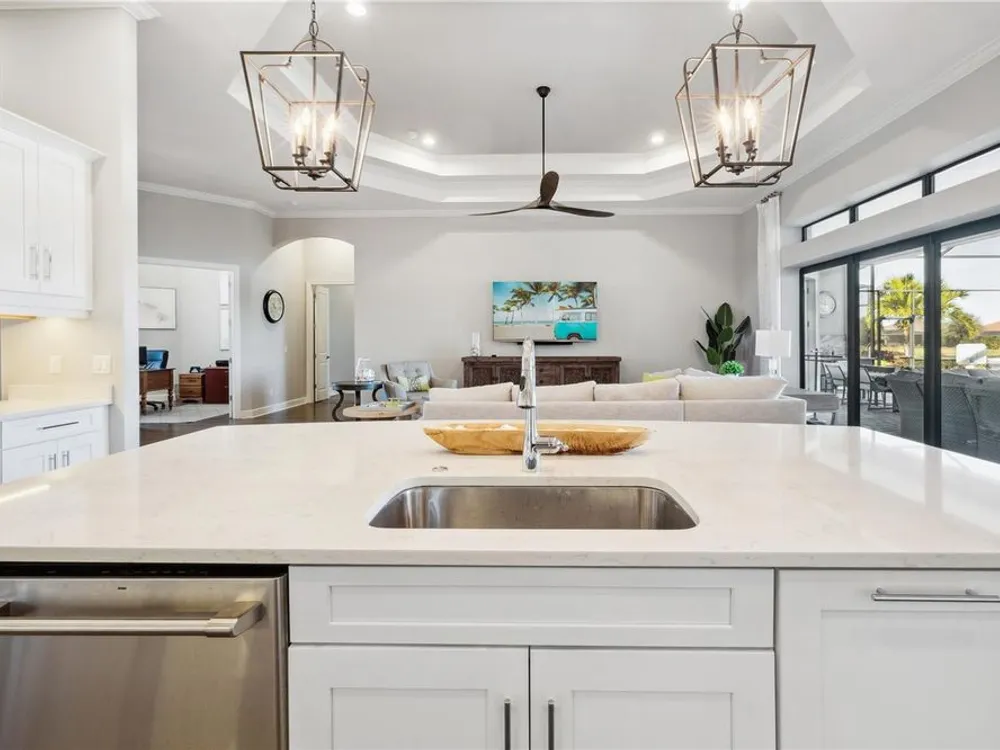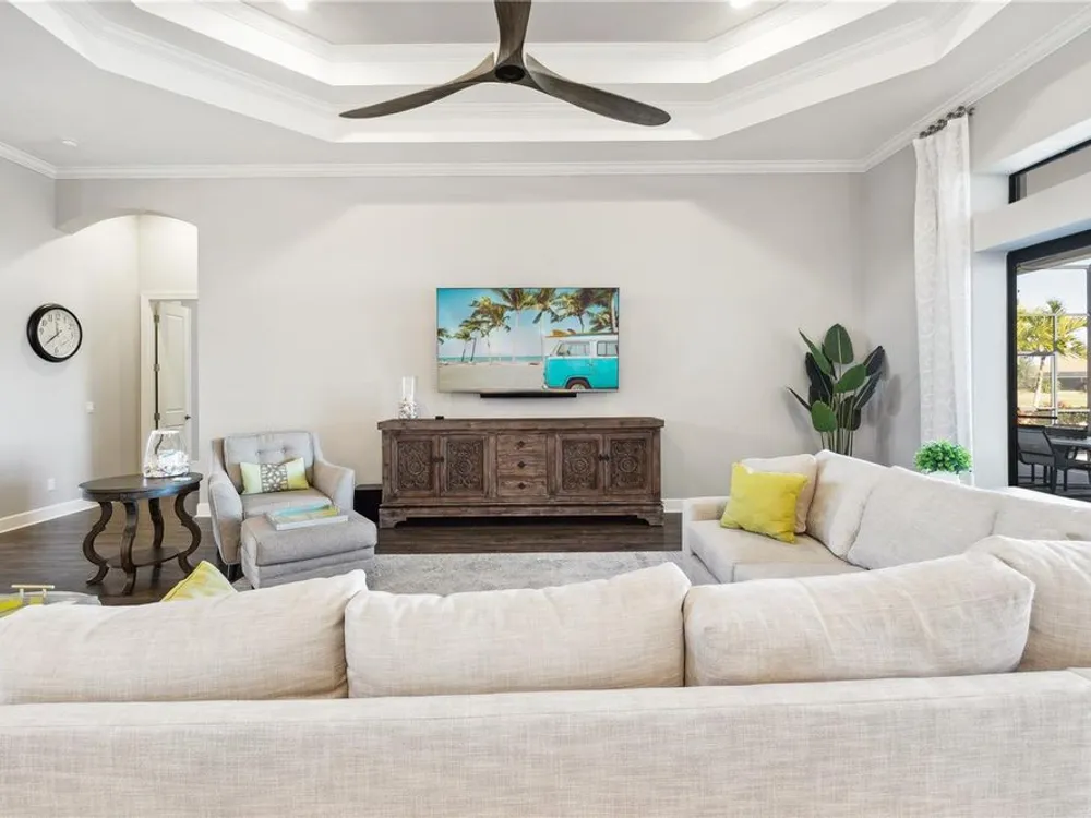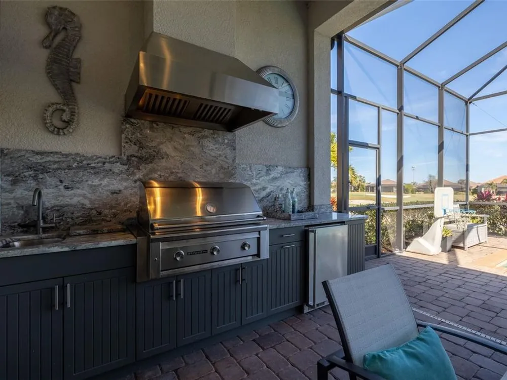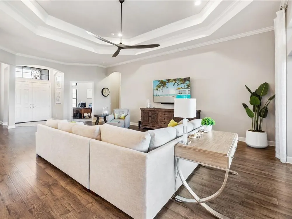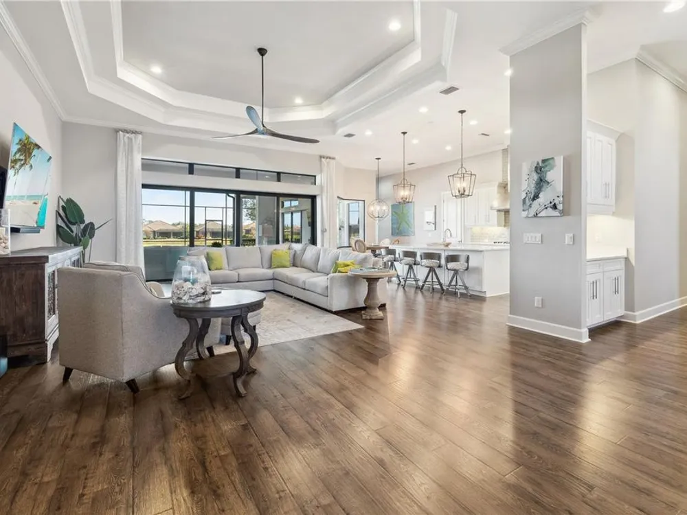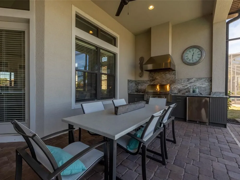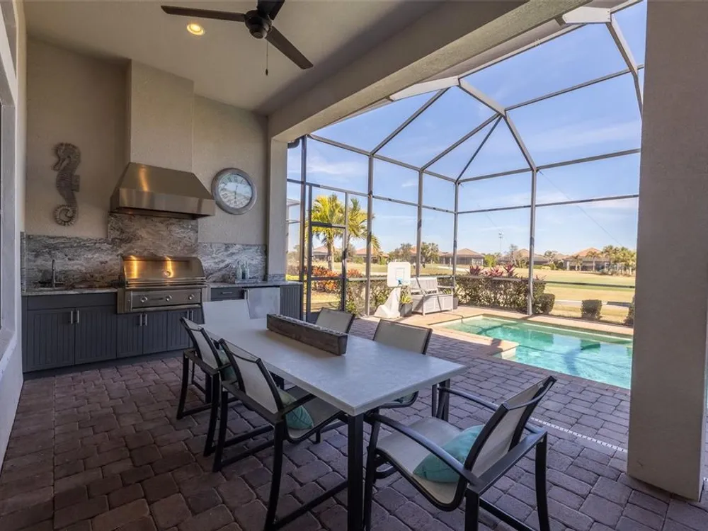 PRICE IMPROVEMENT! | Motivated Sellers – Esplanade Golf Estate Sellers have adjusted the pricing to reflect market conditions while maintaining the premium this home deserves for its golf course location, private pool, and luxury upgrades. Now $1,699,000 — a rare opportunity in Lakewood Ranch’s premier golf community. Perfectly positioned on the 8th green of the sought-after Esplanade Golf & Country Club at Lakewood Ranch, this meticulously maintained Mercedes Model blends refined design with resort-style living. Offering 3 bedrooms with en-suite baths, a half bath, a dedicated office with French doors, and a spacious bonus/media room wired for surround sound, this home features soaring 12-ft tray ceilings, crown molding, and luxury laminate wood flooring throughout. The gourmet kitchen showcases an oversized island, quartz countertops, 5-burner gas cooktop, double convection ovens, walk-in pantry, upgraded cabinetry, and under-cabinet lighting. The primary suite offers custom-built closets, a spa-inspired bath with large-format porcelain tile, soaking tub, walk-in shower, and direct lanai access. Outside, enjoy a screened lanai with a custom heated pool, spa, and full outdoor kitchen, perfect for entertaining against panoramic golf and water views. Technology upgrades include Cat 5 LAN wiring, Cat 6 outlets, and high-speed internet throughout. The 3-car garage offers overhead storage, a workshop area, and water line for a garage refrigerator. HOA fees include a bundled golf membership, maintenance-free living, and access to world-class amenities—two pools, tennis & pickleball courts, fitness centers, a full-service spa, and on-site dining at The Barrel House Bistro & The Bahama Bar. Just minutes from Lakewood Ranch Main Street, University Town Center, and Florida’s top beaches, this is your chance to own a premium golf course estate at an exceptional value. Passing 4-point inspection available to review. Now priced at $1,749,000 — schedule your private showing today and bring your offer!