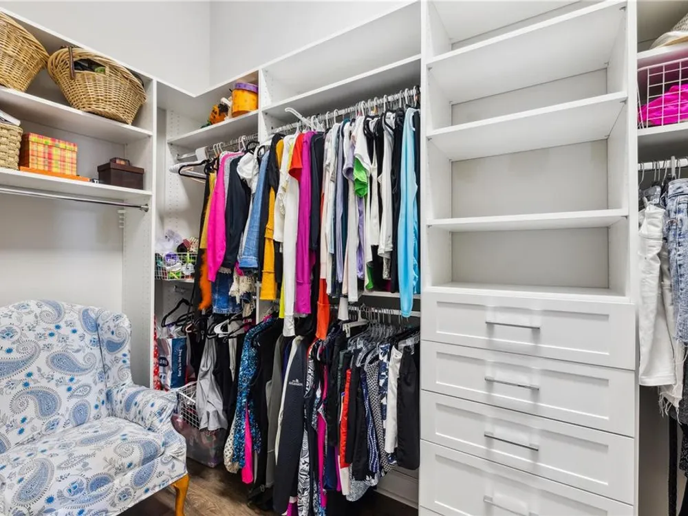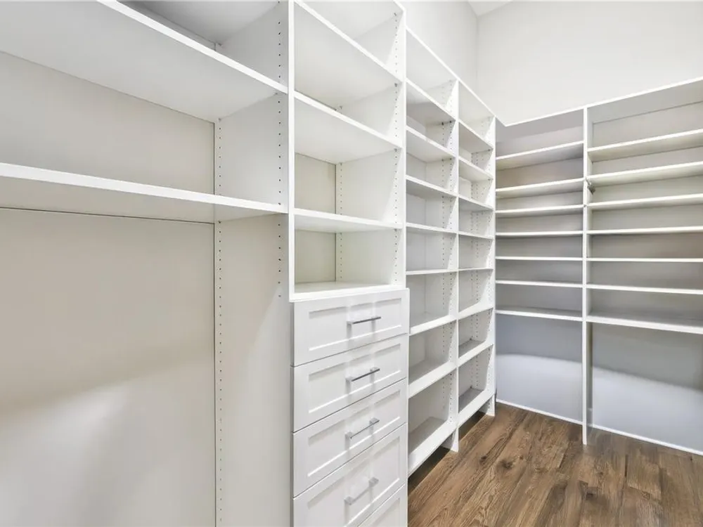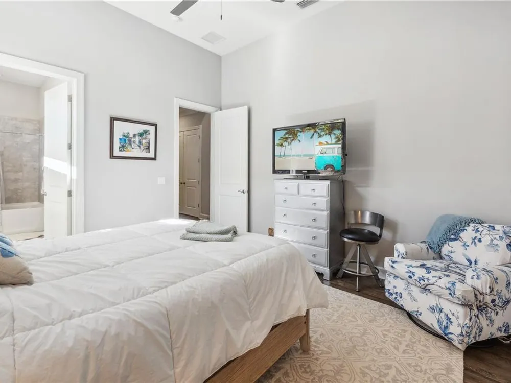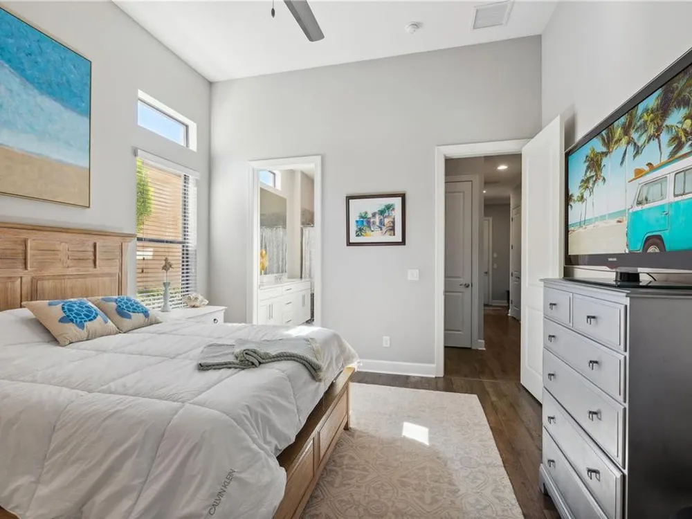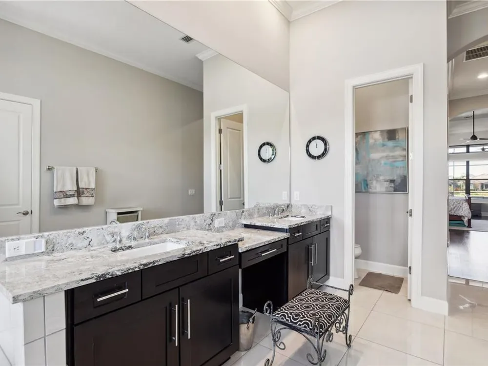 - Ceiling Fan(s), Crown Molding, Eat-in Kitchen, High Ceilings, In-Wall Pest Control, Open Floorplan, Main Level Primary, Split Bedrooms, Stone Counters, Thermostat, Tray Ceiling(s), Vaulted Ceiling(s), Walk-In Closet(s), Window Treatments
