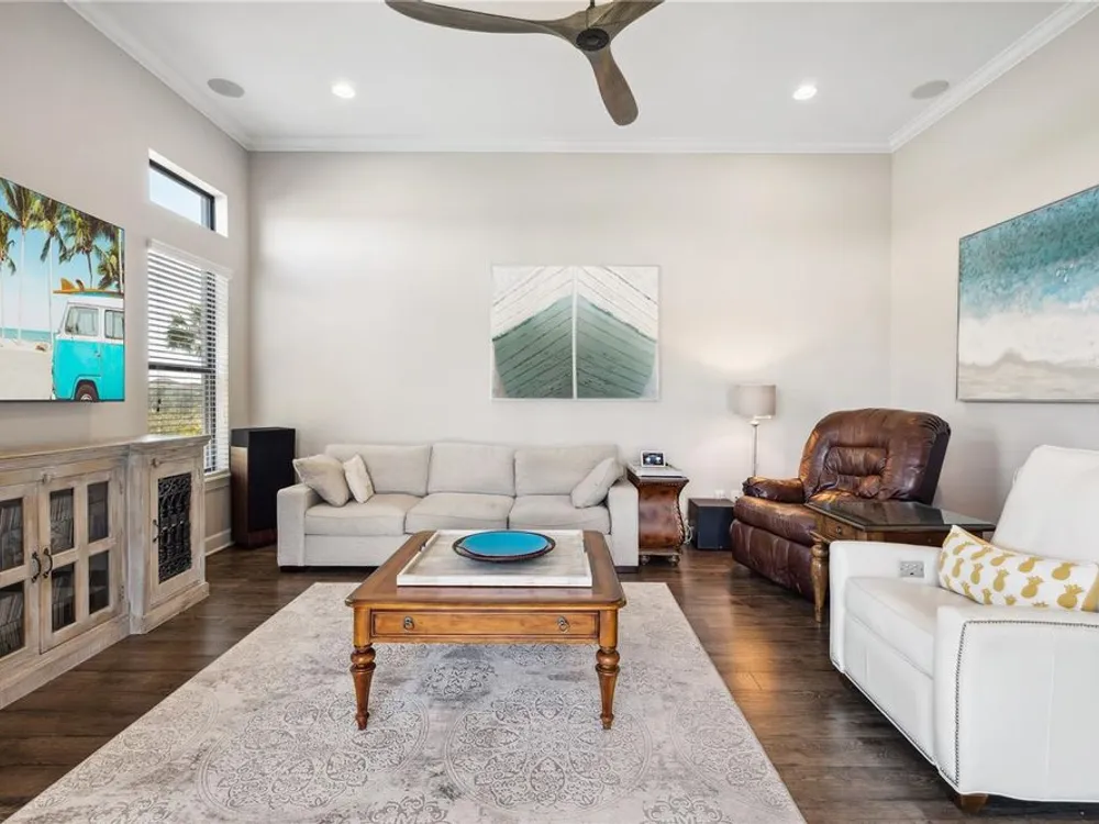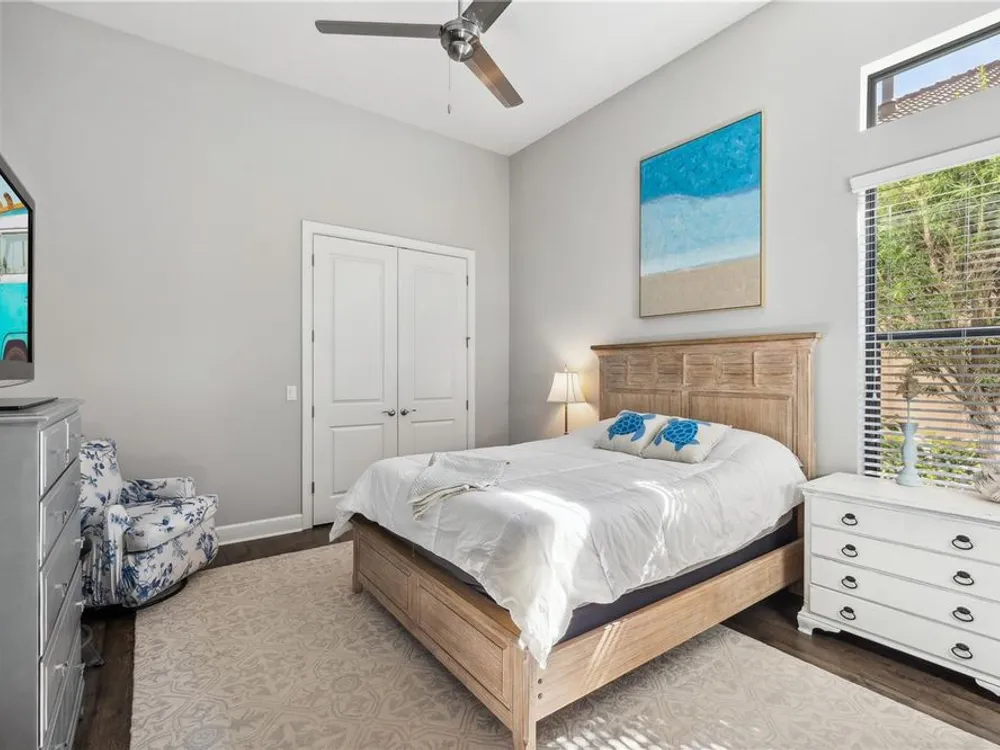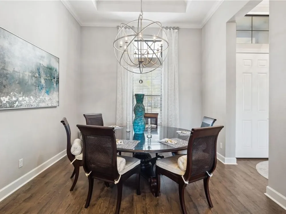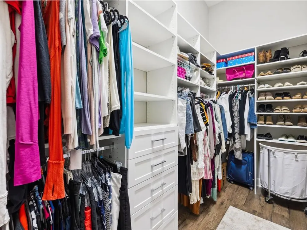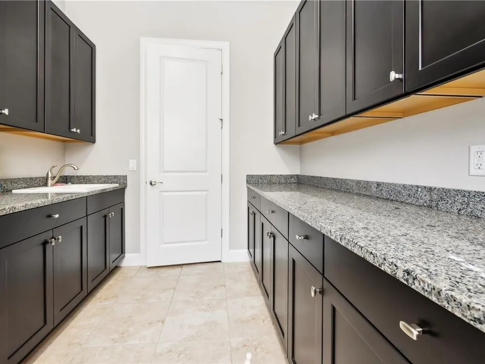 - Ceiling Fan(s), Crown Molding, Eat-in Kitchen, High Ceilings, In-Wall Pest Control, Open Floorplan, Main Level Primary, Split Bedrooms, Stone Counters, Thermostat, Tray Ceiling(s), Vaulted Ceiling(s), Walk-In Closet(s), Window Treatments