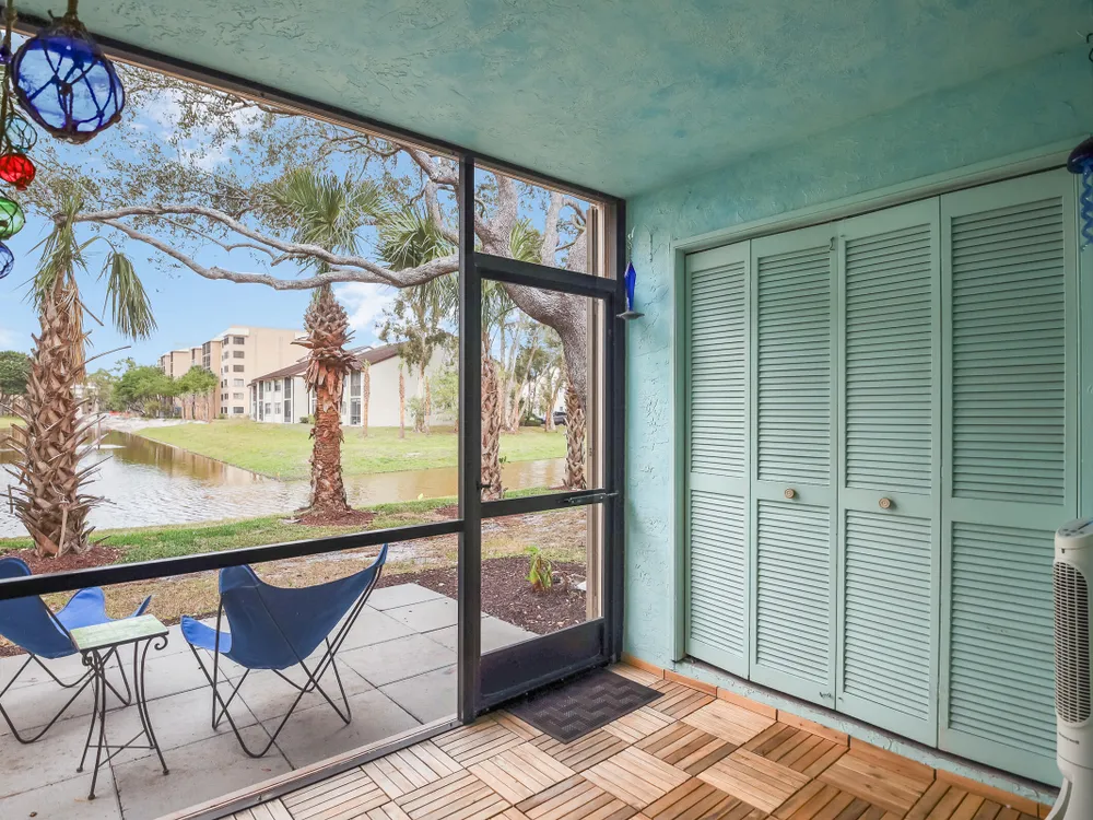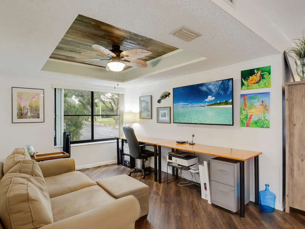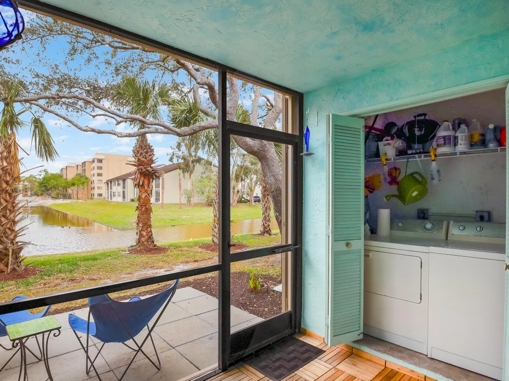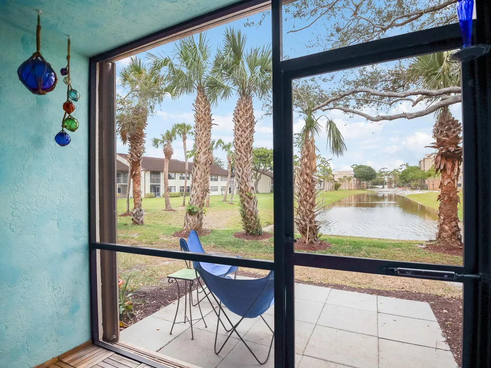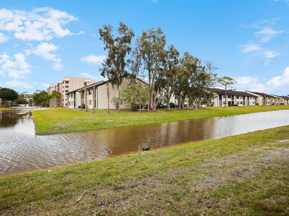 PRICE REDUCED - First Floor End Apartment in 2 story building. Beautifully remodled 3 bedroom 2 bath unit. SOLID ASSOICATION WITH GOOD RESERVES: Hurrcaine windows throughout. Third bedroom open and used as art studio and relaxing. Master bedroom has built in fireplace and TV with views of waterway. Beautiful kitchen with high cabinets also offering additional cabinets in dining area. There are 3 pools, hot tub, clubhouse, fitness center, tennnis, pickleball etc. Easy access to Turnpike, shopping etc First Floor apartment makes this especially desireable. Make an appointment to see this perfect unit.