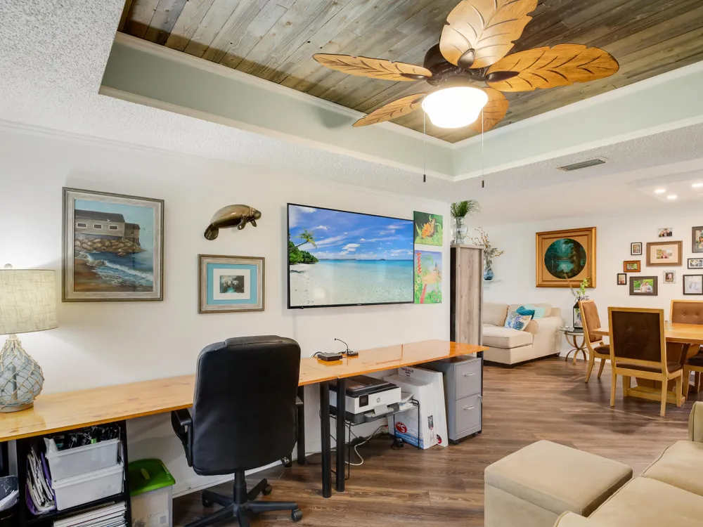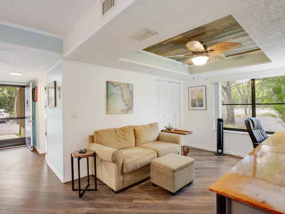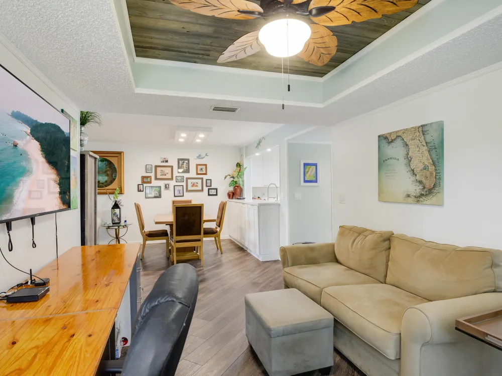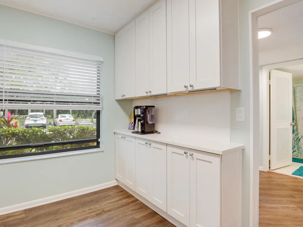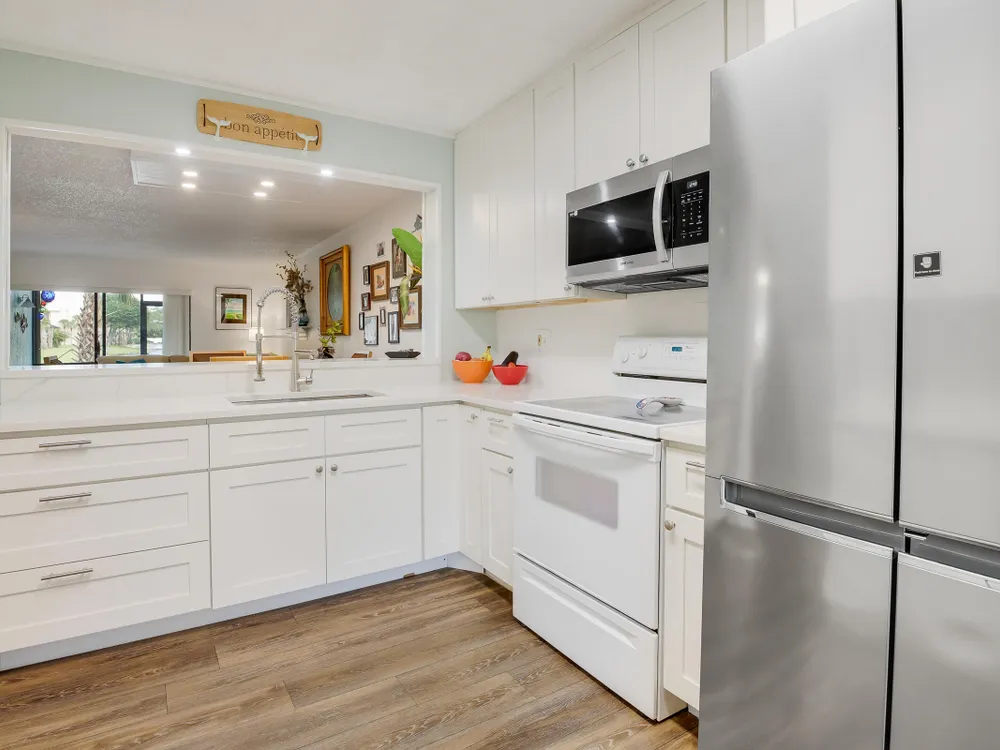PRICE REDUCED - First Floor End Apartment in 2 story building. Beautifully remodled 3 bedroom 2 bath unit. SOLID ASSOICATION WITH GOOD RESERVES: Hurrcaine windows throughout. Third bedroom open and used as art studio and relaxing. Master bedroom has built in fireplace and TV with views of waterway. Beautiful kitchen with high cabinets also offering additional cabinets in dining area. There are 3 pools, hot tub, clubhouse, fitness center, tennnis, pickleball etc. Easy access to Turnpike, shopping etc First Floor apartment makes this especially desireable. Make an appointment to see this perfect unit.