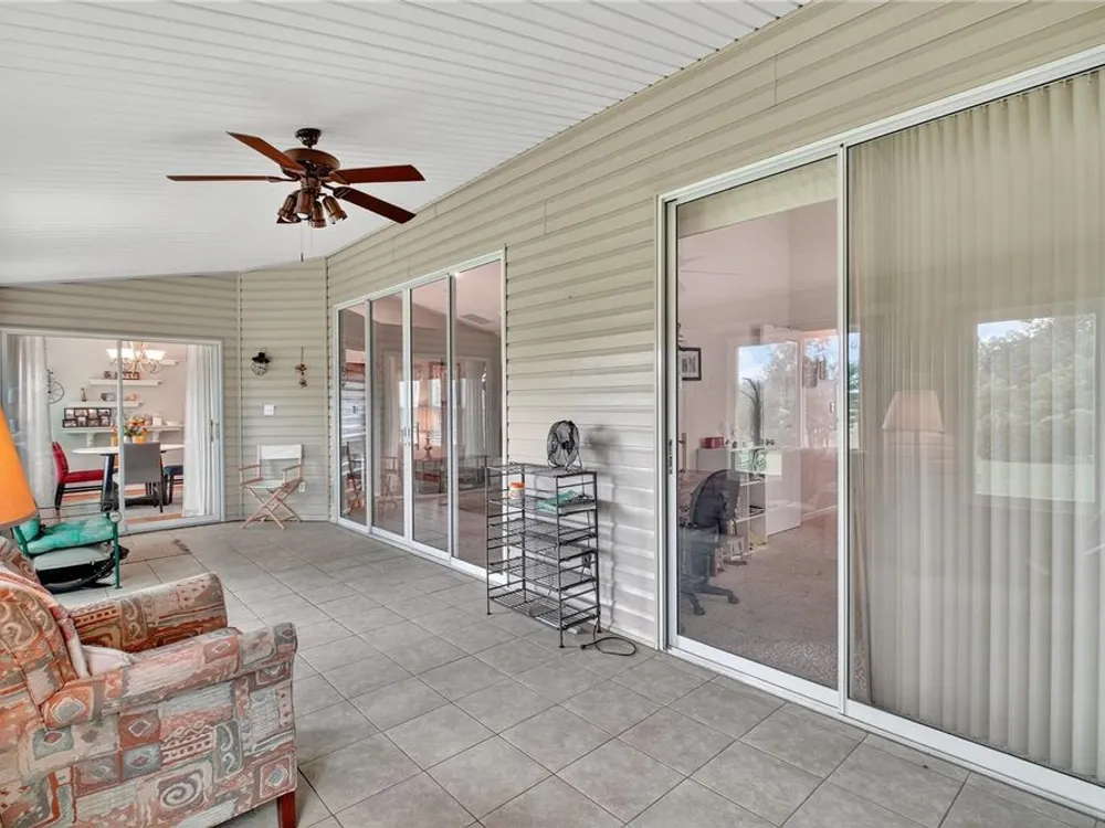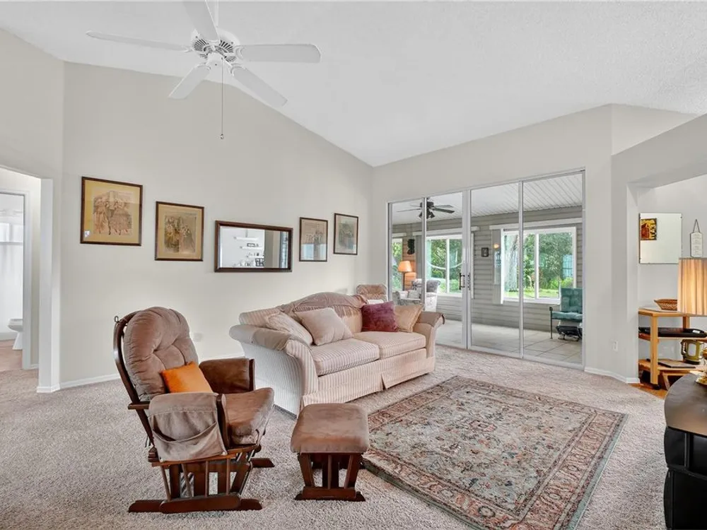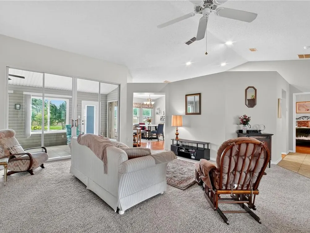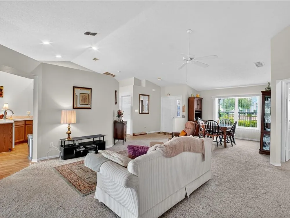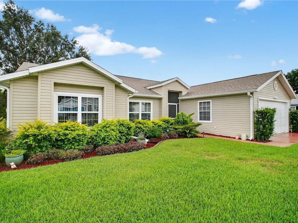 Welcome to this perfectly maintained 3-bedroom, 2-bathroom home located in the award-winning Plantation at Leesburg community. With an open floor plan, this home offers a spacious, light-filled kitchen featuring ample counter space, plenty of cabinets, and a cozy 13 x 10 dinette area — ideal for everyday meals or casual gatherings. The split floor plan provides privacy for the owner’s suite, which includes a walk-in closet and a private bathroom. The additional two bedrooms are well-sized and include generous closet space, perfect for guests or extra storage. The living and dining areas flow seamlessly, creating a comfortable and welcoming space for relaxing or entertaining. Step outside to your enclosed 27 x 10 lanai, where you can enjoy the peaceful view of your private backyard — a perfect spot for morning coffee or quiet evenings. Recent updates include double-pane windows, a newer hot water tank, a newer roof (2023), and a newer AC system (2023), offering peace of mind and efficiency for years to come. This gated, 55+ neighborhood offers a vibrant lifestyle with something for everyone: three swimming pools, two fitness centers, three clubhouses, a billiard room, a softball field, two golf courses, tennis courts, and popular pickleball courts. Take your golf cart to the on-site restaurant for lunch, dinner, or weekend live music and specials. With a low HOA fee and 24-hour manned security gates, this community combines comfort, convenience, and fun — all just minutes from shopping and everyday needs. This home is move-in ready and waiting for you to enjoy everything The Plantation has to offer.