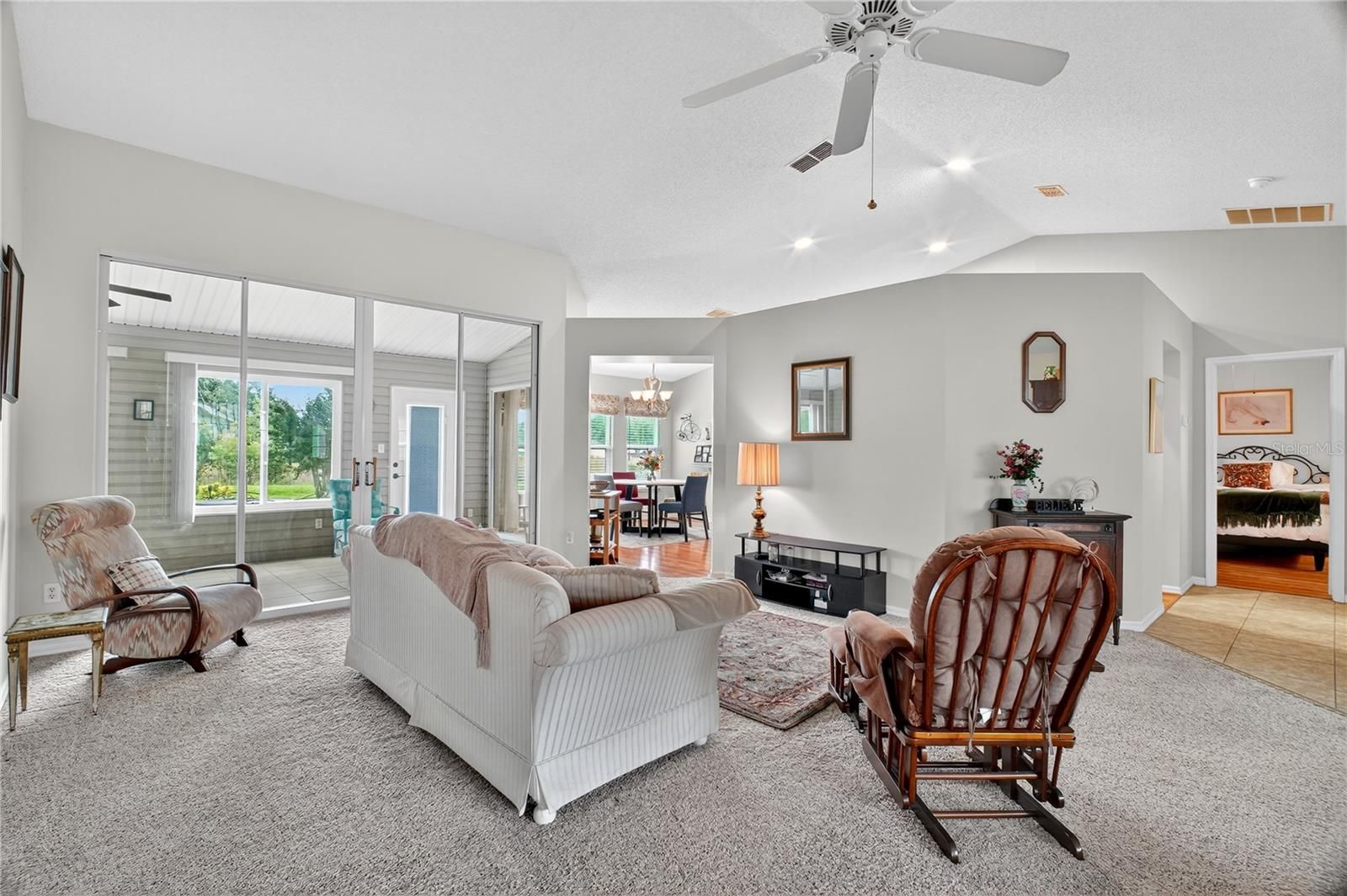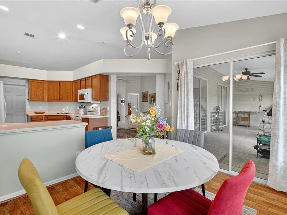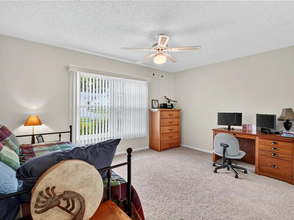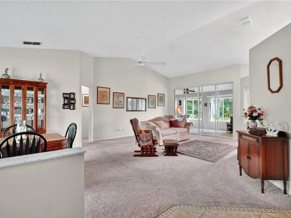 Welcome to this perfectly maintained 3-bedroom, 2-bathroom home located in the award-winning Plantation at Leesburg community. With an open floor plan, this home offers a spacious, light-filled kitchen featuring ample counter space, plenty of cabinets, and a cozy 13 x 10 dinette area — ideal for everyday meals or casual gatherings. The split floor plan provides privacy for the owner’s suite, which includes a walk-in closet and a private bathroom. The additional two bedrooms are well-sized and include generous closet space, perfect for guests or extra storage. The living and dining areas flow seamlessly, creating a comfortable and welcoming space for relaxing or entertaining. Step outside to your enclosed 27 x 10 lanai, where you can enjoy the peaceful view of your private backyard — a perfect spot for morning coffee or quiet evenings. Recent updates include double-pane windows, a newer hot water tank, a newer roof (2023), and a newer AC system (2023), offering peace of mind and efficiency for years to come. This gated, 55+ neighborhood offers a vibrant lifestyle with something for everyone: three swimming pools, two fitness centers, three clubhouses, a billiard room, a softball field, two golf courses, tennis courts, and popular pickleball courts. Take your golf cart to the on-site restaurant for lunch, dinner, or weekend live music and specials. With a low HOA fee and 24-hour manned security gates, this community combines comfort, convenience, and fun — all just minutes from shopping and everyday needs. This home is move-in ready and waiting for you to enjoy everything The Plantation has to offer.