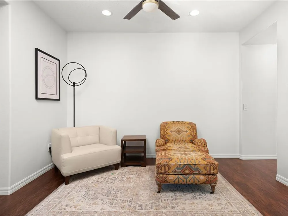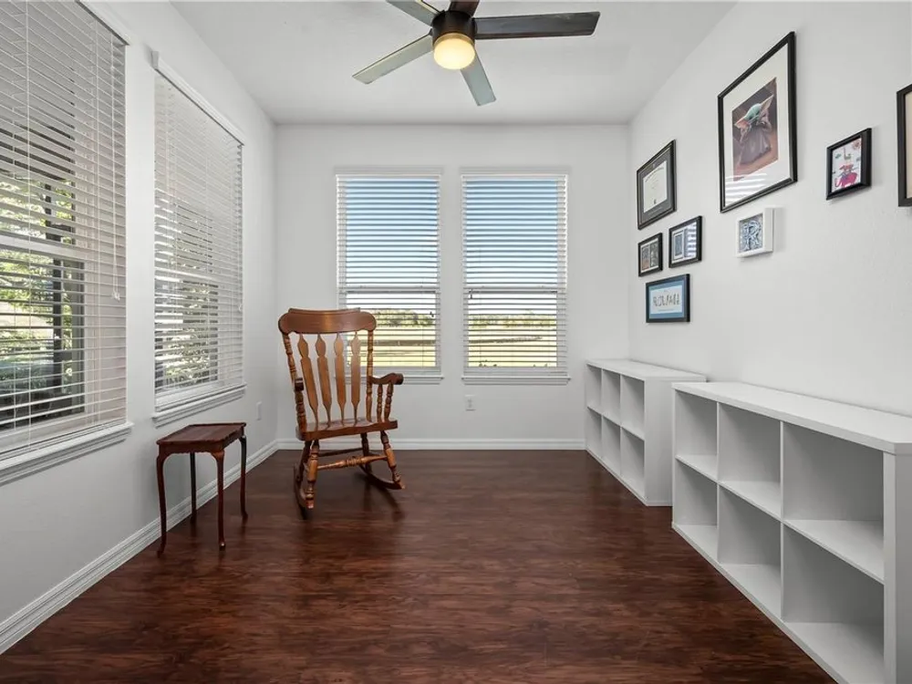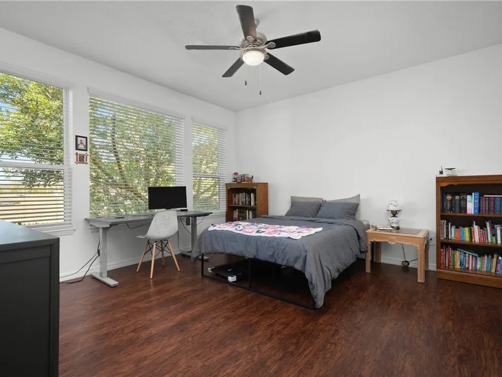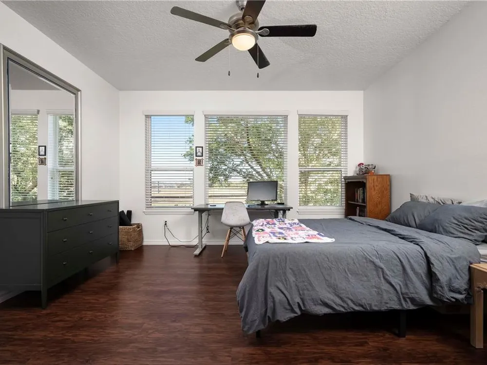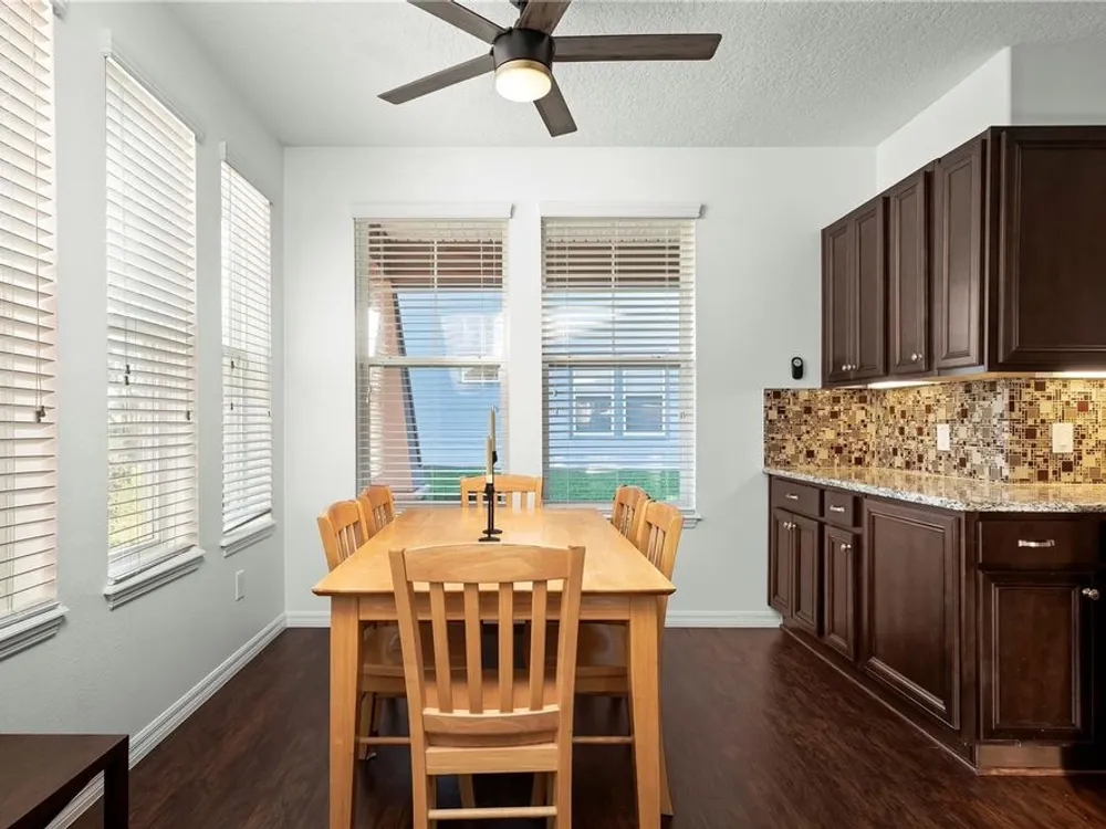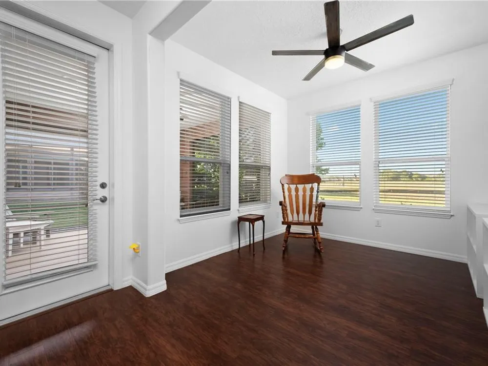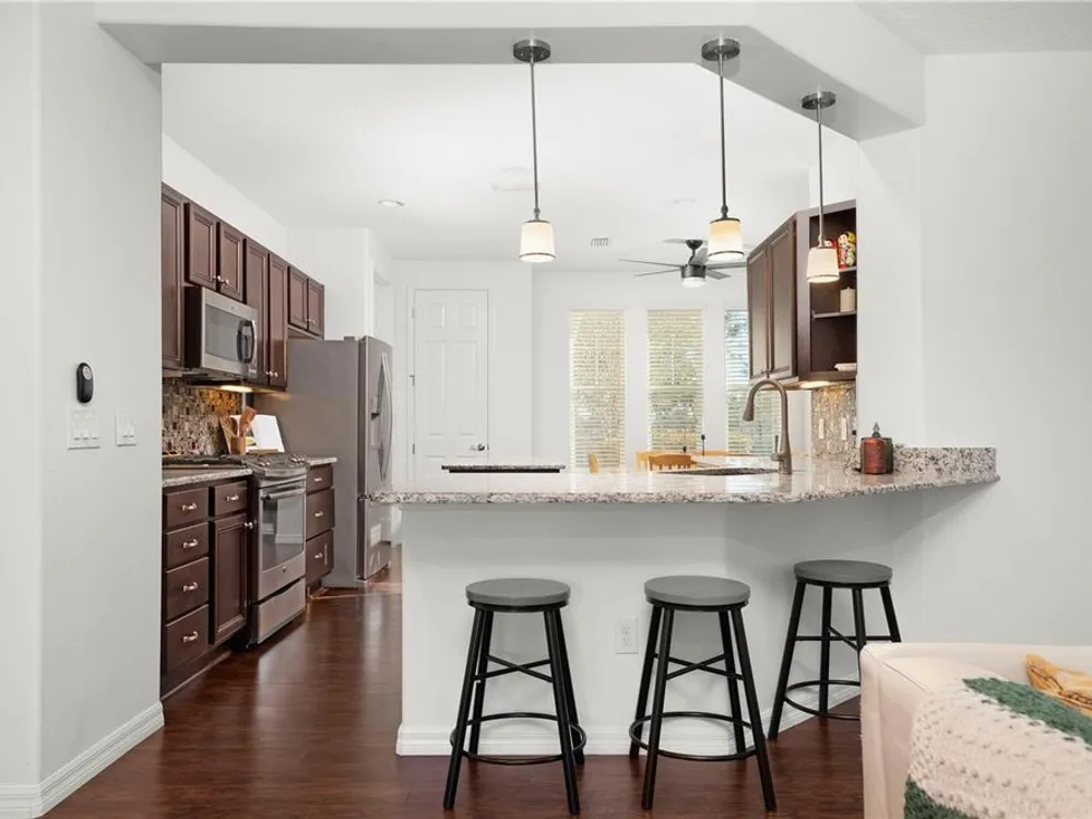 - Ceiling Fan(s), Eat-in Kitchen, High Ceilings, Open Floorplan, Main Level Primary, Split Bedrooms, Stone Counters, Thermostat