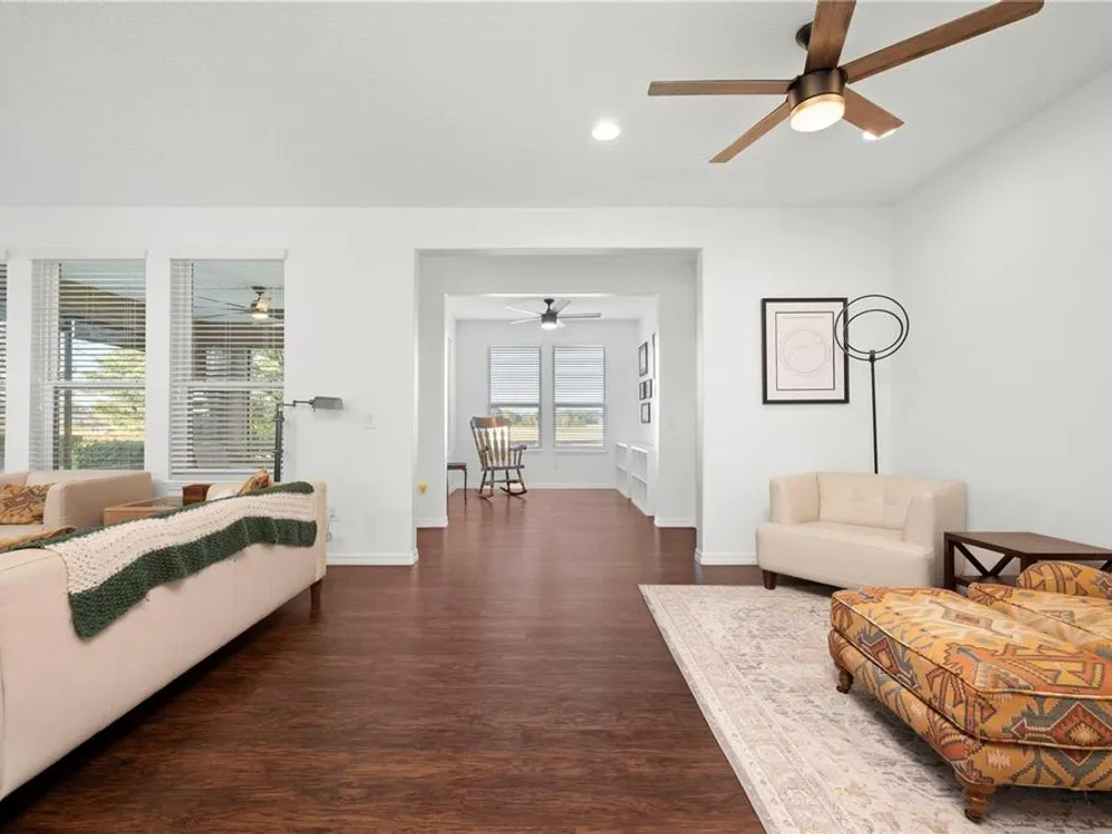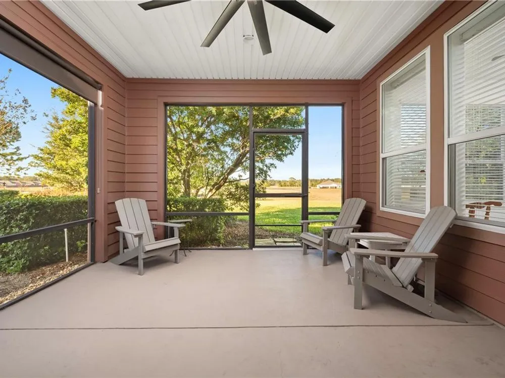 This immaculate 2-bedroom, 2-bath, 2-car garage Shea Built Monaco model is packed with thousands of dollars in high-end upgrades! Located in the prestigious gated, golf, and resort-style community of Ocala Preserve, this beautifully maintained home boasts a spacious open-concept layout perfect for both relaxation and entertaining. Natural light fills the large great room upon entry, creating a warm and inviting atmosphere. The chef’s kitchen is a standout feature, offering upgraded granite countertops, a coordinating backsplash, stainless steel appliances, and plenty of space for culinary creativity. The private master suite is a true retreat with a double vanity, walk-in closet, and abundant natural light. A versatile flex space can be used as a home office, den, or creative workspace. Upgrades continue throughout, including Brava plank flooring, energy-efficient windows, ceiling fans, 10-foot ceilings, and 8-foot doors. The screened-in lanai provides a peaceful spot to enjoy Florida's beautiful weather while staying bug-free. Residents of Ocala Preserve have access to world-class amenities at the award-winning Oak House clubhouse, featuring the Salted Brick restaurant, the Alvea Spa, a state-of-the-art fitness center, and a variety of member clubs and activities. Conveniently located near the World Equestrian Center, this home offers easy access to premier equestrian events and venues. Don’t miss your chance to own a home that blends luxury, style, and an unbeatable lifestyle in one of Ocala’s most desirable communities!