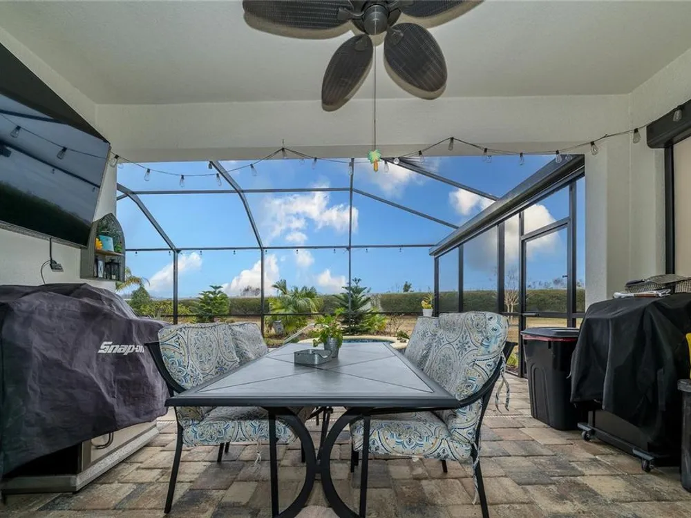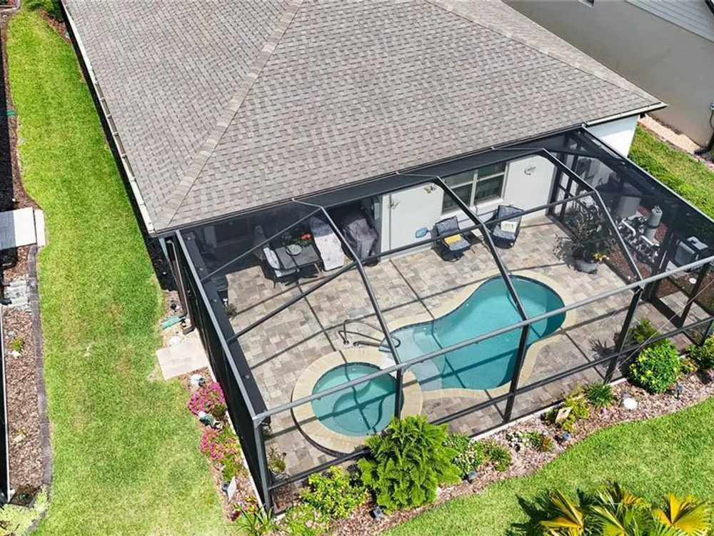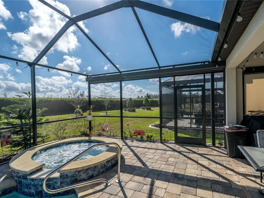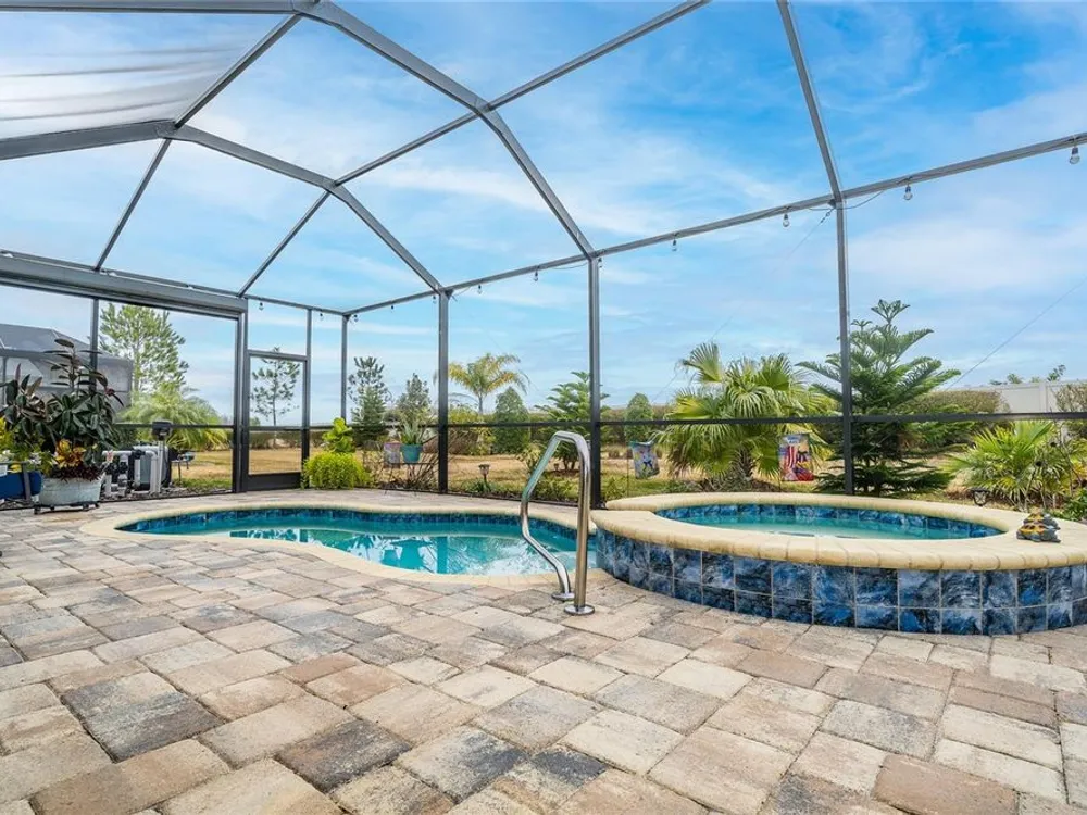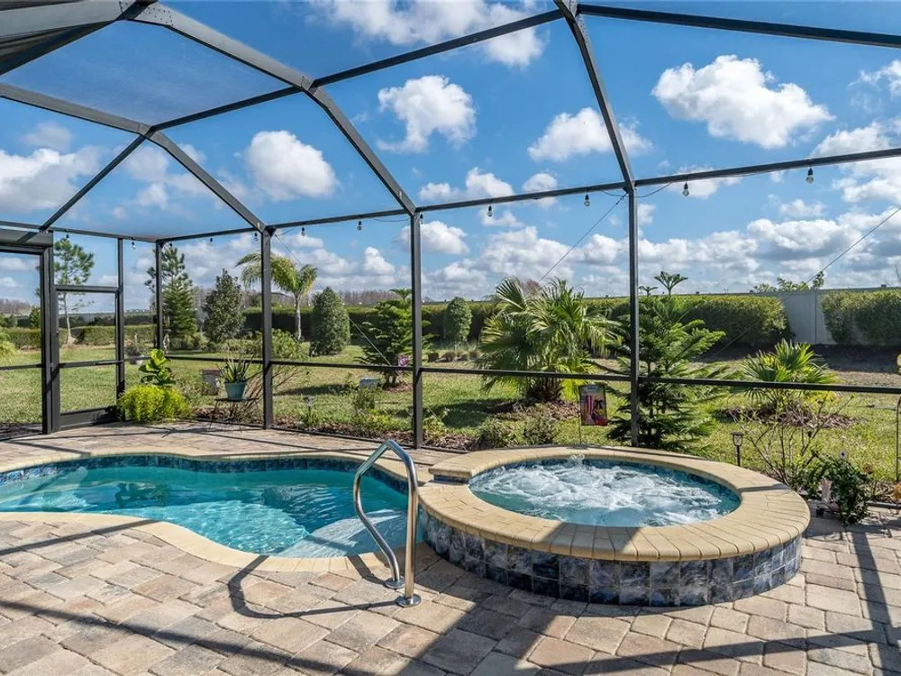 TO GET A HEATED SALT WATER POOL HOME AND SPA IN DEL WEBB BEXLEY FOR JUST $525,000 IS AN OPPORTUNITY THAT MAY ONLY COME ONCE IN A LIFETIME—DON'T LET IT PASS YOU BY! Imagine stepping into your own private Florida resort the day you get the keys—no waiting, no construction costs, just pure enjoyment from day one. This AMAZING HOME in Del Webb Bexley, a premier 55+ gated community with resort-style amenities and maintenance-free lawn care, delivers the ultimate Florida lifestyle for full-time residents or those seeking the perfect seasonal escape. The OUTDOOR LIVING SPACE is nothing short of SHOW-STOPPING: a heated saltwater pool and spa with a CASCADING WATERFALL, FIBER-OPTIC COLOR-CHANGING LIGHTS, and lush tropical landscaping create an unforgettable setting. Evenings become magical with BUILT-IN SPEAKERS, a MOUNTED TV (included), and professional COLOR-CHANGING STRING LIGHTS. MOTORIZED ZINGA'S SHADES give you total privacy, while the 2024-sealed brick pavers keep it looking pristine. A GAS LINE IS READY for your dream outdoor kitchen—perfect for hosting family, friends, and neighbors. Inside, the enormous kitchen is amazing—KitchenAid appliances, 42" cabinets, a custom backsplash, oversized island, pendant lighting, gooseneck faucet, coffee bar, and walk-in pantry make cooking and entertaining effortless. The great room is prepped for unforgettable movie nights with an 82” Sony TV, custom sound system, and in-ceiling speakers. Expansive sliding doors with a custom Zinga’s blind open to the lanai, blending indoor comfort with outdoor luxury. The primary suite is your personal retreat, with a spa-like super shower featuring dual shower heads—including a rainhead—comfort-height dual granite vanity, and a walk-in closet. Guests will love their private bedroom and bath, while the versatile flex room can serve as an office, hobby space, or home gym. The laundry room is a dream with custom cabinetry, Corian counters, deep sink, and washer/dryer (gas ready). The 4-foot extended garage features epoxy floors, attic storage, and is pre-plumbed for a water softener. Bonus upgrades include a Remo-Halo Whole Home Air Purification System (UV bulb replaced 2024), Taexx built-in pest control, a security system, and a decorative full-lite glass front door with keyless entry. Del Webb Bexley offers a vibrant lifestyle with resort and resistance pools, a fitness center, clubhouse with snack bar, dog park, and endless clubs and activities. All this, just minutes to shopping, dining, healthcare, and only 20 miles from Tampa International Airport. Opportunities like this don’t wait—schedule your private showing today and start living your dream tomorrow!