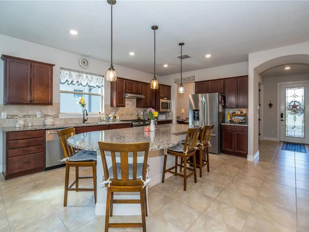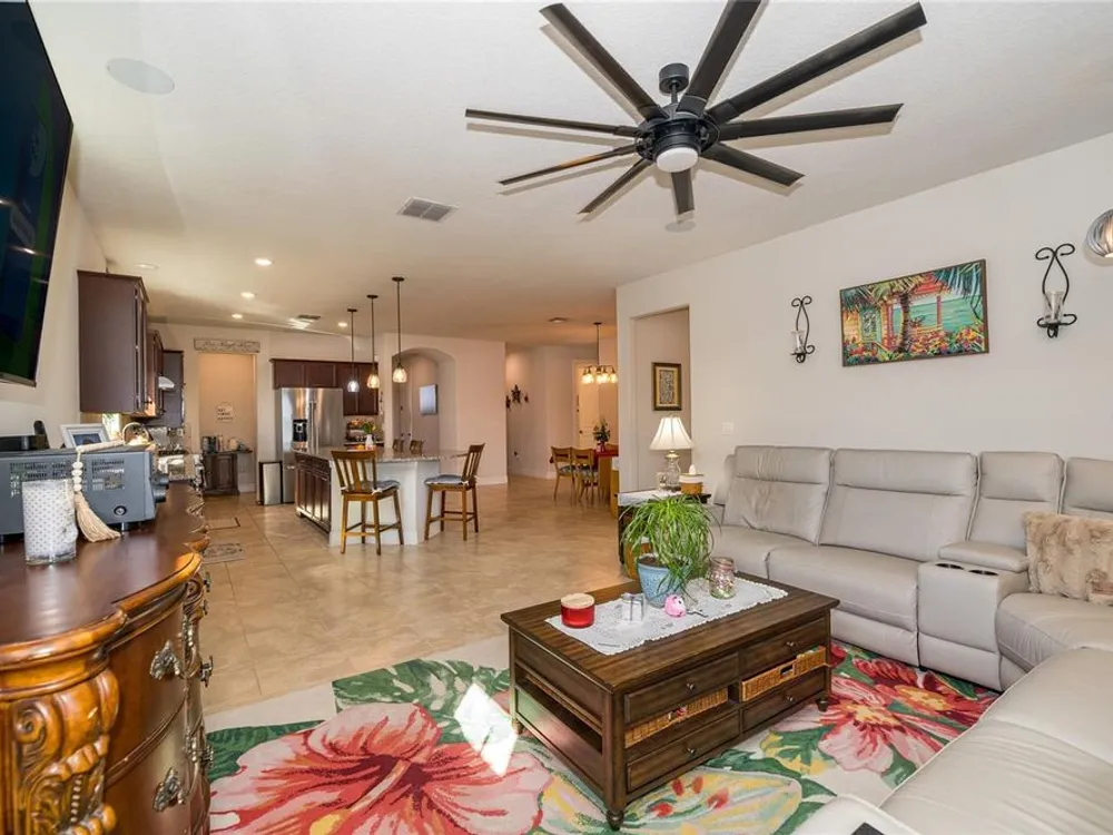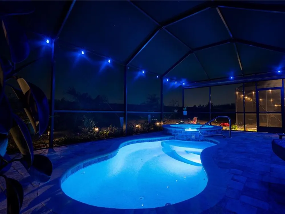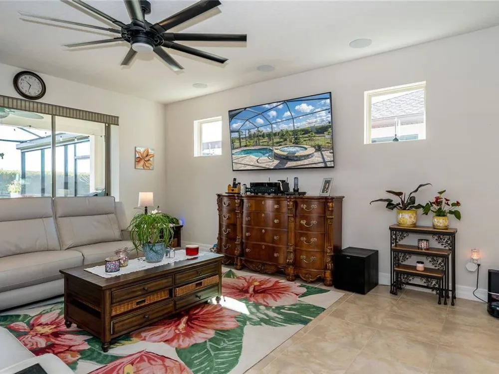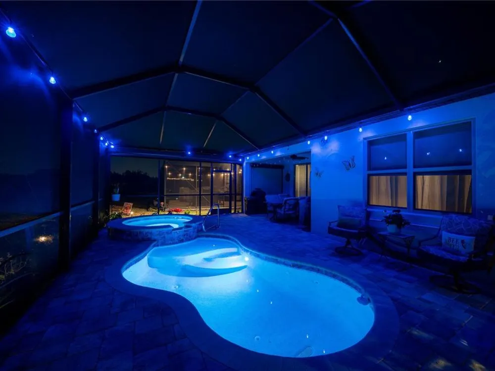 TO GET A HEATED SALT WATER POOL HOME AND SPA IN DEL WEBB BEXLEY FOR JUST $525,000 IS AN OPPORTUNITY THAT MAY ONLY COME ONCE IN A LIFETIME—DON'T LET IT PASS YOU BY! Imagine stepping into your own private Florida resort the day you get the keys—no waiting, no construction costs, just pure enjoyment from day one. This AMAZING HOME in Del Webb Bexley, a premier 55+ gated community with resort-style amenities and maintenance-free lawn care, delivers the ultimate Florida lifestyle for full-time residents or those seeking the perfect seasonal escape. The OUTDOOR LIVING SPACE is nothing short of SHOW-STOPPING: a heated saltwater pool and spa with a CASCADING WATERFALL, FIBER-OPTIC COLOR-CHANGING LIGHTS, and lush tropical landscaping create an unforgettable setting. Evenings become magical with BUILT-IN SPEAKERS, a MOUNTED TV (included), and professional COLOR-CHANGING STRING LIGHTS. MOTORIZED ZINGA'S SHADES give you total privacy, while the 2024-sealed brick pavers keep it looking pristine. A GAS LINE IS READY for your dream outdoor kitchen—perfect for hosting family, friends, and neighbors. Inside, the enormous kitchen is amazing—KitchenAid appliances, 42" cabinets, a custom backsplash, oversized island, pendant lighting, gooseneck faucet, coffee bar, and walk-in pantry make cooking and entertaining effortless. The great room is prepped for unforgettable movie nights with an 82” Sony TV, custom sound system, and in-ceiling speakers. Expansive sliding doors with a custom Zinga’s blind open to the lanai, blending indoor comfort with outdoor luxury. The primary suite is your personal retreat, with a spa-like super shower featuring dual shower heads—including a rainhead—comfort-height dual granite vanity, and a walk-in closet. Guests will love their private bedroom and bath, while the versatile flex room can serve as an office, hobby space, or home gym. The laundry room is a dream with custom cabinetry, Corian counters, deep sink, and washer/dryer (gas ready). The 4-foot extended garage features epoxy floors, attic storage, and is pre-plumbed for a water softener. Bonus upgrades include a Remo-Halo Whole Home Air Purification System (UV bulb replaced 2024), Taexx built-in pest control, a security system, and a decorative full-lite glass front door with keyless entry. Del Webb Bexley offers a vibrant lifestyle with resort and resistance pools, a fitness center, clubhouse with snack bar, dog park, and endless clubs and activities. All this, just minutes to shopping, dining, healthcare, and only 20 miles from Tampa International Airport. Opportunities like this don’t wait—schedule your private showing today and start living your dream tomorrow!
