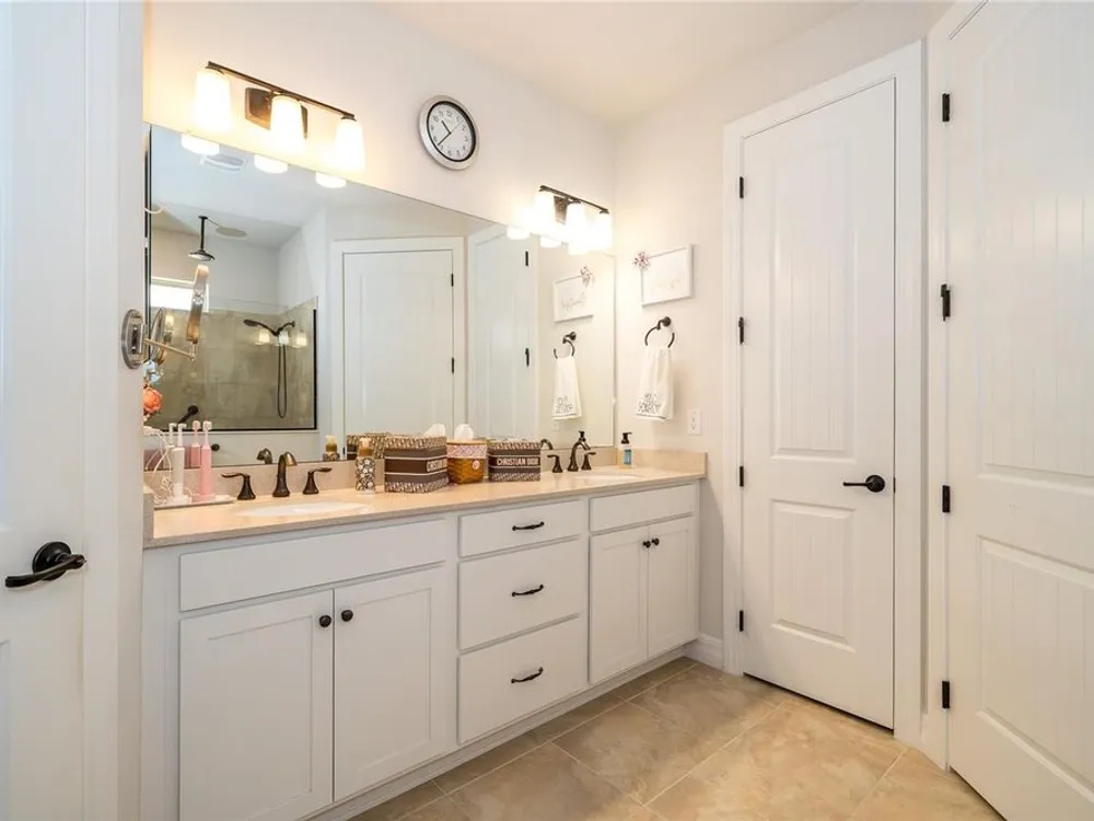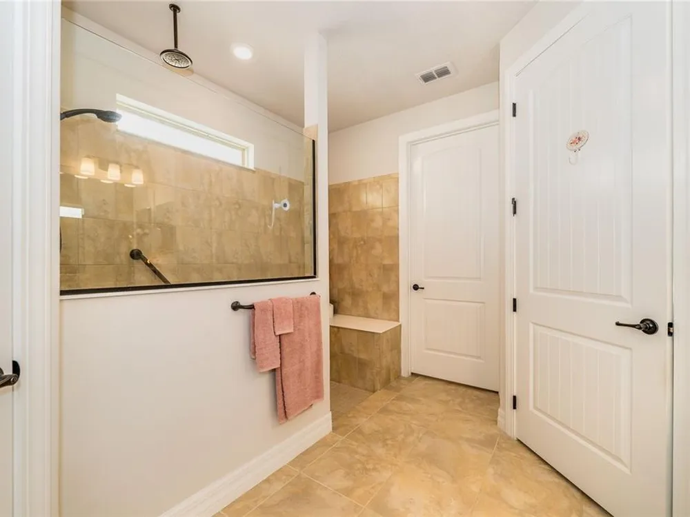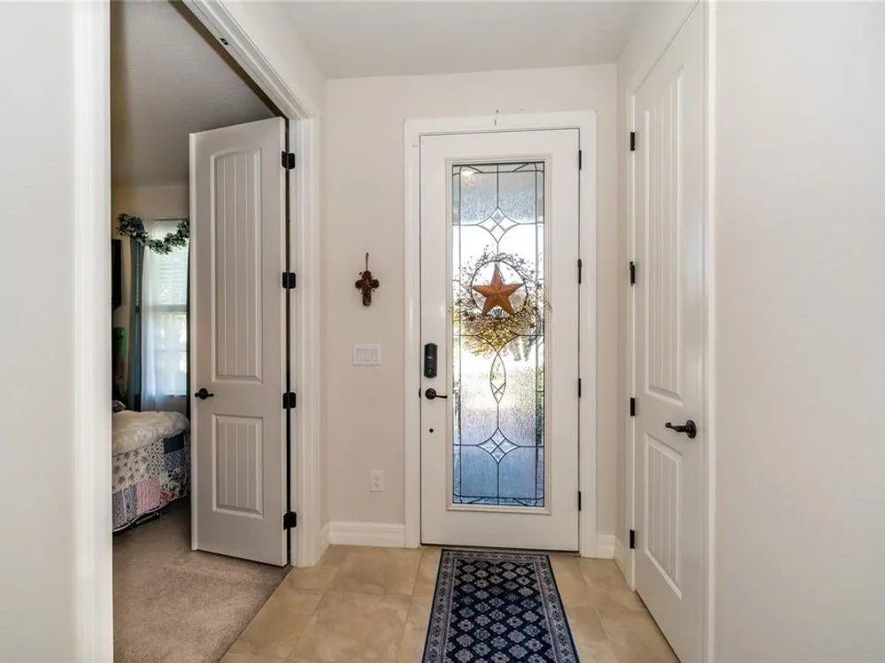- Ceiling Fan(s), Eat-in Kitchen, In-Wall Pest Control, Open Floorplan, Main Level Primary, Smart Home, Solid-Wood Cabinets, Split Bedrooms, Stone Counters, Walk-In Closet(s), Window Treatments