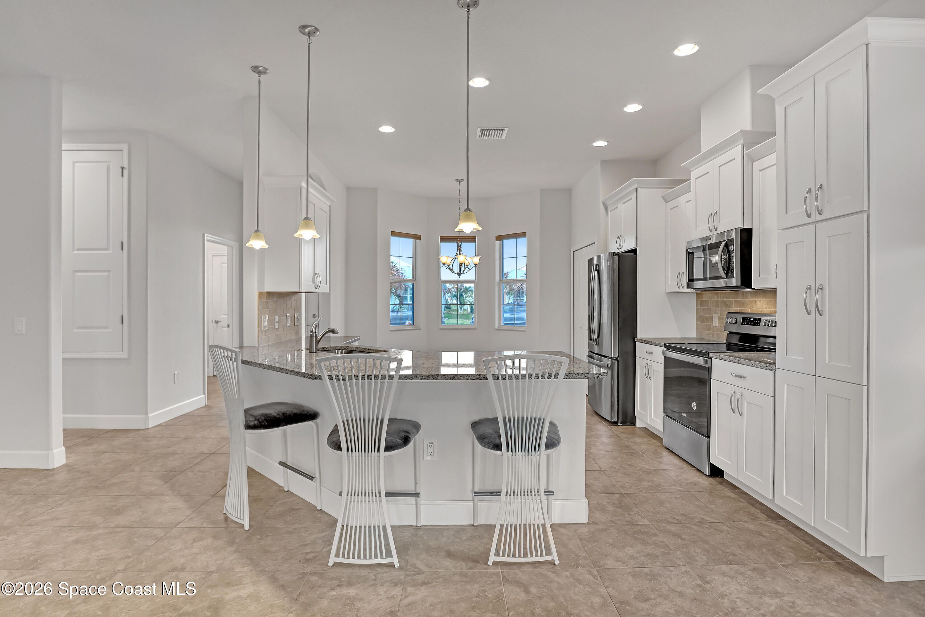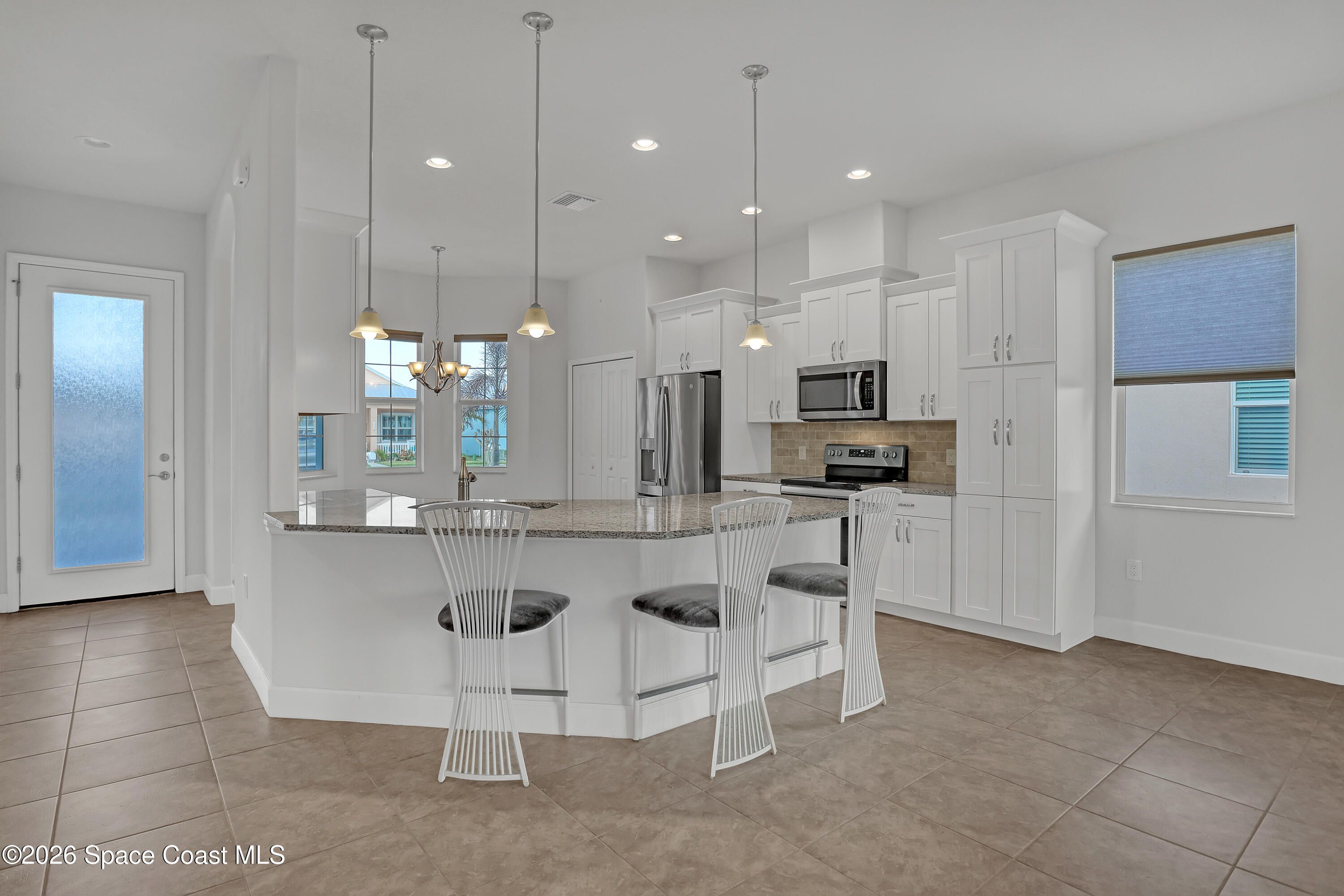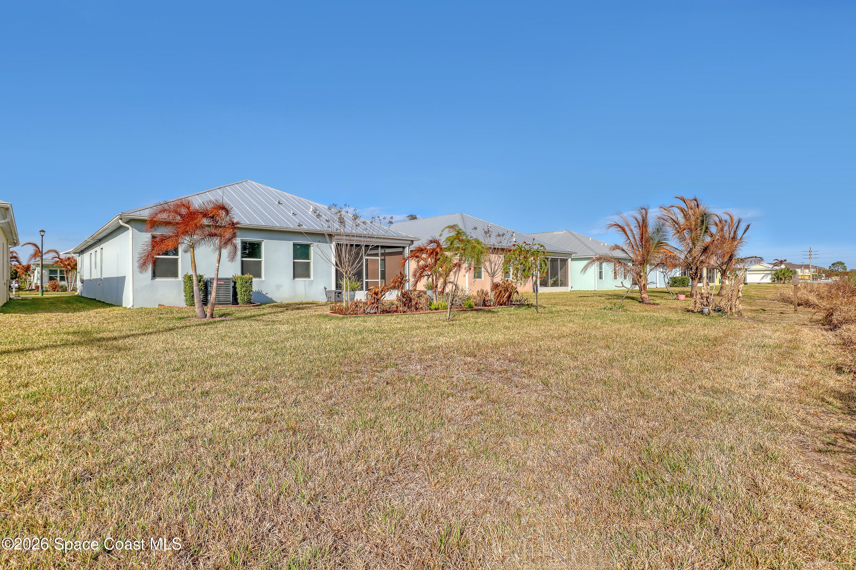 This beautifully maintained 2020 3/2/2 Stanley built home is located in the highly desirable active adult community of Alamanda Key. The charming home blends coastal style with modern upgrades & low-maintenance living. Step inside to discover tile flooring throughout the living areas & soaring ceilings that enhance the spacious open feel. The kitchen features white cabinetry, granite countertops,& Whirlpool Energy Star SS appliances, perfect for everyday living or entertaining. Built for comfort & durability, the home includes impact windows & doors, a metal roof, hurricane protection screens for back porch, and numerous upgrades throughout. Paid-for solar panels installed in 2022 provide a sustainable, non-polluting energy source that reduces reliance on the grid and helps lower electric bills. Enjoy true Florida living without the hassle. The HOA covers full lawn care irrigation & Spectrum cable/internet. HOA Amenties include clubhouse, fitness pool, hot tub, tennis & walking paths