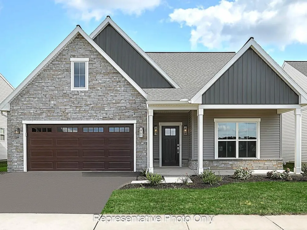 UNDER CONSTRUCTION – AVAILABLE THIS WINTER: This quaint home in the Winding Creek 55+ community features a welcoming front porch, a 2-car garage with a mudroom entry, and 9’ ceilings on the first floor. Stylish vinyl plank flooring flows throughout the main living areas. At the front of the home is a study followed by a full bathroom and a secondary bedroom. The great room, warmed by a fireplace with floor-to-ceiling stone, opens to the well-appointed kitchen with enhanced appliances and cabinetry, quartz countertops with tile backsplash and a large pantry. The sunny dining area provides access to a screened-in porch. Tucked quietly to the back of the home, the spacious owner’s suite includes an expansive closet and a private bathroom with a tile shower and double bowl vanity. On the second floor there is a loft and an unfinished storage room.