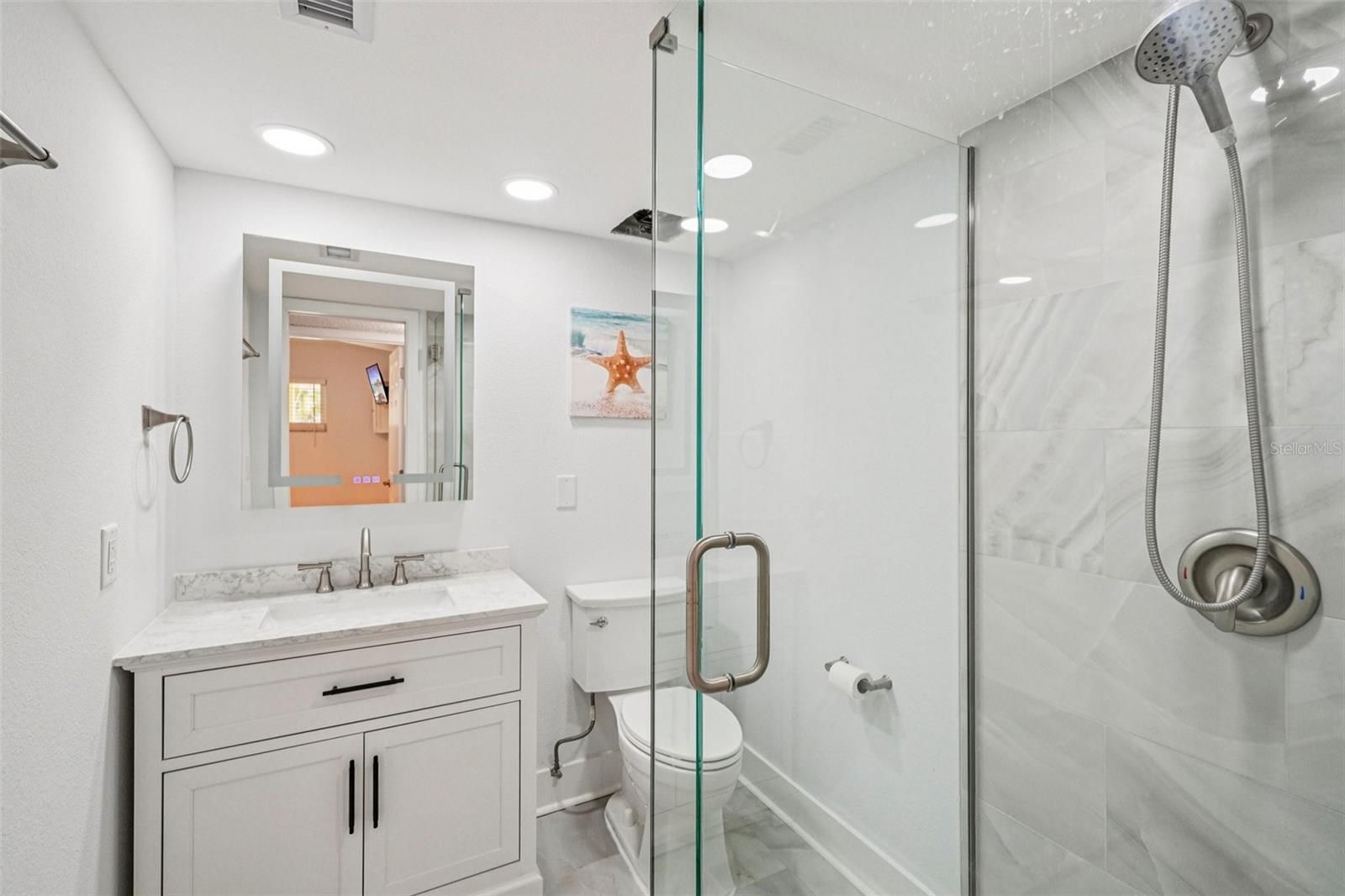 First-floor waterfront condo with Intracoastal Waterway views, sunset views, and an extensively renovated interior. Unit 107 at 4750 Cove Cir offers 2 bedrooms, 2 baths, and 1,040 sq ft in Lexington Towers at Sea Towers. The layout includes an open-concept kitchen with breakfast bar, stainless appliances, remodeled bathrooms, new laminate flooring, fresh interior paint, and water views from the main living area and primary bedroom. Upgrades include PGT impact windows(2022), brand-new A/C and air handler, tankless water heater, whole-unit water filtration system, Moen Flo smart water monitor and shutoff, updated electrical improvements, WiFi dimmer switches, electric remote-controlled blinds, and added storage features. Shared laundry is on the same floor, just steps from the unit. Includes 1 assigned parking space, plus access to community amenities including 2 pools, pickleball/tennis courts, shuffleboard, putting green, barbecue area, pavilion seating, clubhouse, lounge and sun deck areas, dock access, and boat-slip availability subject to association rules, approval, and availability. HOA fee includes water, cable, Spectrum high-speed internet, grounds maintenance, building maintenance, and master insurance. Located minutes from Madeira Beach, John’s Pass Village and Boardwalk, and nearby shopping and dining. 55+ community with association approval required and a 3-month minimum lease. 3D tour and floor plan available. Furniture, TV's Included