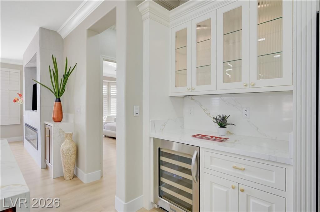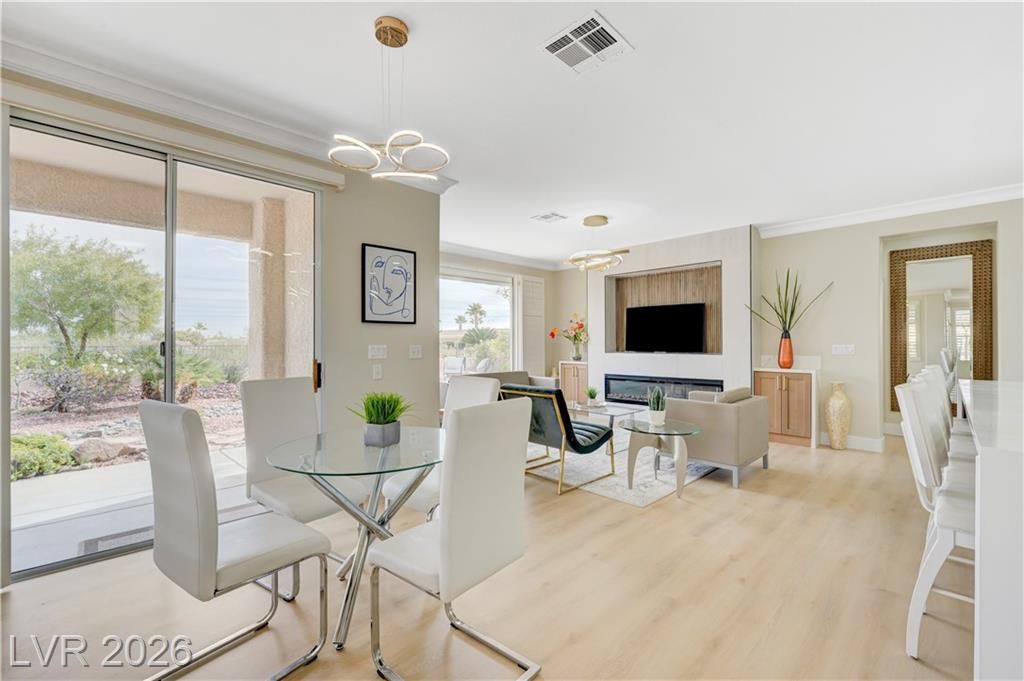 Be prepared to spoil yourself in this stunning, completely remodeled move-in ready home located on the 3rd hole of the Siena Golf Course in the prestigious Siena 55+ Guard Gated resort Community. Enjoy privacy and scenic views with an open floor plan featuring new Luxury Vinyl flooring & baseboards, a spacious island, granite countertops and backsplash in kitchen,bathrooms, & laundry room, new cabinetry & hardware, Fireplaces in living room and primary bedroom, custom front door, stainless steel appliances including Wolf stovetop and wine fridge, tankless water heater, Plantation Shutters throughout, crown molding, Rolladen Shutters over family room and primary room windows, all new LED recessed lighting and new fixtures. The Primary suite features bay windows, a Custom closet with built-ins, jetted tub, double sinks, & custom shower. The fully enclosed backyard boasts Custom BBQ & TV- ideal for entertaining. This exceptional home is a MUST SEE!!