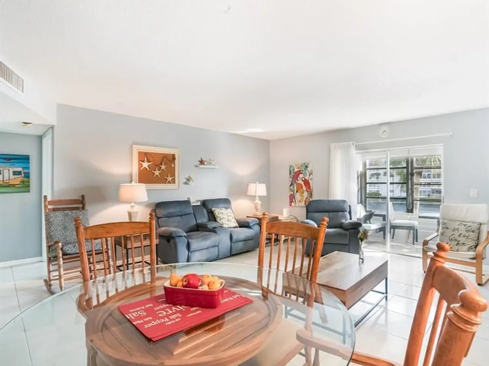 Welcome to this beautifully light and bright 1-bedroom, 1.5-bathroom condo in the desirable 55+ Castle Gardens community. This meticulously clean second-floor unit boasts ceramic tile flooring throughout and features a beautiful glass enclosed balcony overlooking the lake. Enjoy an updated kitchen with white cabinets, spacious bedroom, and lots of natural light throughout. Unit AC is 2009 and 40y Milestone completed. This unit comes partially furnished. Don’t miss the chance to call this lovely condo home!