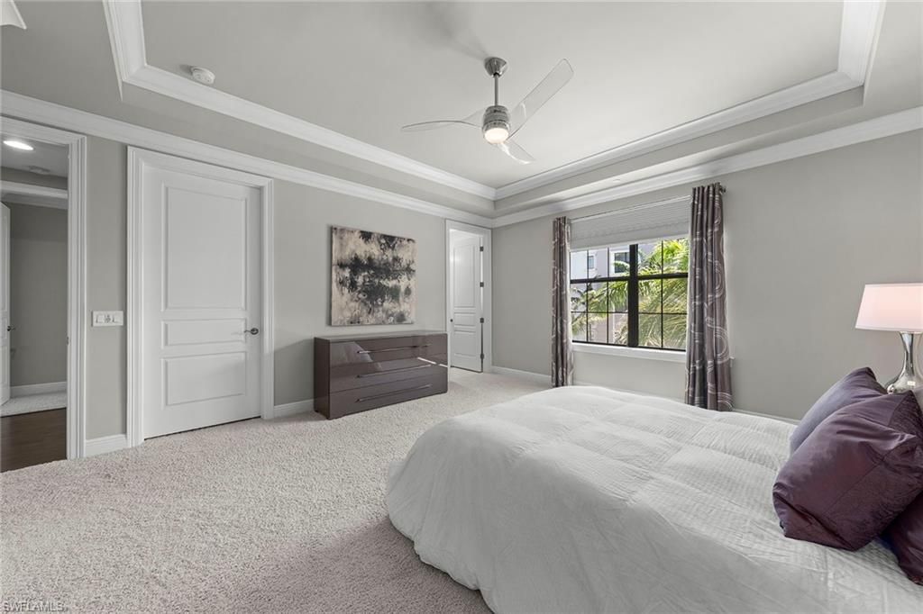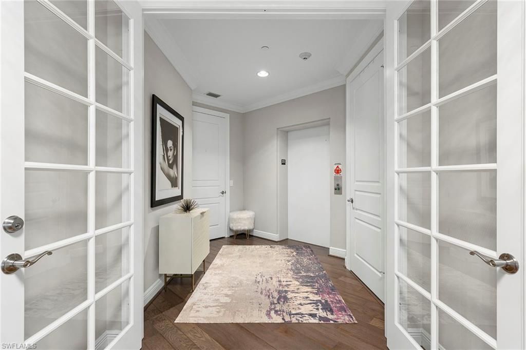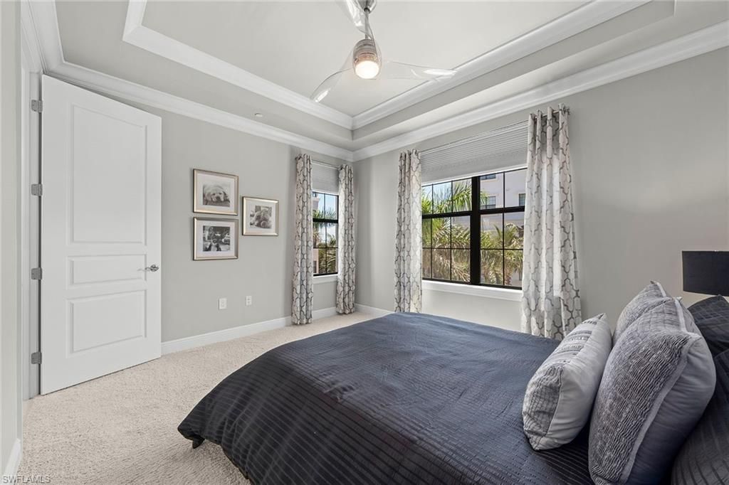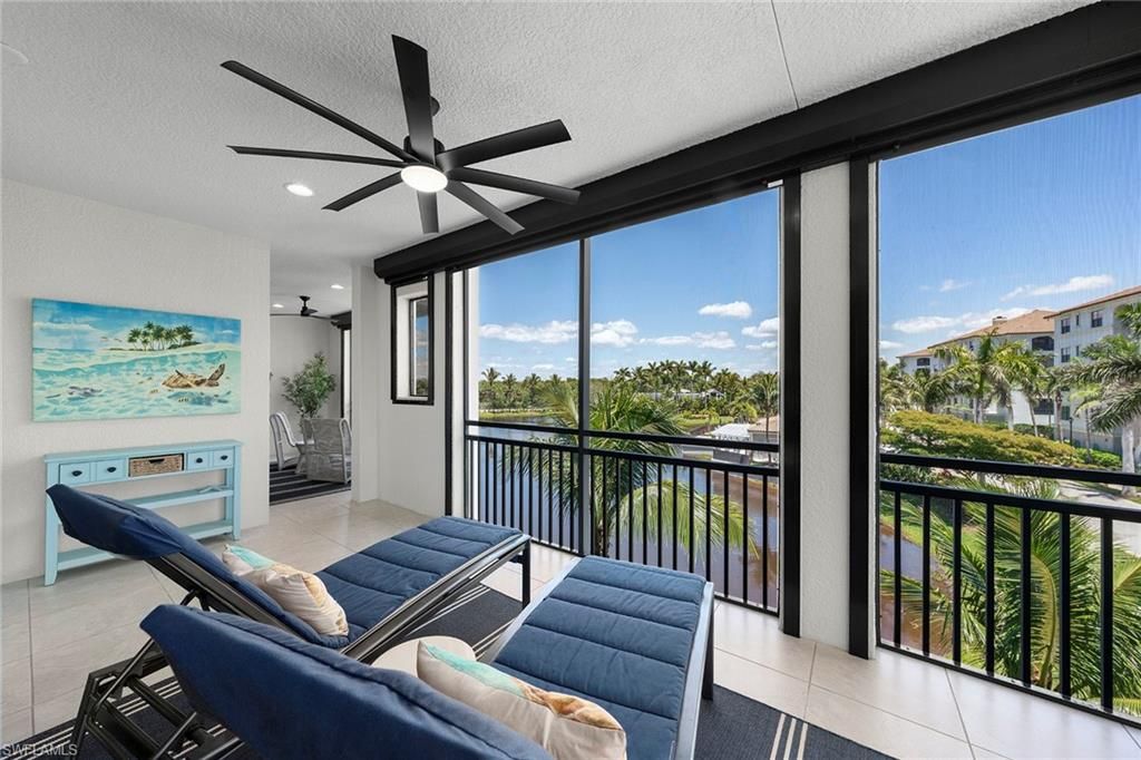 Arrive in style as your private elevator opens directly into an elegant foyer, revealing a fresh and contemporary open floor plan designed for effortless entertaining and everyday comfort. The gourmet kitchen is a chef’s dream, featuring a sleek gas cooktop and refined finishes, while a spacious breakfast room with a built-in beverage center invites you to savor your morning coffee in serene sophistication.The expansive living and dining areas flow seamlessly, offering flexible space for intimate gatherings or grand entertaining. Step onto the massive wraparound lanai, where negative-edge sliders blur the line between indoors and out, creating a stunning backdrop of swaying palms and soft Florida breezes—perfect for year-round relaxation.The private primary suite is a retreat of pure indulgence, complete with a luxurious soaking tub, separate shower, and generous walk-in closets. Two additional guest suites with en-suite baths ensure every visitor enjoys comfort and privacy, while a separate den and elegant powder room provide an ideal home office or cozy media space.For peace of mind, the residence offers full storm protection, two parking spaces (including one covered), and a spacious private storage closet. Cielo residents delight in a sparkling pool with tranquil lake views, while the prestigious Colony lifestyle includes exclusive access to The Bay Club’s private waterfront dining and a private beach island accessible by boat.Experience a world of recreation with tennis, pickleball, bocce, canoeing, and kayaking, plus a state-of-the-art fitness center—all included with no additional fees. Optional membership at two championship golf courses is also available for those seeking the ultimate sporting experience.Located just minutes from Coconut Point’s upscale shopping and dining and a quick 30-minute drive to Southwest Florida International Airport, this remarkable residence combines timeless elegance with modern convenience.Live your best luxury lifestyle, where every detail is designed for refinement and ease.