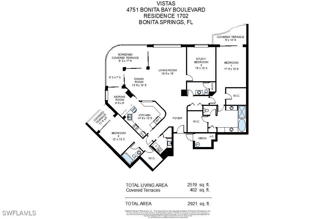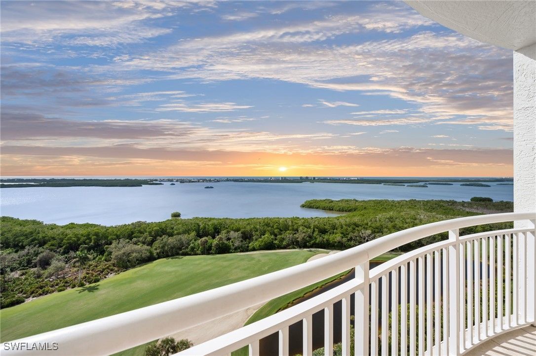 This fabulous spacious split floorplan, 17th floor residence, with upgrades, embodies the casual yet sophisticated lifestyle of SW Florida. Floor-to-ceiling sliding glass doors opening onto three west and south facing terraces provide spectacular views of Gulf of Mexico, Golf Courses and Estero Bay from every room! Watch the dolphins play in Estero Bay and enjoy fabulous sunsets over the Gulf of Mexico. Finishes include 18 inch tiles on the diagonal, crown molding, wood cabinetry with slide out shelving, granite counters. Aspiring chefs will love the spacious, centrally located kitchen with adjacent sun filled breakfast room. There are storm shutters on the screened terrace, and an infrared sauna in bathroom three. This residence comes with two parking spaces and separate storage area. Vistas offers 2 guest suites, updated communal areas with social and card rooms and fitness center. Vistas also has a spacious pool and spa with bar and grill area. Bonita Bay has 5 golf courses, 15 court tennis center 18,000 s.f. fitness center 8,000 s.f. Lifestyle spa & salon, full-service marina, Gulf front beach park, 6 restaurants, 15 pickle ball courts, croquet, bocce ball, canoeing, life enrichment center, 3 parks & more.