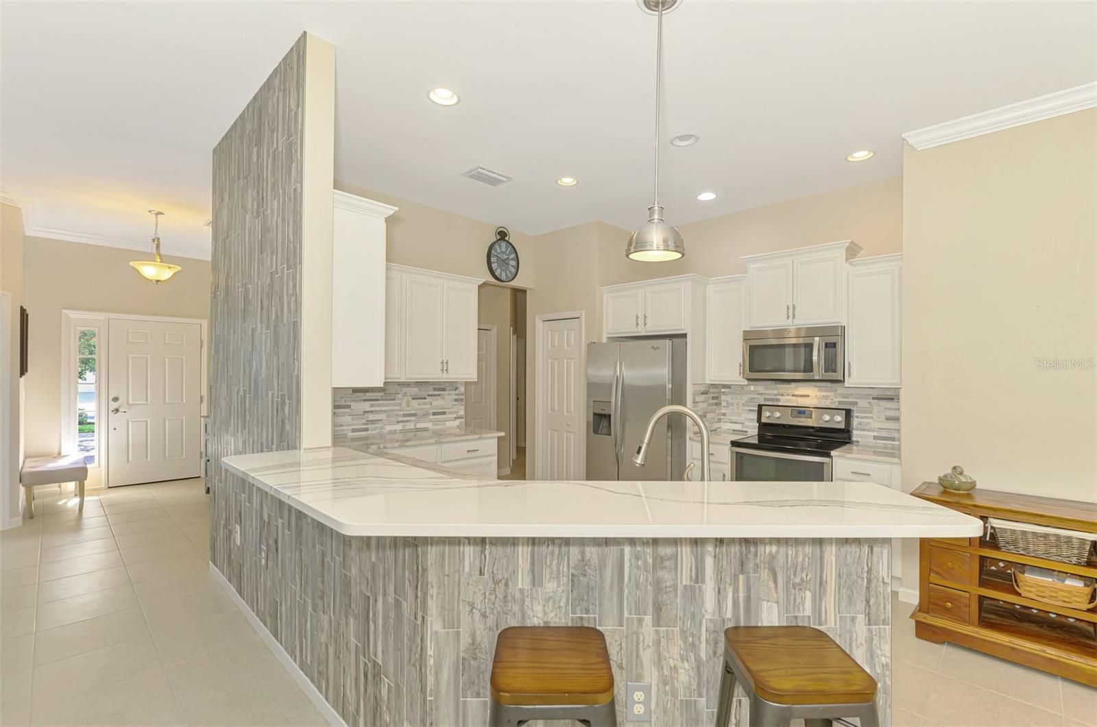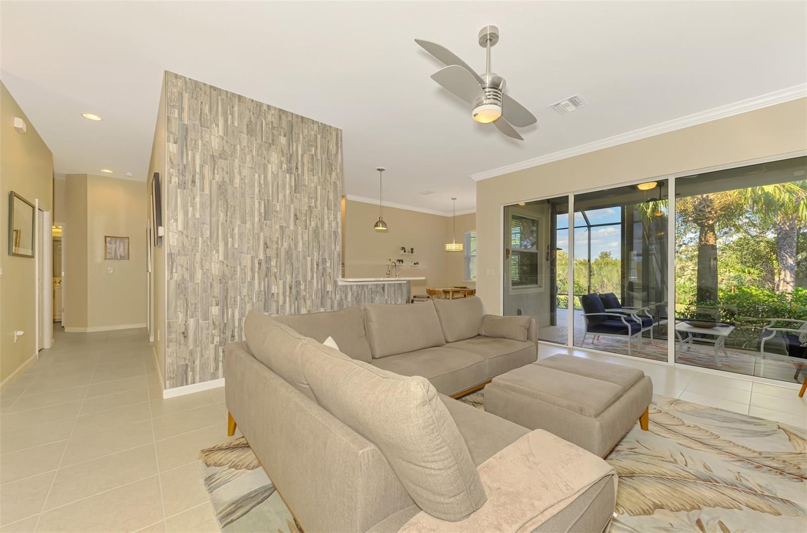Experience the Best of the Florida Lifestyle in the Prestigious Community of Riverwood! Nestled in a quiet cul-de-sac, this meticulously maintained 3-bedroom, 2-bathroom villa boasts a prime location, offering tranquil views of a peaceful preserve and convenient access, across the street, to the stunning Myakka River via boardwalk—perfect for kayaking, canoeing, or simply appreciating beautiful sunsets and the tranquil outdoors. Relax and unwind at home in the privacy of the extended lanai overlooking a peaceful backyard lawn and preserve. Inside, discover a welcoming and airy living space with 10’ ceilngs, and adorned with ceramic tile floors, crown molding, and a charming tile-accented feature wall, seamlessly flowing into the updated kitchen. The chef’s kitchen is designed with contemporary finishes, including white wood cabinetry, complete with 36” upper cabinets, crown molding, and a light rail. Stainless steel appliances complement the gorgeous Quartz countertops, while a coordinating tile backsplash adds another touch of sophistication. Need flexible space? The third bedroom, featuring luxury vinyl plank flooring, offers endless possibilities as a home office, creative studio, or reading nook. The spacious primary bedroom, also updated with luxury vinyl plank flooring, provides a quiet retreat with a view to the extended lanai and lush backyard. The en-suite bathroom has been updated with a spa-like design—featuring a dual sink vanity with ample drawer storage, a walk-in shower, a separate soaking tub, and a deep walk-in closet. The second bedroom is cozy and newly carpeted, located near the updated guest bathroom, made complete with a new vanity and a shower-tub combo enclosed by glass doors. The home’s laundry room includes a new washer and dryer, as well as convenient wall cabinets for added storage. This home is loaded with practical upgrades, including a paver driveway and walkway, energy-efficient Thermopane windows and sliding doors, roll-down hurricane screen at the front entry and back lanai for added protection, and accordion-style hurricane shutters on the other windows. Don’t miss the opportunity to own this stunning villa! Riverwood: 1300 acres, gated, golf, resort style community. NEW RESORT STYLE & LAP POOL. SEPARATE FITNESS CENTER, PICKLEBALL COURTS, SMALL AND LARGE DOG PARKS! Enjoy all that Riverwood has to offer in our lush tree lined streets, renovated activity center with all the social activities offered, 6 Har-Tru tennis courts, croquet court. An Audubon Green Community Award Winner for its natural habitat for Florida Wildlife. Optional amenities: Dog Park, Riverwood Golf Club, Par 72 Championship course & Beach Club on Manasota Key. Close to boating, cultural events, dining, shopping & beautiful beaches of SW FL. Located between Sarasota & Ft Myers on Florida’s West Coast in Paradise!