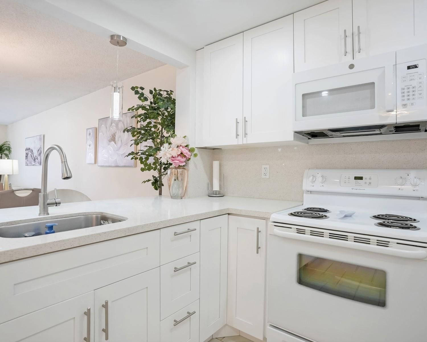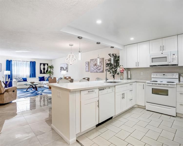 Stunning 2-bedroom, 2-bath home in the 55+ community of Castle Gardens. This upgraded residence features a renovated all-white kitchen and bright, open-concept living spaces that flow beautifully into the spacious bedrooms and stylish bathrooms. Contemporary furnishings throughout - furniture negotiable. An airy, comfortable design blends style with everyday living, offering a fresh, inviting feel. Enjoy all that Castle Gardens has to offer and schedule a tour today to make this gorgeous home your own.