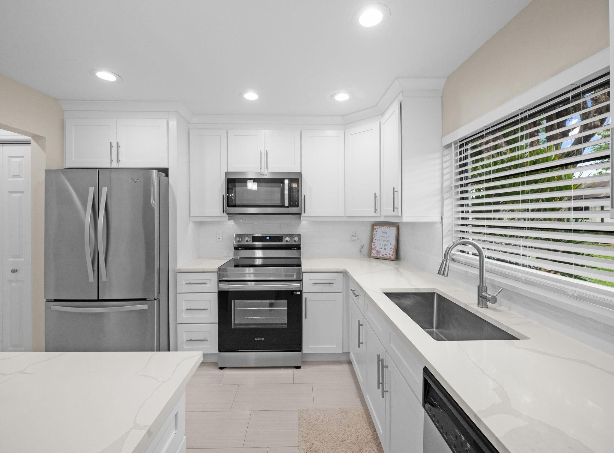 Welcome to Greentree Villas, a sought-after 55+ community in Boynton Beach. This beautifully updated 2-bedroom, 2-bath villa features a recently remodeled kitchen with sleek cabinetry and stainless steel appliances, along with updated bathrooms for modern comfort. The spacious living area is light and inviting, while the freshly painted interior and exterior and lush landscaping add to its curb appeal. Enjoy a low-maintenance lifestyle with community amenities including pools and clubhouses. Ideally located near shopping, dining, and just 15 minutes to the beach, this move-in ready home offers the perfect South Florida lifestyle.