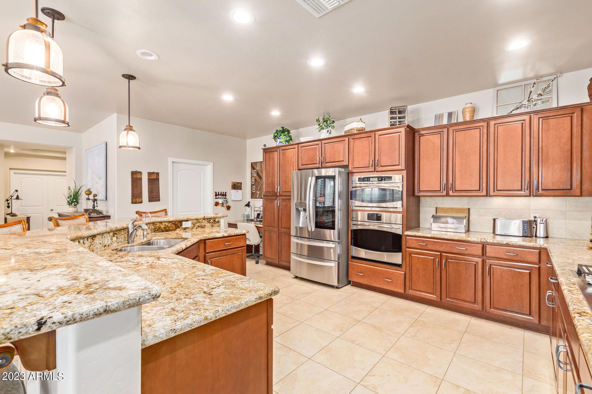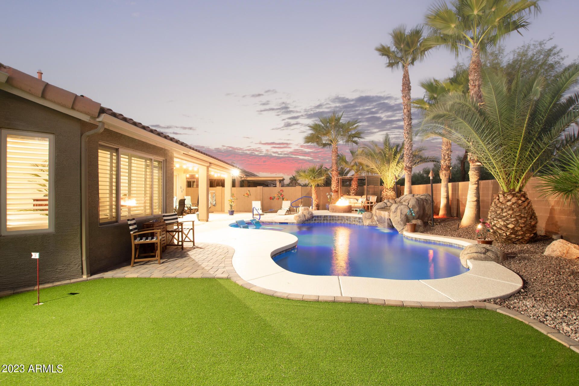 Simply the best! $30,000 price reduction in Robson Ranch. TURN KEY FURNITURE INCLUDED; heated over the top private pool with waterfall, to the Casita for ''mother-in-law'' or private office, The owner has spent over $50K in itemized updates, plus a new LG Mini Split in the Casita as of August 2025. Quick occupancy possible. Top of the line quality furniture negotiable includes all newer appliances, (except oven, works well)! Garage has updated insulation, MINI SPLIT for year-round enjoyment of the garage, 3++car garage, floor epoxy, mint condition. Talavera model that has all the space you need. Neutral tile floors, primary bedroom with door to patio-pool, 2023 ,new carpet in bedrooms and casita, most of interior painted 2022-23. Central air compressor just replaced. Pool with gas List price includes home to be sold turnkey with all furniture, linens, etc.