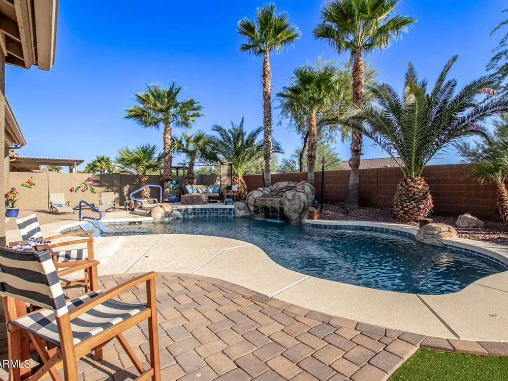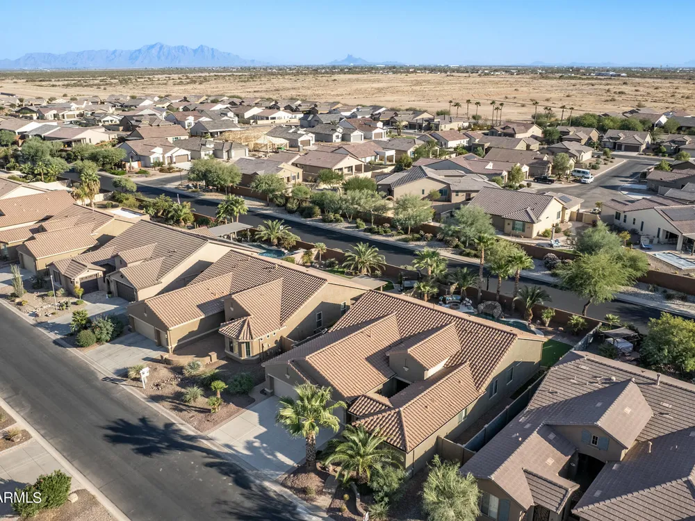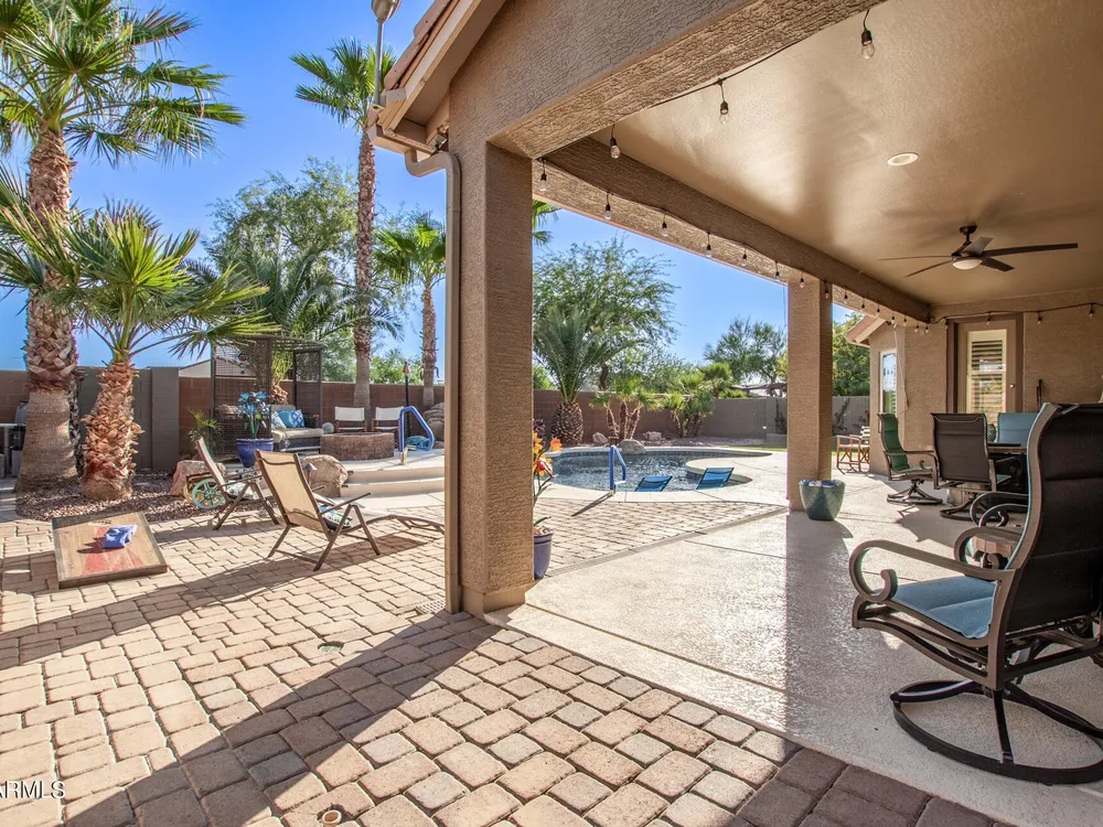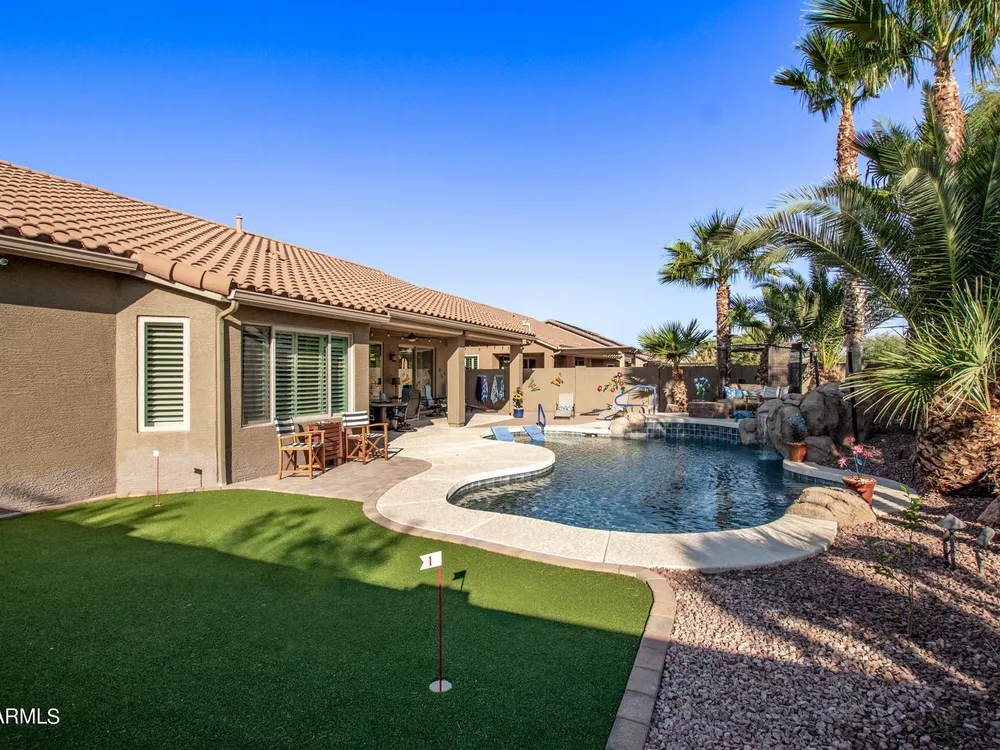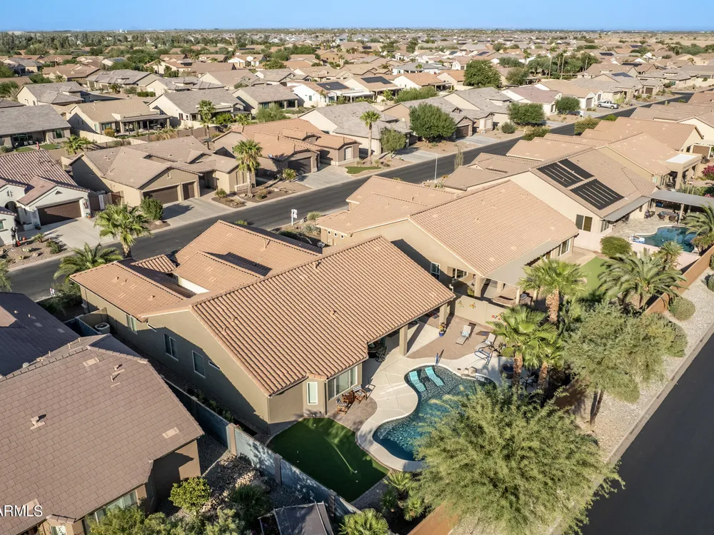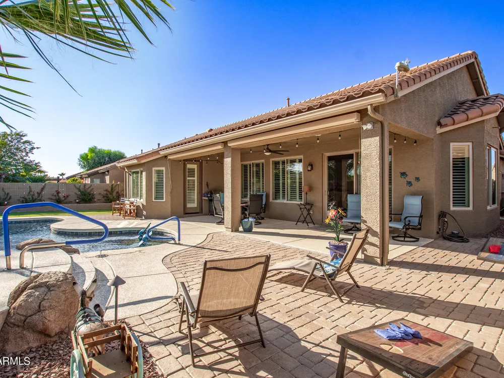 Simply the best! Awesome price in Robson Ranch. From the heated over the top private pool with waterfall, to the Casita for ''mother-in-law'' or private office, THIS IS THE ONE! Quick occupancy possible. Top of the line quality furniture negotiable includes all newer appliances, (except oven, works well)! Garage has updated insulation, MINI SPLIT for year-round enjoyment of the garage, 3++car garage, floor epoxy, mint condition. Talavera model that has all the space you need. Neutral tile floors, primary bedroom with door to patio and pool, all new carpet in bedrooms and casita, most of interior painted 2022-23. Central air compressor just replaced. Pool with gas heater, crystal clear! You deserve it! Integra block construction for energy efficiency