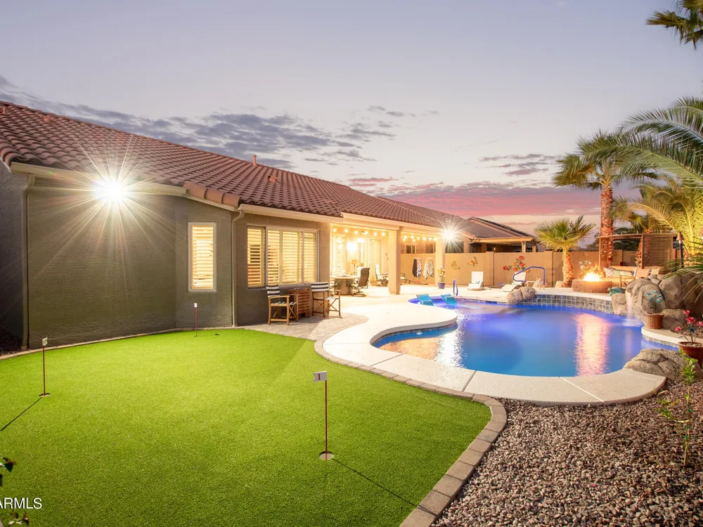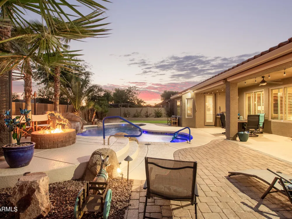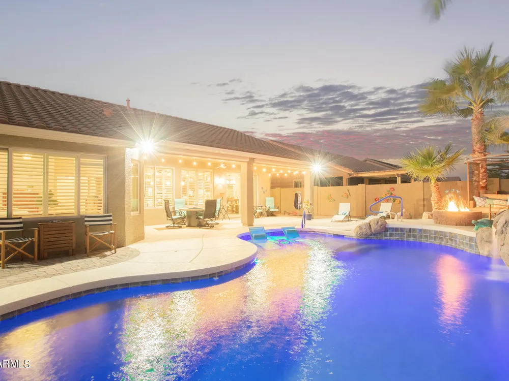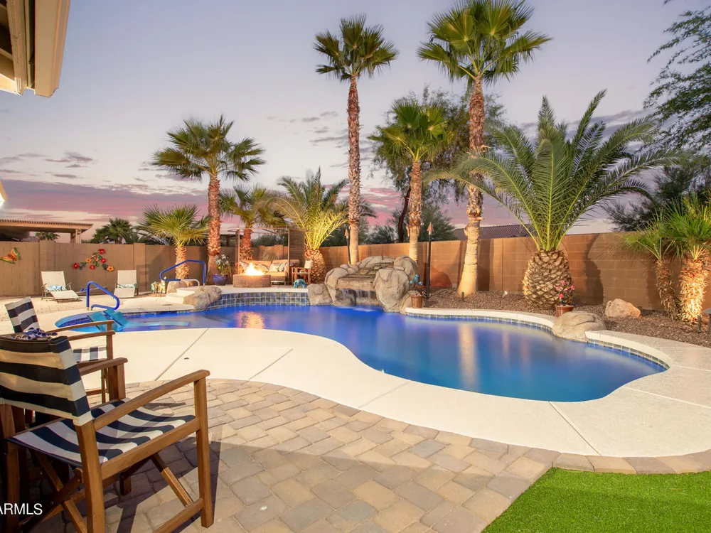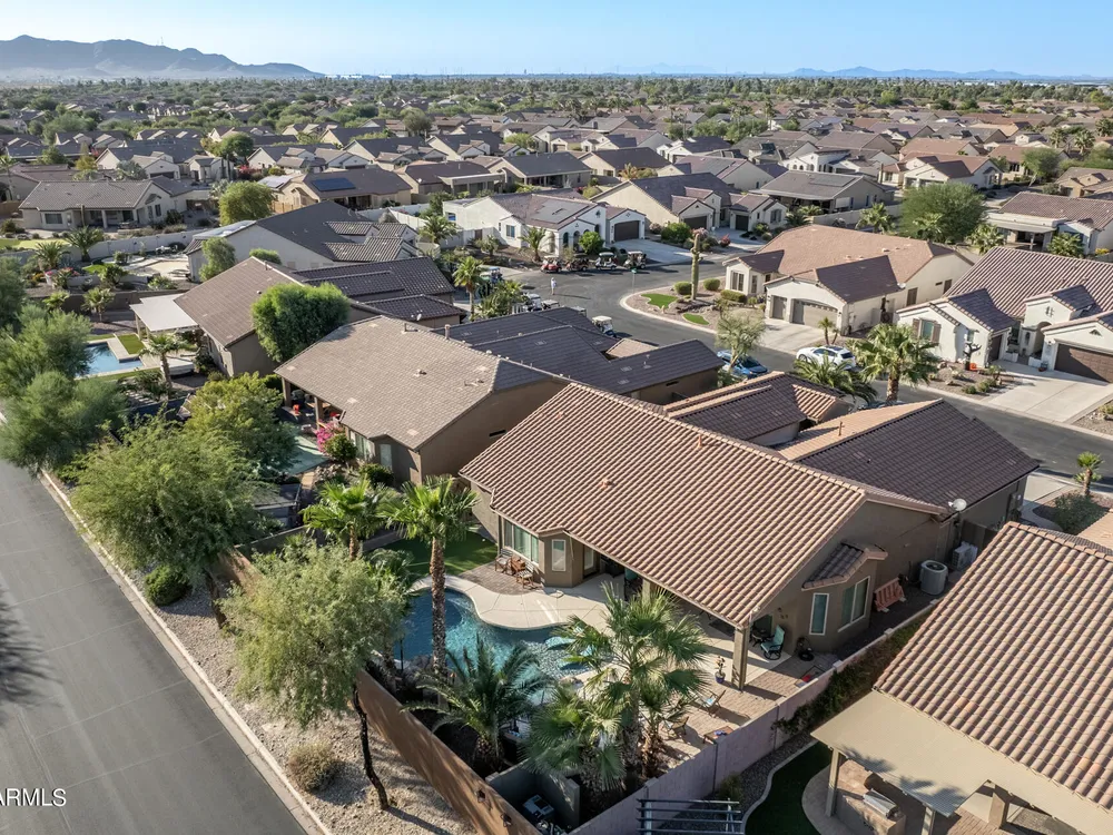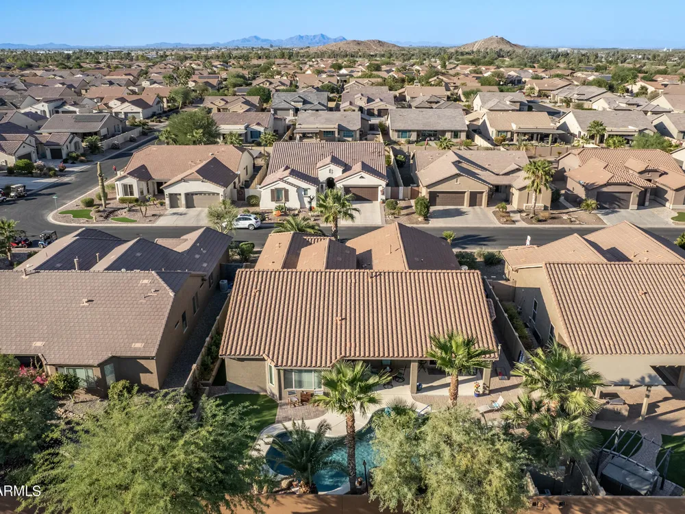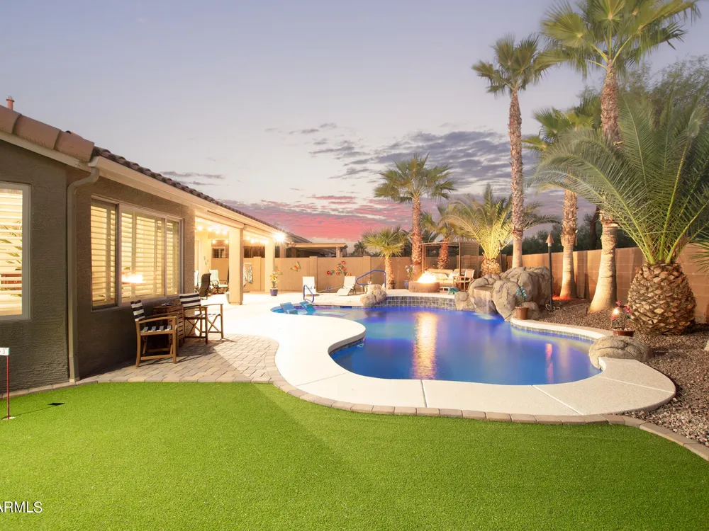 Simply the best! Awesome price in Robson Ranch. From the heated over the top private pool with waterfall, to the Casita for ''mother-in-law'' or private office, THIS IS THE ONE! Quick occupancy possible. Top of the line quality furniture negotiable includes all newer appliances, (except oven, works well)! Garage has updated insulation, MINI SPLIT for year-round enjoyment of the garage, 3++car garage, floor epoxy, mint condition. Talavera model that has all the space you need. Neutral tile floors, primary bedroom with door to patio and pool, all new carpet in bedrooms and casita, most of interior painted 2022-23. Central air compressor just replaced. Pool with gas heater, crystal clear! You deserve it! Integra block construction for energy efficiency