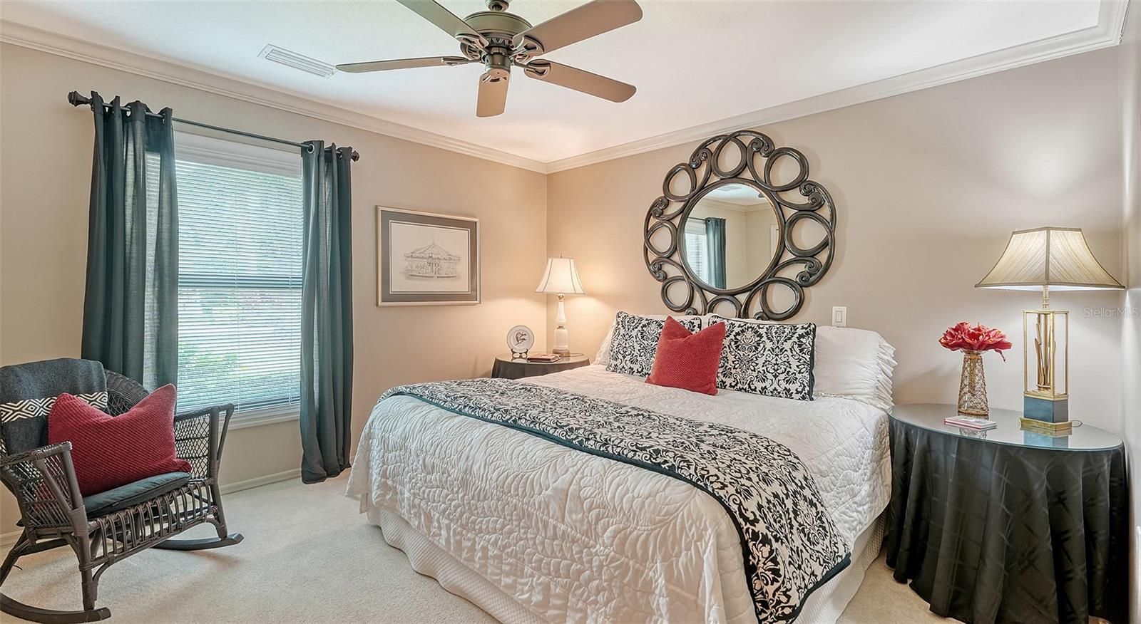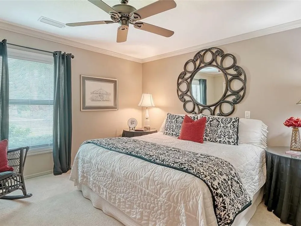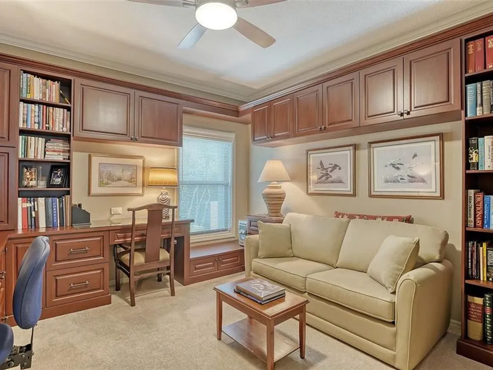 - Built-in Features, Ceiling Fan(s), Main Level Primary, Solid-Wood Cabinets, Split Bedrooms, Stone Counters, Walk-In Closet(s), Window Treatments