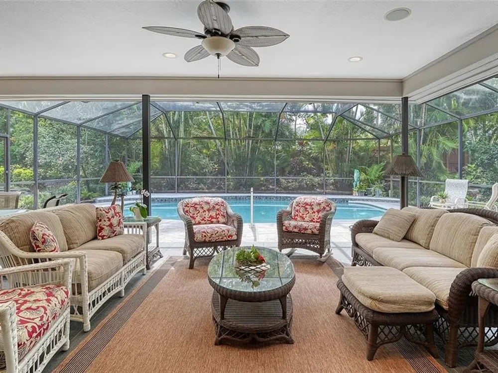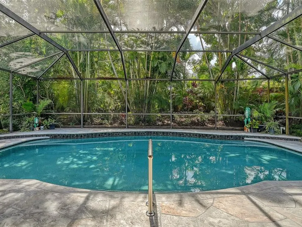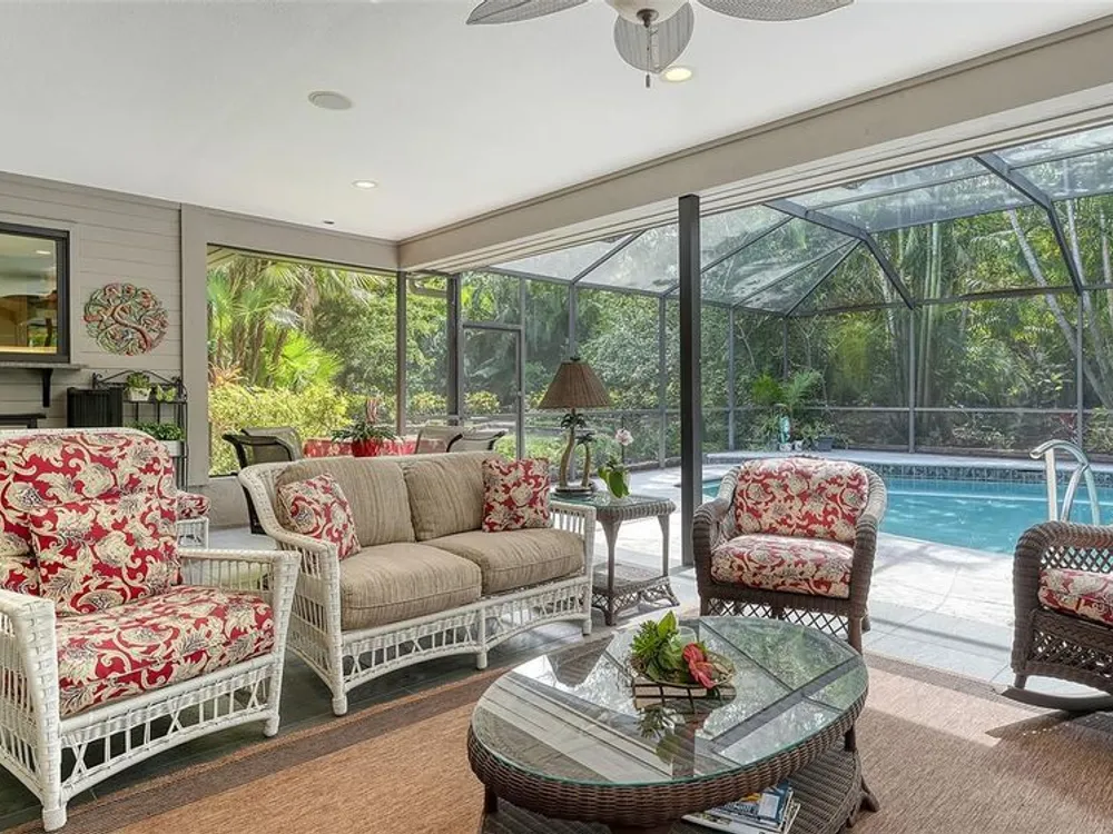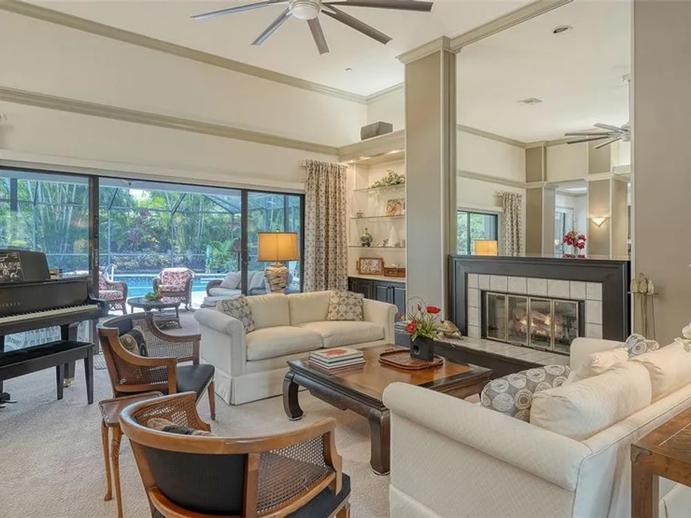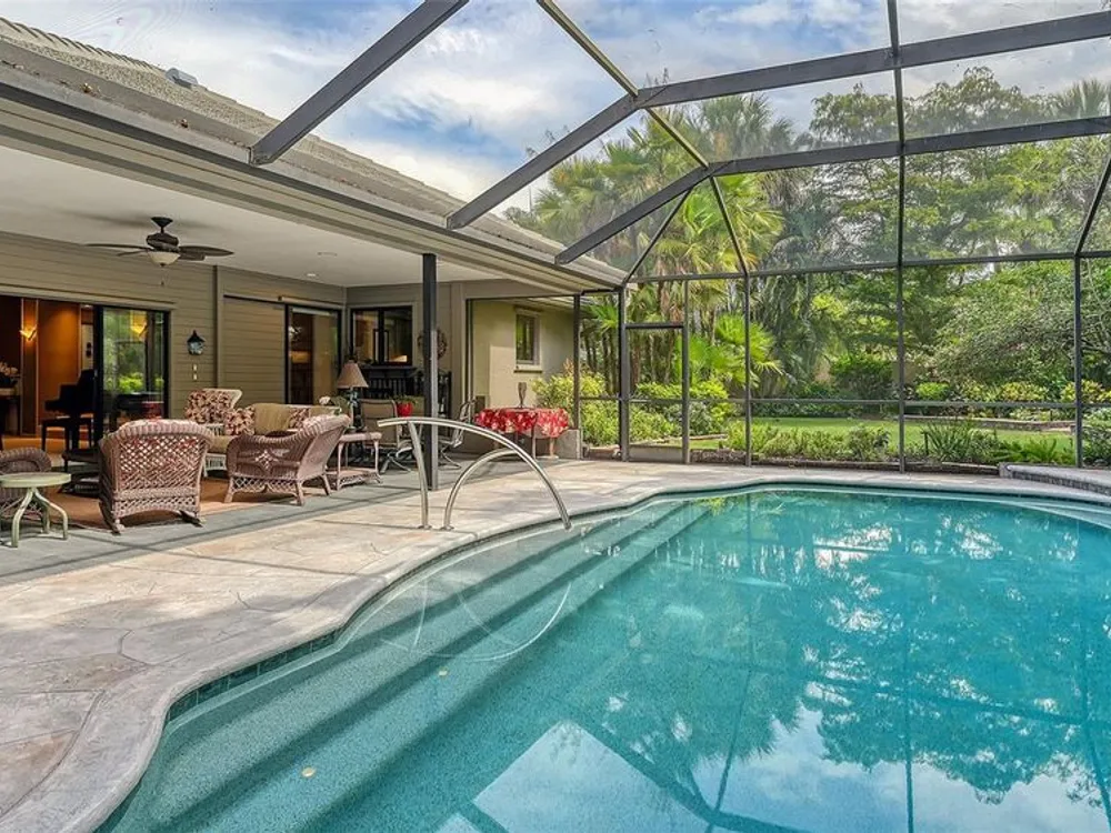 Located in Sarasota’s coveted and 24-hour guard-gated West of Trail community, The Landings, this beautifully reimagined 3-bedroom, 3-bath residence with a bonus room offers refined coastal living and peace of mind through extensive, high-quality updates. Situated on a lushly landscaped lot with mature trees and privacy and not in a flood zone, this 2,921 sf home blends timeless architecture with thoughtful modern improvements, all just minutes from Siesta Key’s world-famous beaches and Downtown Sarasota. Hurricane-impact windows and sliders, and the Miami-Dade rated roof and updated PVC plumbing offer structural integrity and long-term value. Design upgrades include porcelain tile flooring and beautiful custom wood cabinetry and built-ins. The fully updated kitchen features premium stainless appliances, Silestone counters, stylish cabinetry, a picture frame window overlooking the beautiful garden, a convenient pass thru window to the lanai, and custom walk-in pantry. The adjacent dining room is perfect for entertaining and the formal living room with its high ceiling is anchored by a woodburning fireplace with tiled hearth and built-ins. The split-bedroom floor plan offers privacy and functionality, with all 3 bedrooms, (one currently outfitted as a convenient home office with solid wood built-ins) boasting custom walk-in closets and lovely bathrooms. A spacious bonus room is light and bright and includes a redesigned alcove with floor-to-ceiling custom built-ins to house books, media, or art. Every inch of this home reflects quality, style, and enduring craftsmanship. The interior of the home flows seamlessly to the elegant and serene exterior where you will enjoy the professionally redesigned landscape with exquisite plantings, brick paver driveway, meandering walking path, elevated relaxation area, peaceful fountain, and custom exterior lighting. The spectacular pool area underwent a major renovation in 2020 which included resurfacing with Pebble Tec (lifetime warranty), installation of a new heater and pump, and the addition of a stylish new Italian tile surround. The lanai was rescreened in 2023 and the deck was upgraded with a high-performance Pro Tech surface for durability and beauty. Located behind the gates of The Landings, residents enjoy tree-canopied streets, a nature trail leading to Roberts Bay, and optional membership to the Landings Racquet Club, offering tennis, pickleball, a heated pool, fitness center, and clubhouse. With proximity to A-rated schools, Southside Village, Sarasota Memorial Hospital, and the cultural amenities of downtown Sarasota, this property is a rare opportunity to own a truly move-in-ready home in one of Sarasota’s most sought-after communities.