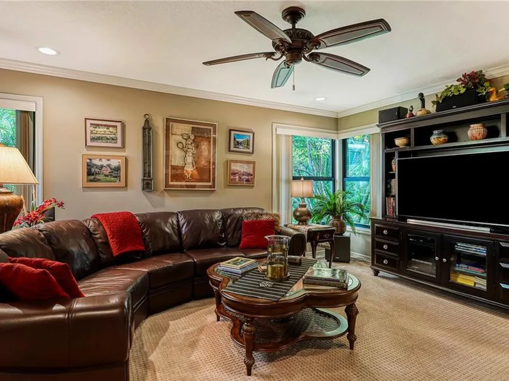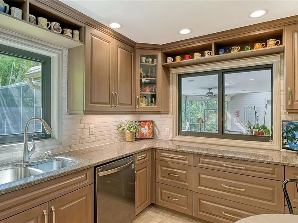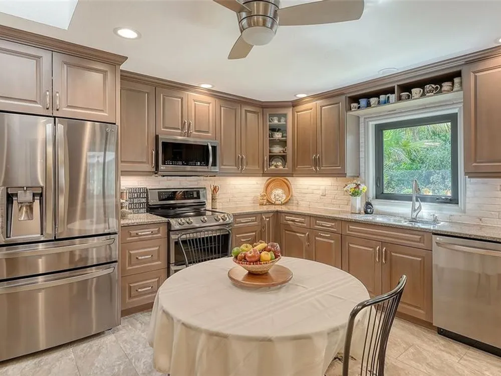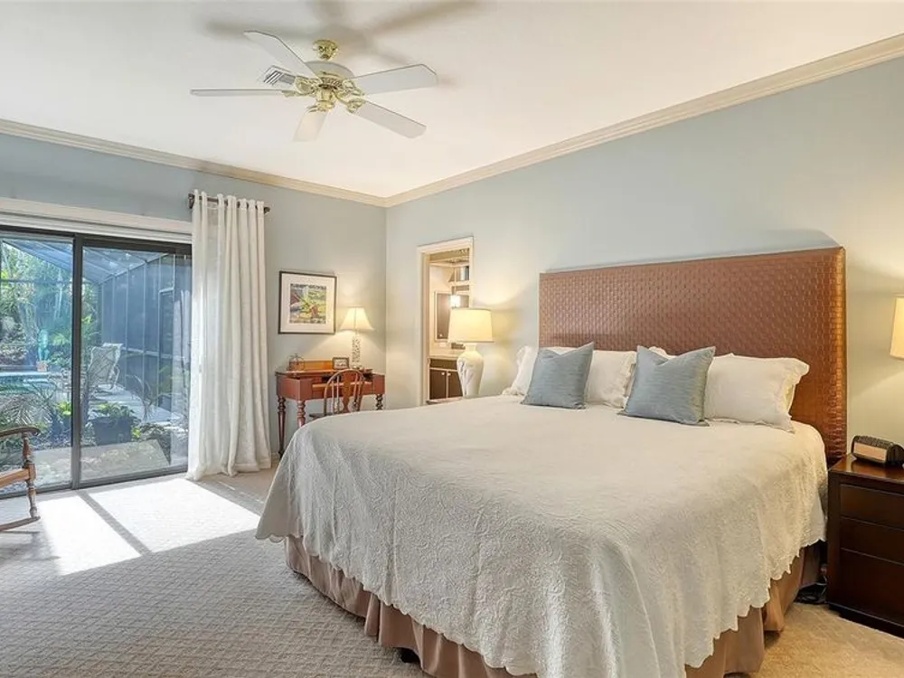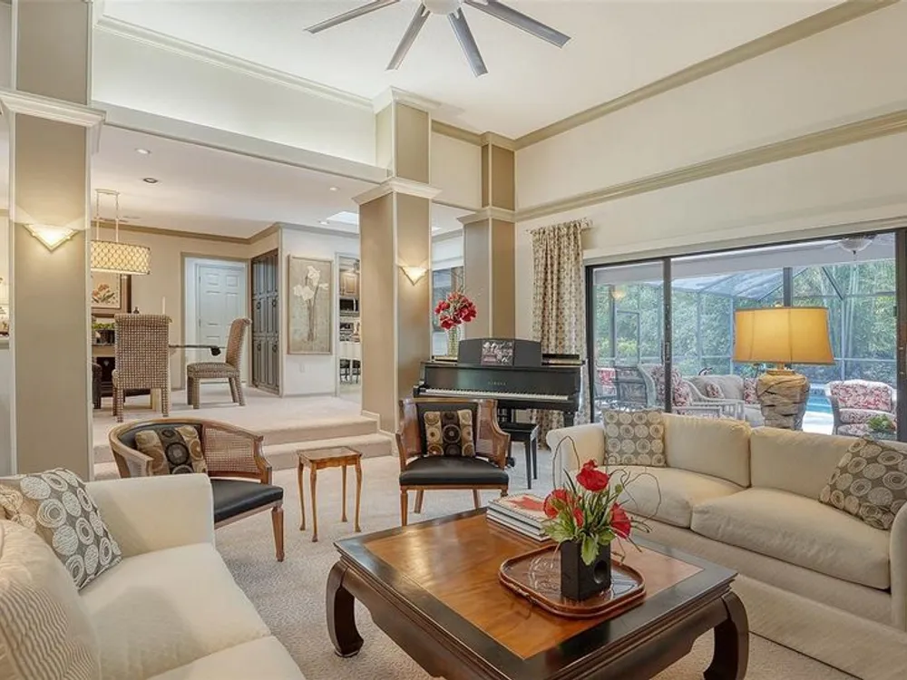 Located in Sarasota’s coveted and 24-hour guard-gated West of Trail community, The Landings, this beautifully reimagined 3-bedroom, 3-bath residence with a bonus room offers refined coastal living and peace of mind through extensive, high-quality updates. Situated on a lushly landscaped lot with mature trees and privacy and not in a flood zone, this 2,921 sf home blends timeless architecture with thoughtful modern improvements, all just minutes from Siesta Key’s world-famous beaches and Downtown Sarasota. Hurricane-impact windows and sliders, and the Miami-Dade rated roof and updated PVC plumbing offer structural integrity and long-term value. Design upgrades include porcelain tile flooring and beautiful custom wood cabinetry and built-ins. The fully updated kitchen features premium stainless appliances, Silestone counters, stylish cabinetry, a picture frame window overlooking the beautiful garden, a convenient pass thru window to the lanai, and custom walk-in pantry. The adjacent dining room is perfect for entertaining and the formal living room with its high ceiling is anchored by a woodburning fireplace with tiled hearth and built-ins. The split-bedroom floor plan offers privacy and functionality, with all 3 bedrooms, (one currently outfitted as a convenient home office with solid wood built-ins) boasting custom walk-in closets and lovely bathrooms. A spacious bonus room is light and bright and includes a redesigned alcove with floor-to-ceiling custom built-ins to house books, media, or art. Every inch of this home reflects quality, style, and enduring craftsmanship. The interior of the home flows seamlessly to the elegant and serene exterior where you will enjoy the professionally redesigned landscape with exquisite plantings, brick paver driveway, meandering walking path, elevated relaxation area, peaceful fountain, and custom exterior lighting. The spectacular pool area underwent a major renovation in 2020 which included resurfacing with Pebble Tec (lifetime warranty), installation of a new heater and pump, and the addition of a stylish new Italian tile surround. The lanai was rescreened in 2023 and the deck was upgraded with a high-performance Pro Tech surface for durability and beauty. Located behind the gates of The Landings, residents enjoy tree-canopied streets, a nature trail leading to Roberts Bay, and optional membership to the Landings Racquet Club, offering tennis, pickleball, a heated pool, fitness center, and clubhouse. With proximity to A-rated schools, Southside Village, Sarasota Memorial Hospital, and the cultural amenities of downtown Sarasota, this property is a rare opportunity to own a truly move-in-ready home in one of Sarasota’s most sought-after communities.
