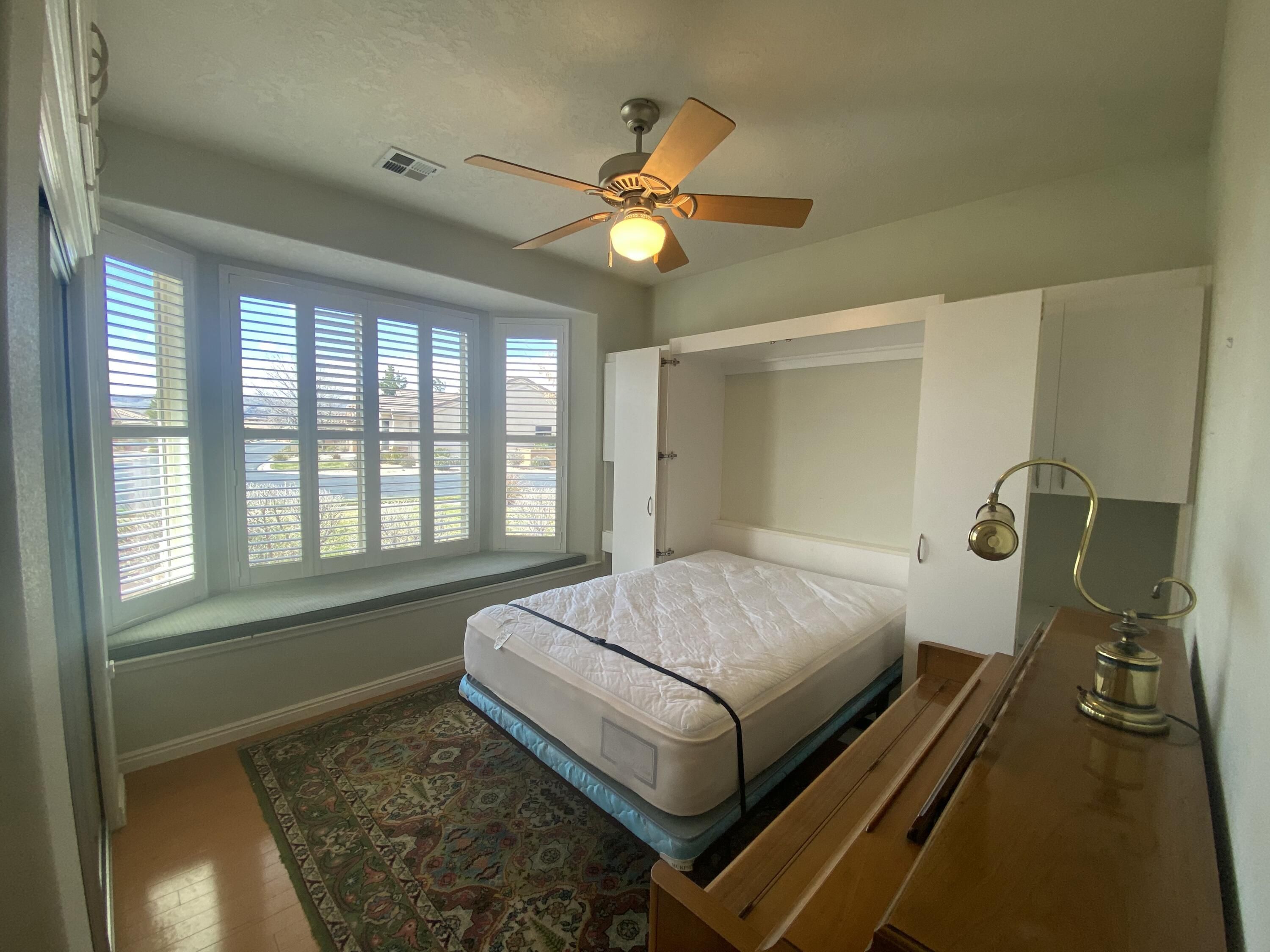 Views! Views! Views! This home has it all--Pine Valley Mountain, majestic desert skies, and the 12th fairway and green of the Sun River Golf Course. The natural beauty continues inside the home with 18 x 18 porcelain floor tiles, Vermont maple hardwood floors in the bedrooms, and maple cabinetry throughout the home. Energy features abound and include 2 x 6 exterior walls with R24 insulation, attic R50 blown in insulation, a whole house attic fan, ceiling fans, and a Mitsubishi ''Mr. Slim'' 22,000 btu air conditioner in the 3-car garage. Larson storm doors and low E 140 windows keep the outside temperatures out. Dixie Power keeps the electricity bills down. Bay windows enlarge the bedrooms. With the flexibility of a Murphy bed, the guest bedroom can be used for sewing, or crafts. Four ladder-back hanging bar stools with brushed nickel footrests. Handicapped accessible bathroom.