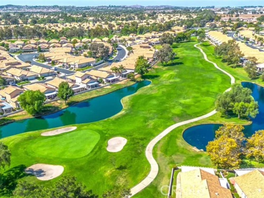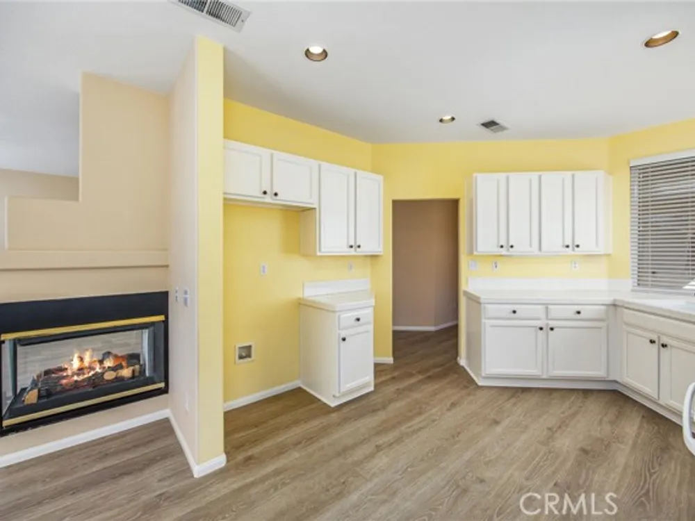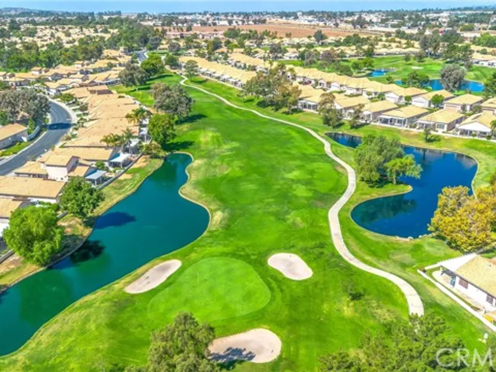 Don't miss this charming 1312 sq. ft. Magnolia home. It has been meticulously maintained and is move in ready. It features new on trend laminate flooring through-out and new carpet in the 2 bedrooms. The living room includes a double-sided gas fireplace, plenty of windows and a sliding glass door to view the lush border plantings that encircle the private backyard with concrete patio and views of the southern sky. Bring your patio table, chairs and umbrella and enjoy your own private oasis. The bright, airy kitchen and dining area has an abundance of (newly painted) white cabinets for storage and an extended serving counter for display or serving while entertaining. There is an indoor laundry room complete with washer & dryer. The primary bedroom features a sliding glass door to the patio, a walk-in closet, en-suite bath with double sinks, updated bronze fixtures & walk-in shower. The guest bedroom is in the front of the home for privacy. The light filled guest bathroom has a tub/shower and is updated with bronze fixtures. Come take a look today for a list of the many other upgrades. The location is one of the highlights of this delightful home, located near the 12th hole of the executive course on a quiet cul-de-sac and just a short walk to the north clubhouse, executive golf co