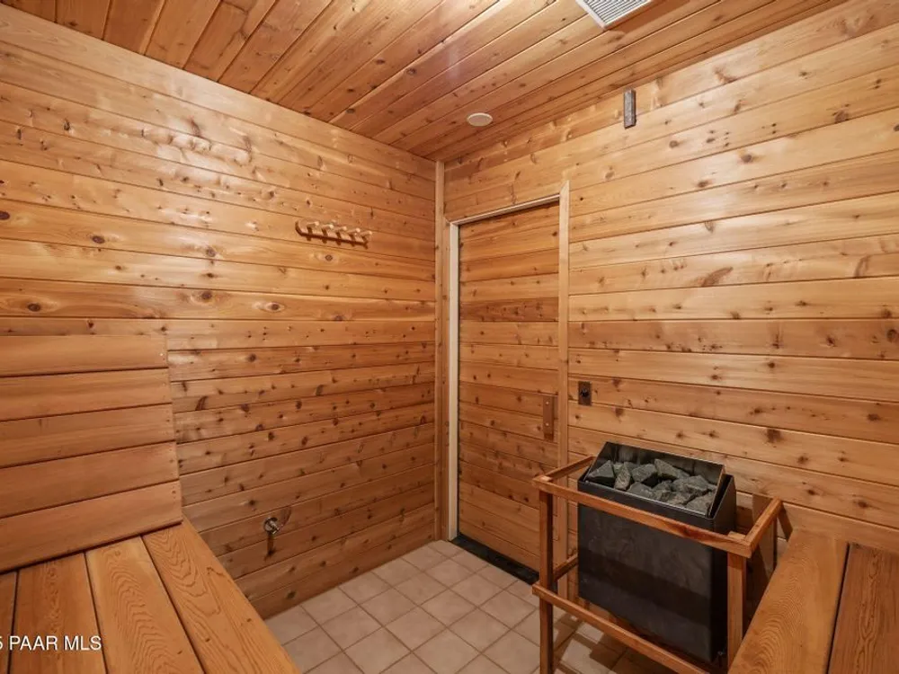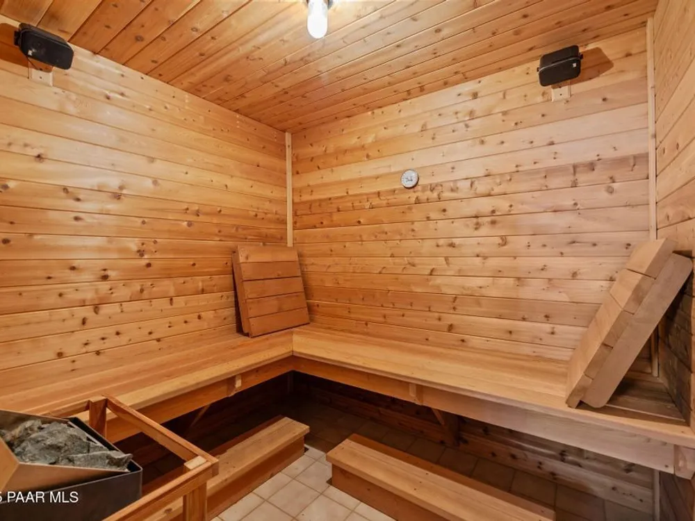 - Bar, Beamed Ceilings, Ceiling Fan(s), Central Vacuum, Granite Counters, Single Living Level, Primary Downstairs, High Ceilings, Sauna, Wired for Sound, Walk-In Closet(s), Washer/Dryer Hookup, Wet Bar