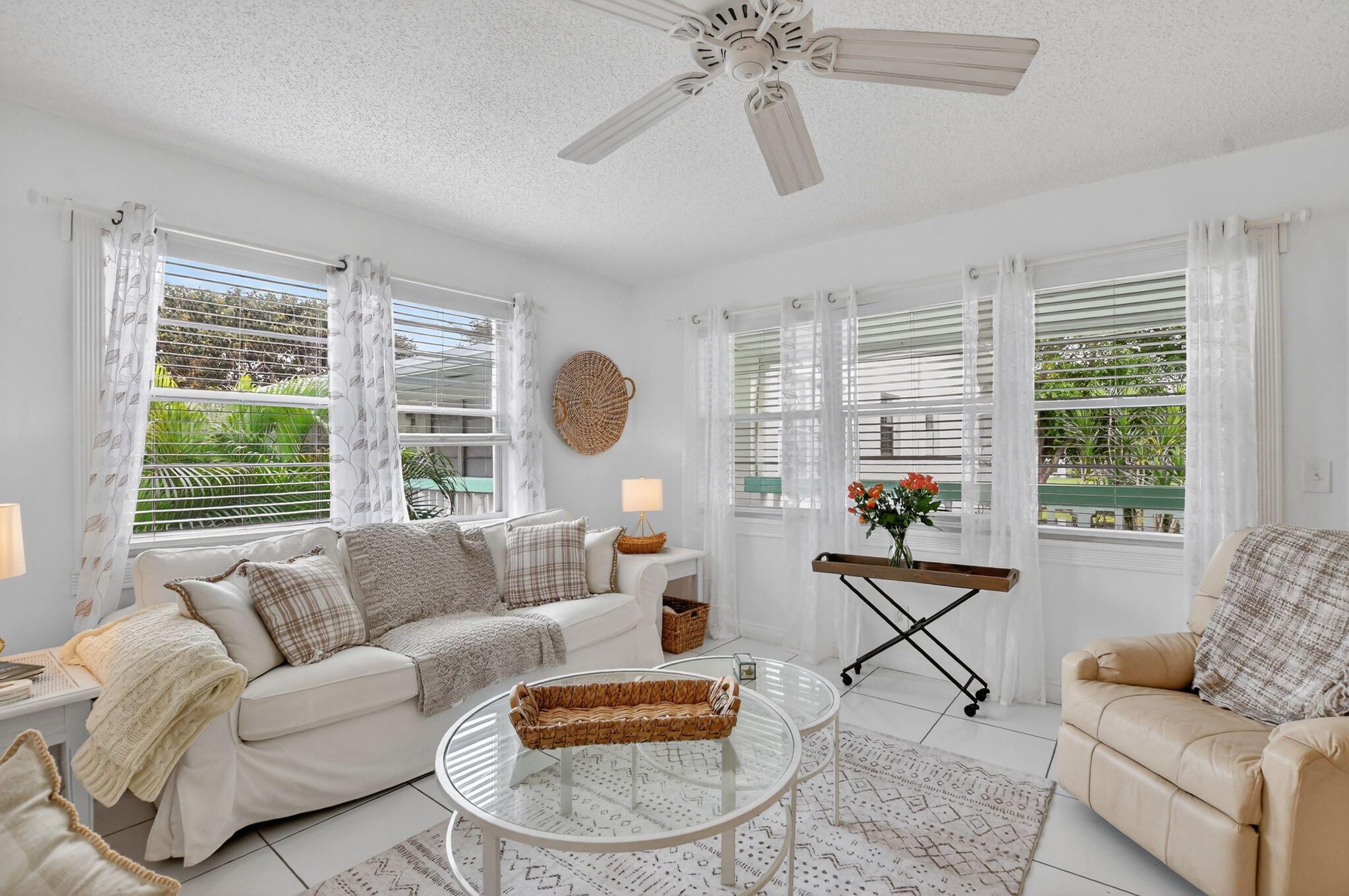 Light and bright corner unit located on the second floor. Peaceful building with a tranquil lake view and barbecue area. 1 bedroom and one and a half bathroom. Beautifully furnished and decorated. Turn key move in ready. Just bring your suitcase. Central Air conditioning that is recent, nice tile floor. Building has a new roof since 2024. Located in the 55 plus community of Century Village in Deerfield Beach. Resort style amenities with a grand clubhouse with a 1500 seat theater and proximity to beach, shops, restaurants and more.
