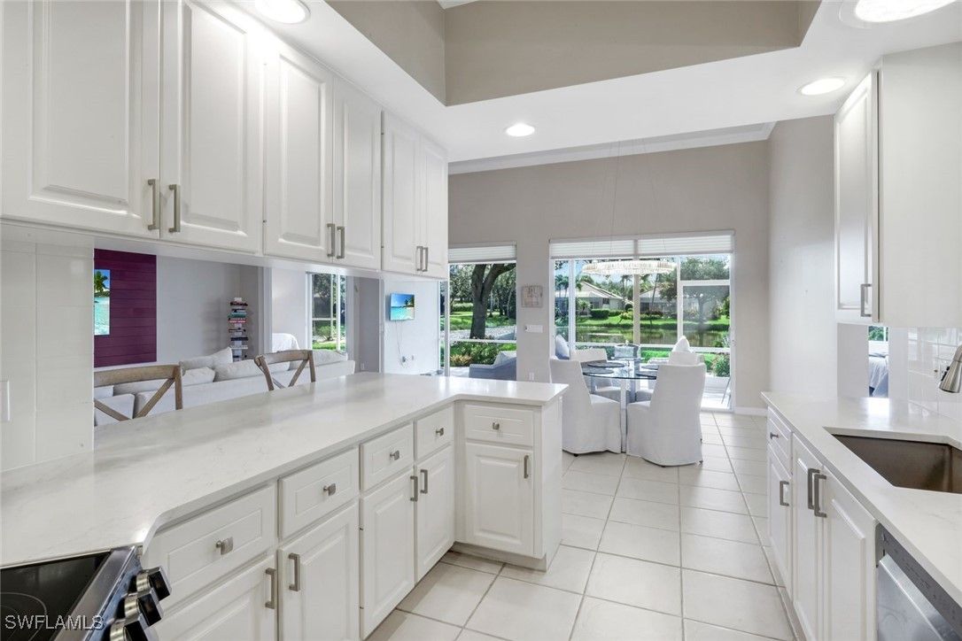 Welcome to Island Walk and an exceptional opportunity to own one of the community’s most sought-after floor plans. This spacious Carlyle model offers 4 bedrooms, 3.5 baths, and over 2,500 square feet under air, blending comfort and functionality with timeless DiVosta quality. Tucked along a serene lakefront setting, this home invites you to relax and unwind while enjoying tranquil water views from your lanai. Inside, you'll find a bright and airy layout with multiple living and dining spaces, high ceilings, and abundant natural light throughout. The kitchen and roof were both updated within the last two years, giving you peace of mind and modern appeal where it counts most. Whether you're gathering with friends or hosting family, the open flow of the living areas creates the perfect backdrop. The private primary suite features dual closets, an en-suite bath with separate his and hers bath with adjoining shower and separate tub, and sliding glass doors that open to the view. Three additional bedrooms make this home ideal for multigenerational living or hosting guests in style. With a 2-car garage, solid CBS construction, and the added bonus of no pool to maintain, this property offers ease of ownership and plenty of room to personalize. Enjoy all the benefits of life in Island Walk, a gated community known for its lush landscaping, miles of walking paths, and exceptional amenities including resort-style pools, fitness center, tennis courts, restaurant, gas station, car wash, and full social calendar. Move-in ready and priced with value in mind, let's bring you home!
