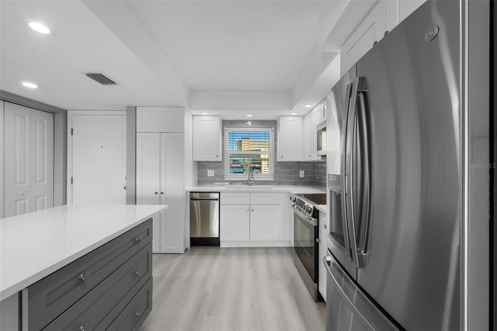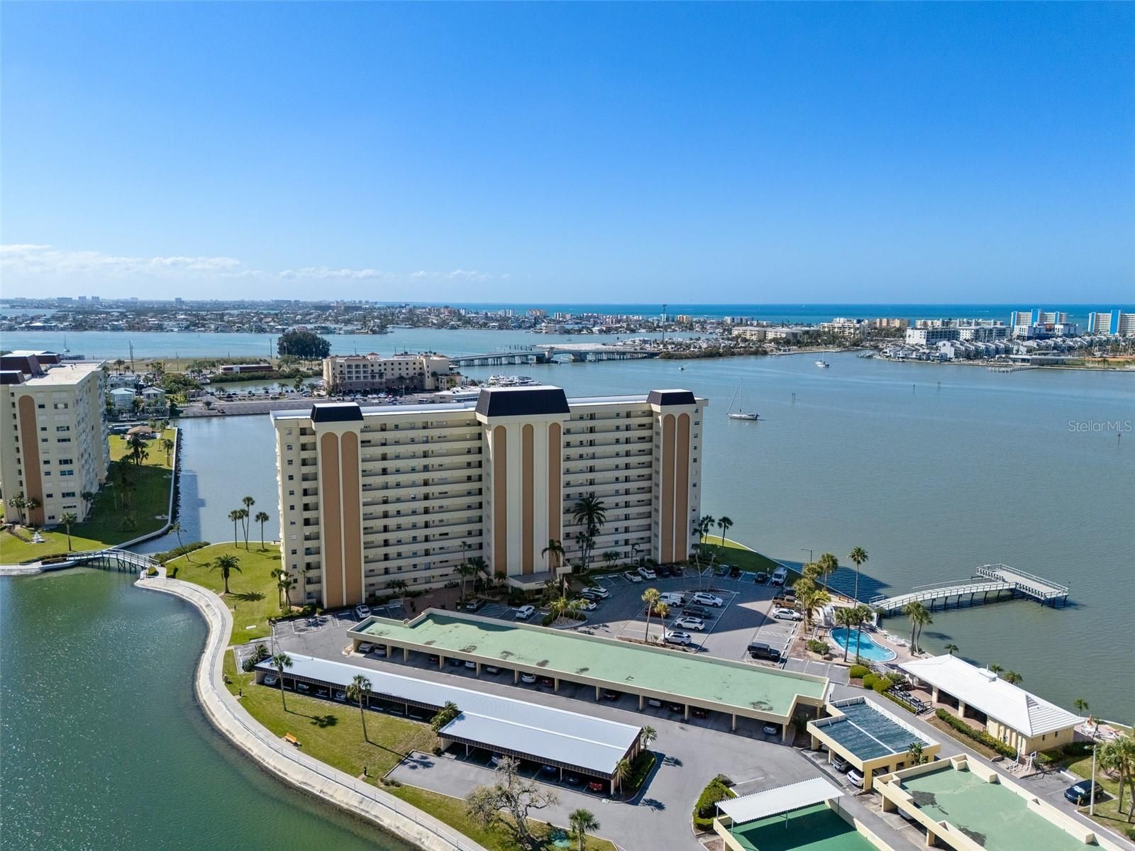 Welcome to this beautifully fully remodeled waterfront 2-bedroom, 2-bath condo in the highly sought-after 55+ gated community of Continental Towers in St. Petersburg. Offering stunning Intracoastal Waterway views, this move-in ready residence combines modern upgrades with effortless coastal living. Step inside to a bright, open-concept layout where the living, dining, and kitchen areas flow seamlessly together, all complemented by serene water views. The interior has been completely updated, featuring brand new flooring, new windows, a fully renovated kitchen with stone countertops, stainless steel appliances, and modern cabinetry, creating a clean, contemporary space that truly feels like new construction. Enjoy peace of mind with a brand new HVAC system and updated finishes throughout. The spacious primary suite offers a private retreat with an en-suite bathroom and a bonus sunroom—perfect for enjoying your morning coffee while taking in the waterfront views. The guest bedroom provides ample space and flexibility, ideal for visitors or a home office. This first-floor unit offers easy, stair-free access and includes a private outdoor space to relax and unwind. Residents of Continental Towers enjoy a resort-style lifestyle with amenities including two community pools, tennis courts, shuffleboard, a fishing pier, and 24-hour gated security. Boat slips are being reconstructed, with limited availability for separate purchase. The community is also undergoing updates, enhancing long-term value and appeal. The condo fee covers cable, insurance, exterior maintenance, water, sewer, trash, pest control, and more—providing truly low-maintenance living. The current special assessment has already been paid in full by the seller. Ideally located just minutes from the beaches, shopping, and dining, this property offers the perfect blend of luxury, convenience, and coastal lifestyle. Whether you’re seeking a full-time residence or seasonal retreat, this fully upgraded waterfront condo is a rare opportunity—schedule your private showing today!