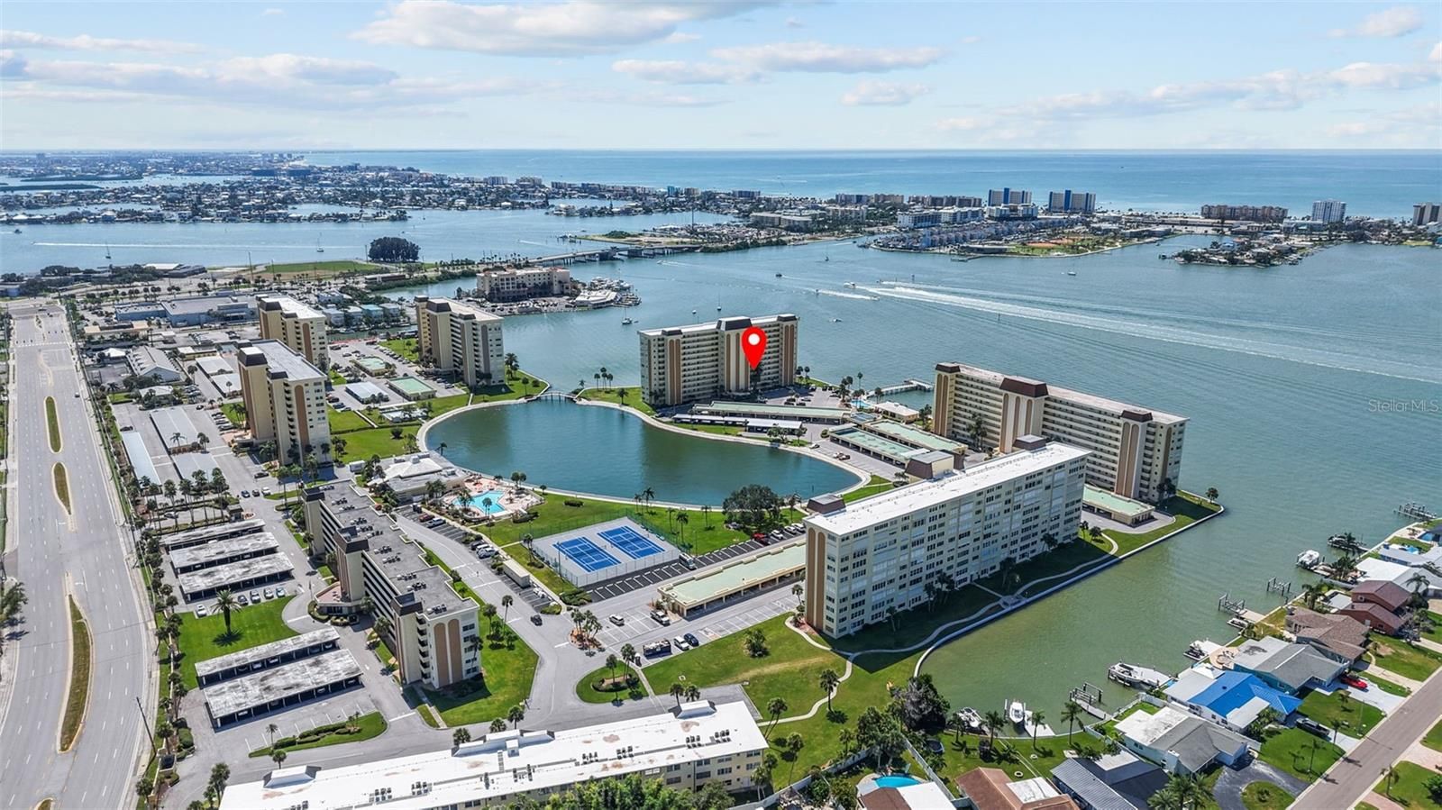 Welcome to Sea Towers – a 55+ Waterfront Community Enjoy beautifully maintained grounds and wide-open views of the Intracoastal Waterway and Gulf of Mexico. With incredible sunsets, boating activity, fishing from the dock, cooking on the multiple grills or relaxing by the community pools, this resort-style setting has it all. Residents enjoy shuffleboard, tennis, pickleball, a clubhouse with activities, and walking paths along the water. This is the perfect location, just minutes from gorgeous beaches to relax, soak up the sun, splash in the Gulf and enjoy the sand between your toes. Shopping, dining, music and the area’s busiest waterfront American Legion are right around the corner. This 1-bedroom, 1-bath condo offers stunning water views and breathtaking sunsets. The fully remodeled kitchen has been opened up for modern living and entertaining. The large primary bedroom has water views, a walk-in closet, sitting area, and en-suite bathroom. The sitting area makes for a cozy nook, a perfect space for a desk, reading chair, or chaise lounge to soak in the views. Hall closets offer great space for extra storage. Hurricane impact windows installed in 2019. Laundry room on the same floor as unit along with an owner storage closet. This is a move-in-ready condo just waiting for you!