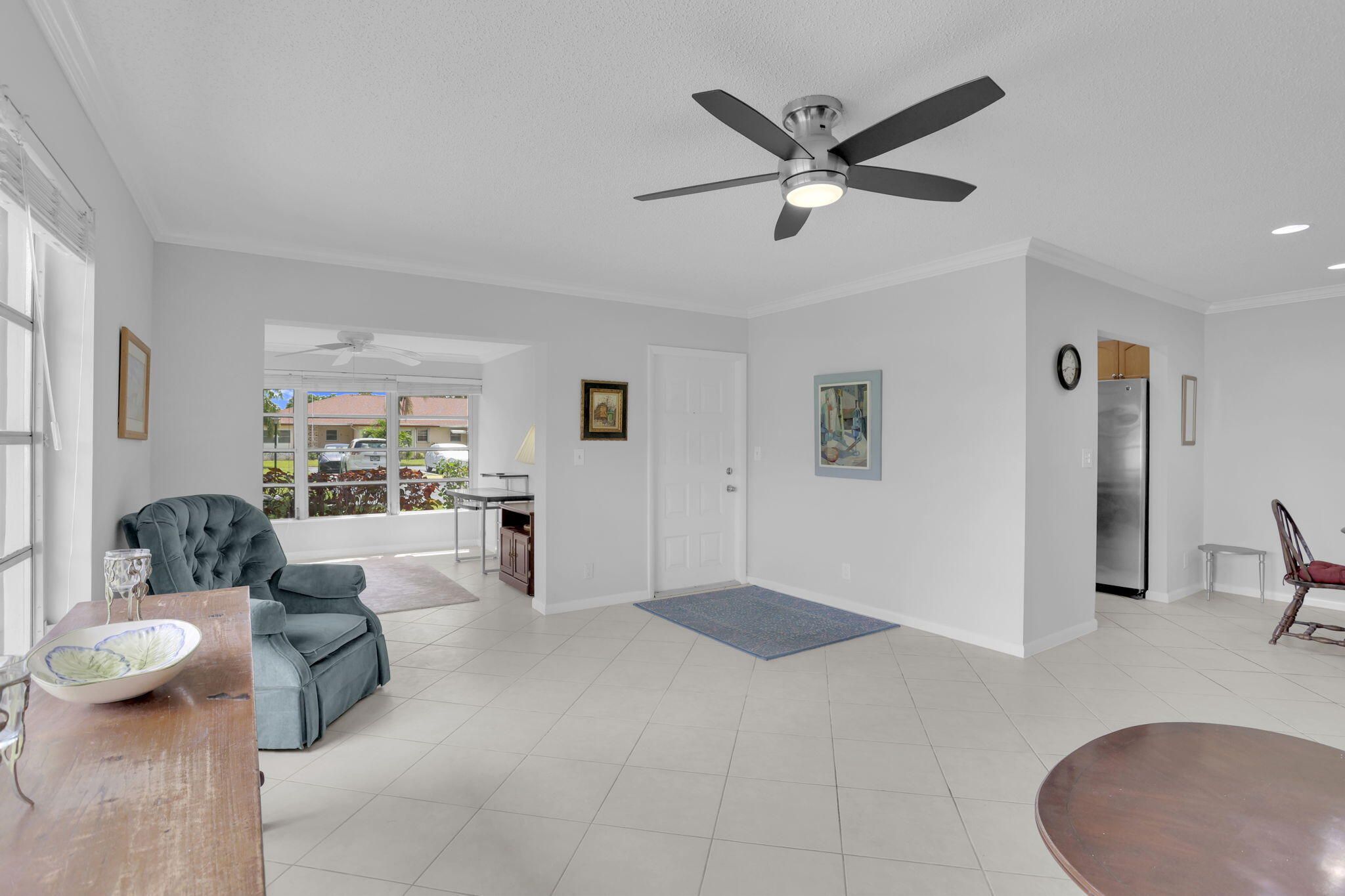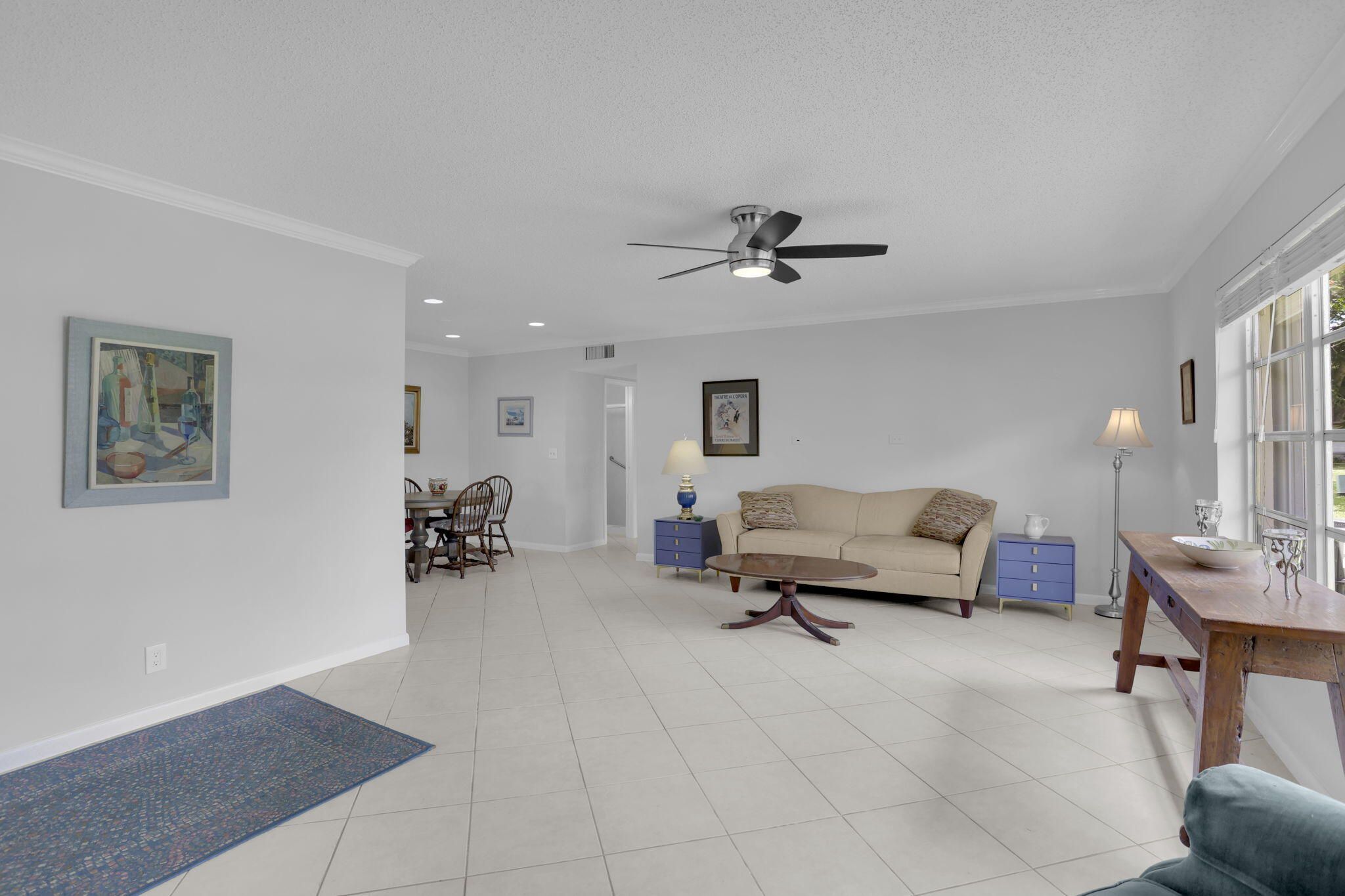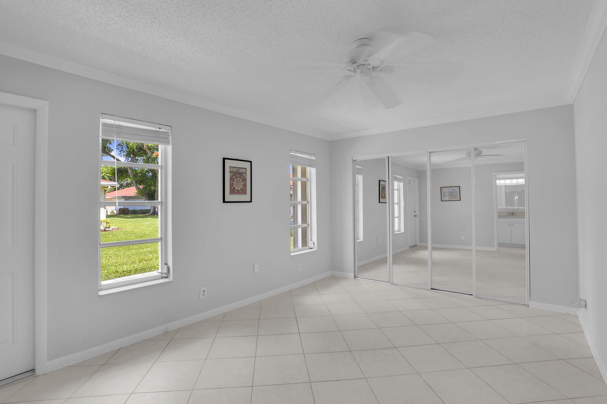 Garden villa, corner unit, bright, spacious 2 bedroom, 2 bath + den or office in prime Delray Beach location! Meticulously maintained tiled throughout, crown molding, newer stainless appliances, newer paint. 2023 Central Air.Master bedroom features a walk-in closet plus wall of closets.Enjoy your new, totally updated master bathroom with shower, new vanityLots of natural light-fills this home which features open & inviting layout, perfect for entertaining. A Florida sunroom ideal for lounging or a home office. Stay safe from storms with hurricane shutters (just serviced)Enjoy this quiet setting with open garden views. Located in one of the most sought-after sections, High Point Sec 7. Open backyard patio,Just a few steps away from the clubhouse