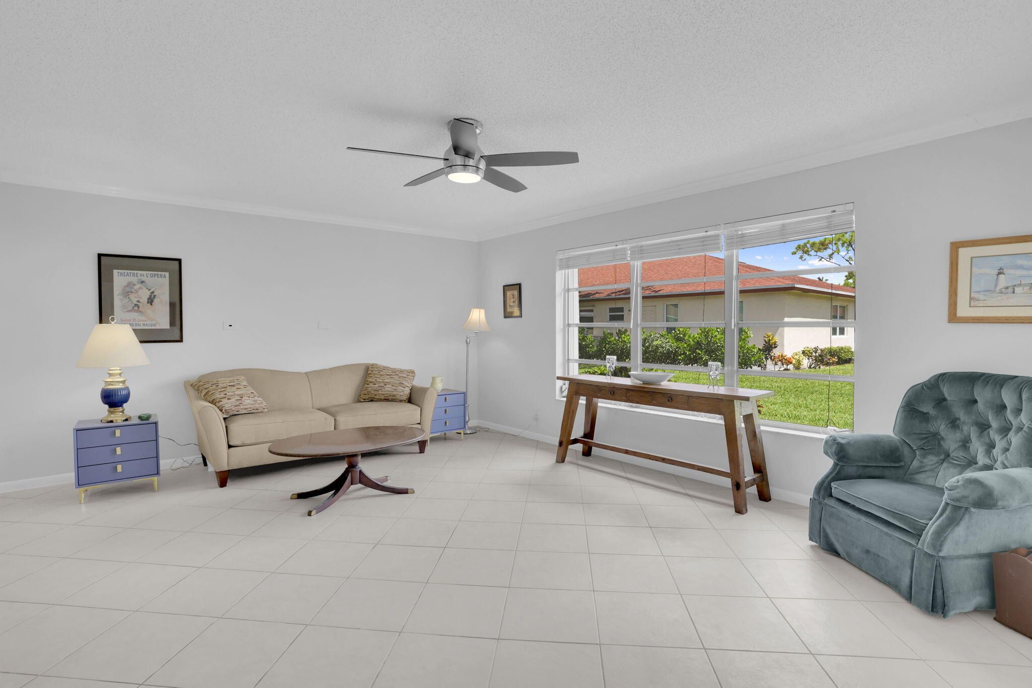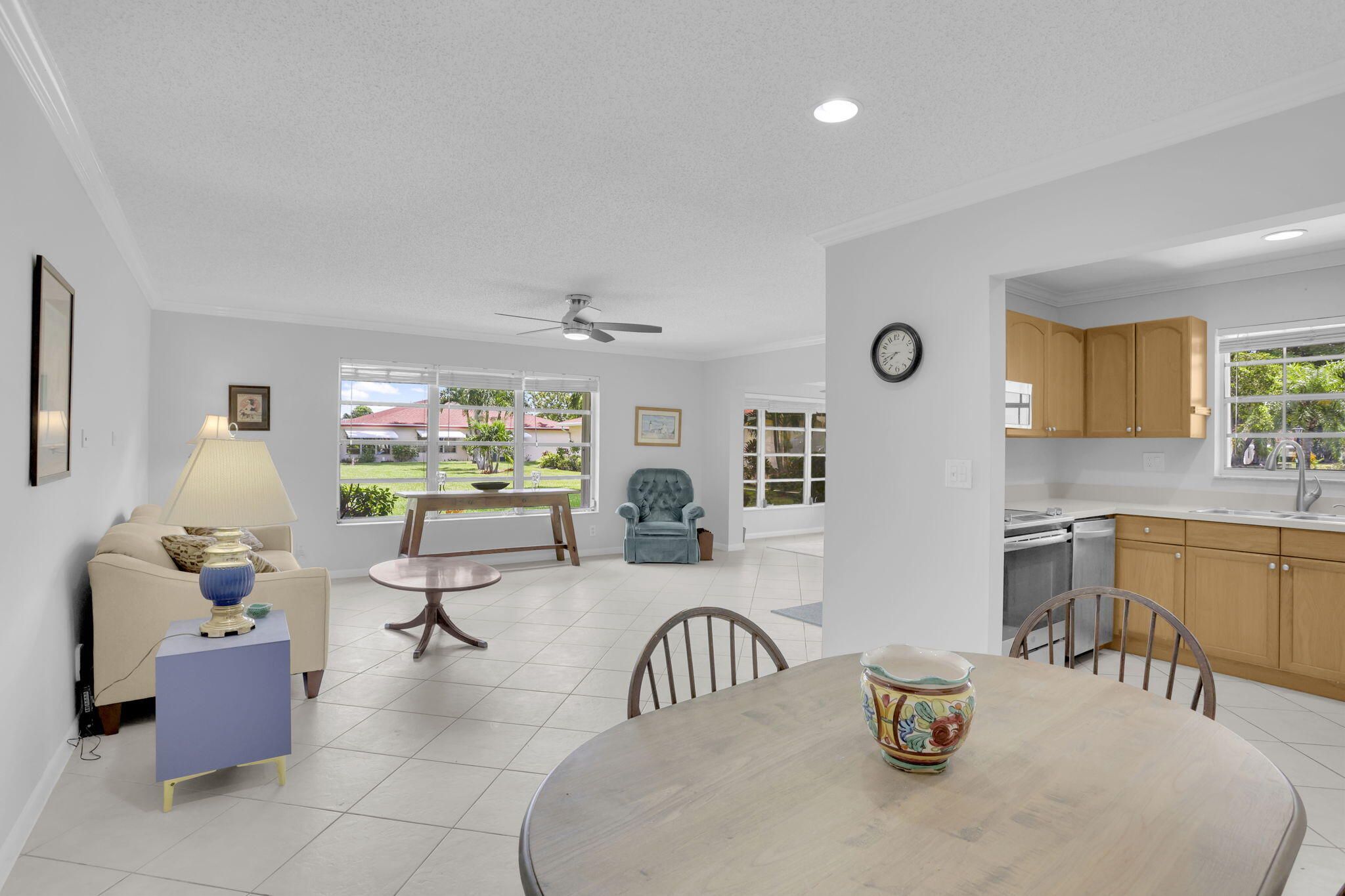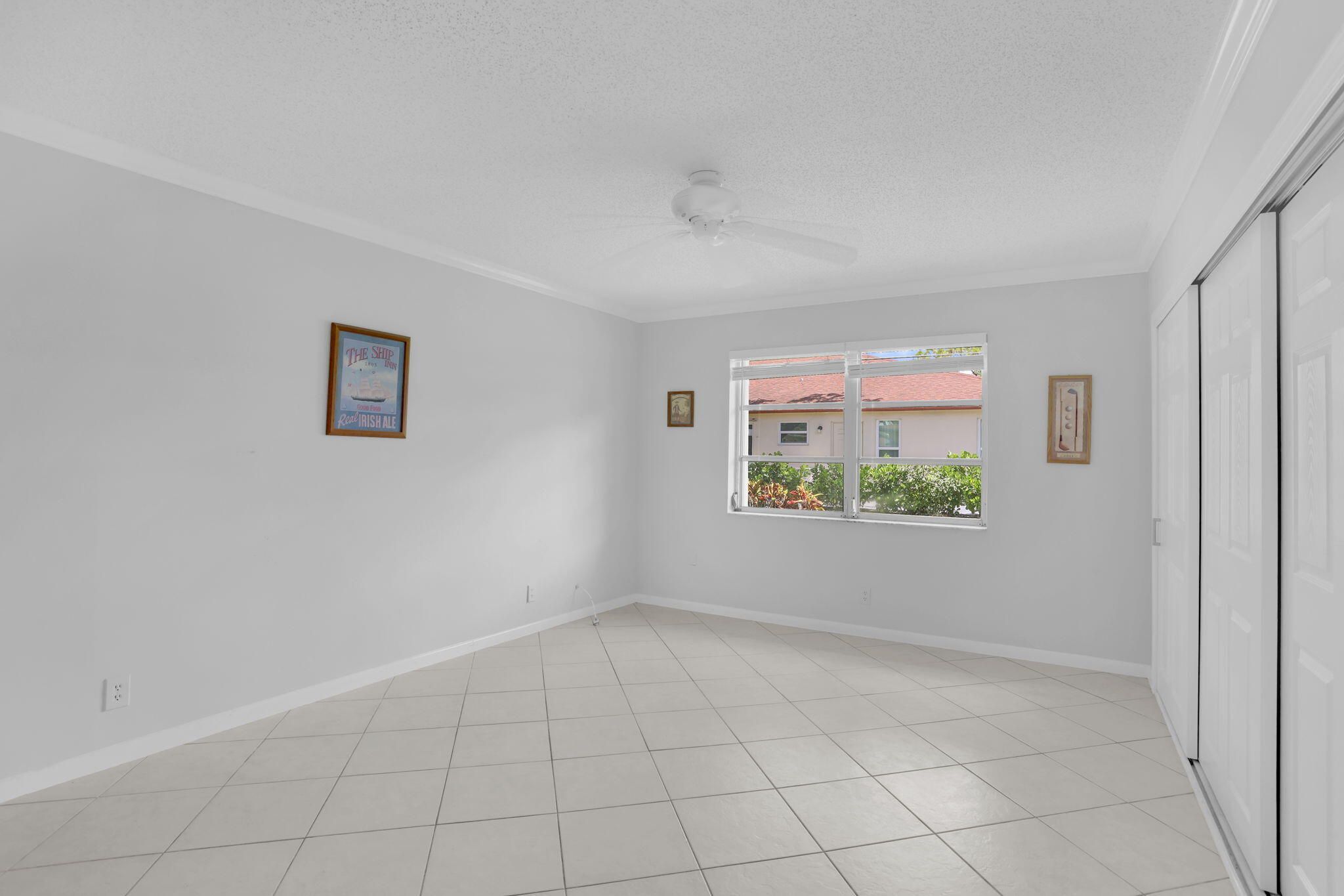 Garden villa, corner unit, bright, spacious 2 bedroom, 2 bath + den or office in prime Delray Beach location! Meticulously maintained tiled throughout, crown molding, newer stainless appliances, newer paint. 2023 Central Air.Master bedroom features a walk-in closet plus wall of closets.Enjoy your new, totally updated master bathroom with shower, new vanityLots of natural light-fills this home which features open & inviting layout, perfect for entertaining. A Florida sunroom ideal for lounging or a home office. Stay safe from storms with hurricane shutters (just serviced)Enjoy this quiet setting with open garden views. Located in one of the most sought-after sections, High Point Sec 7. Open backyard patio,Just a few steps away from the clubhouse