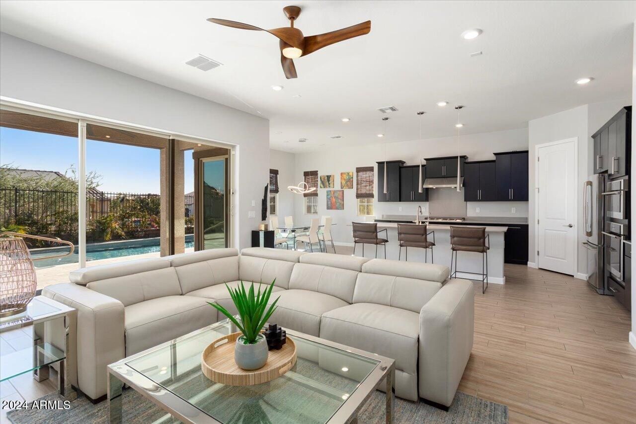 CORNER LOT, GOLF COURSE - MOUNTAIN - PARK VIEWS, POOL, PERGOLA, BBQ ISLAND! This highly sought-after ''NextGen'' model is finished with exquisite taste with ALL of the upgrades including ceiling fans, upgraded flooring, lighting, appliances, quartz counters, staggered cabinets. Also, friends and family will love staying in the privately situated guest suite which features a kitchenette, living room, bedroom, bath, laundry, patio and private entrance. Enjoy year-round outdoor living and watching the sunrise from the gorgeous east-facing resort style backyard setting with panoramic mountain views. This is what 55+ living was meant to be!