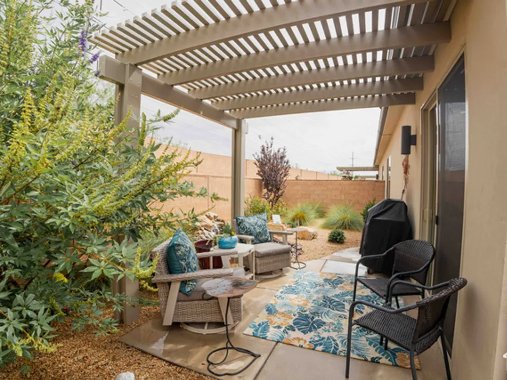 - Covered, Awning(s), Balcony, Covered Deck, Covered Patio