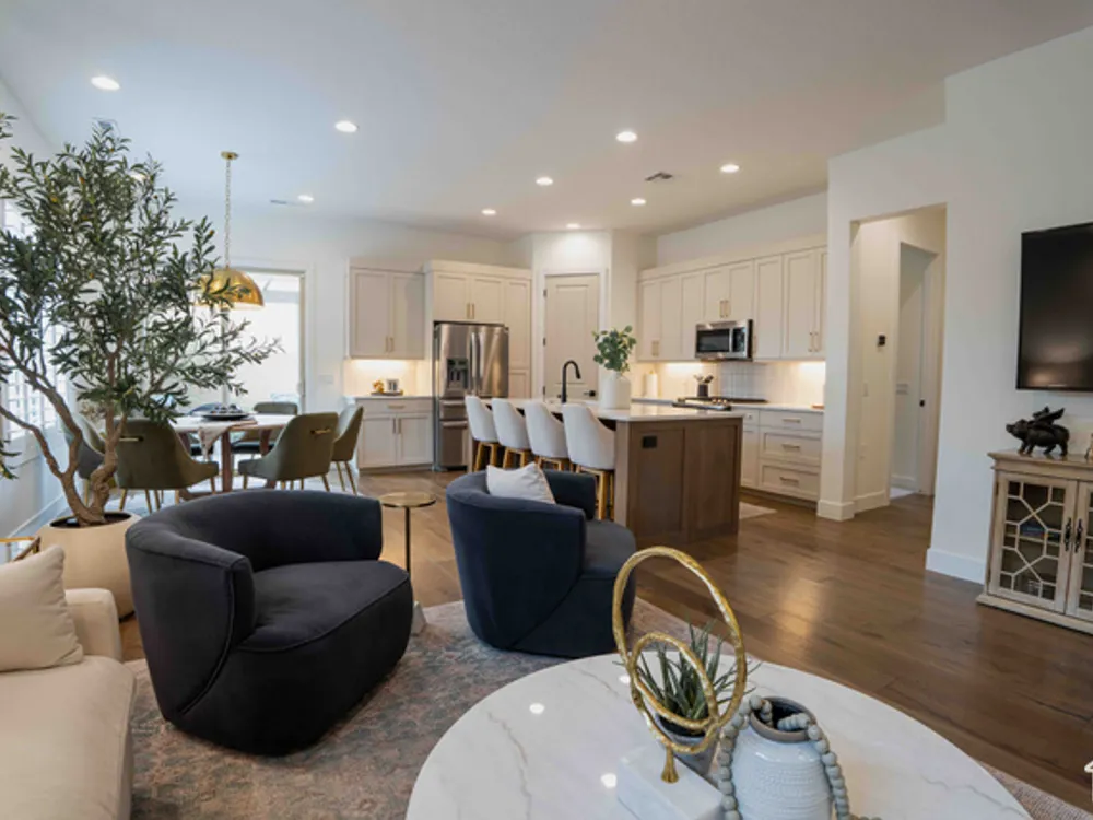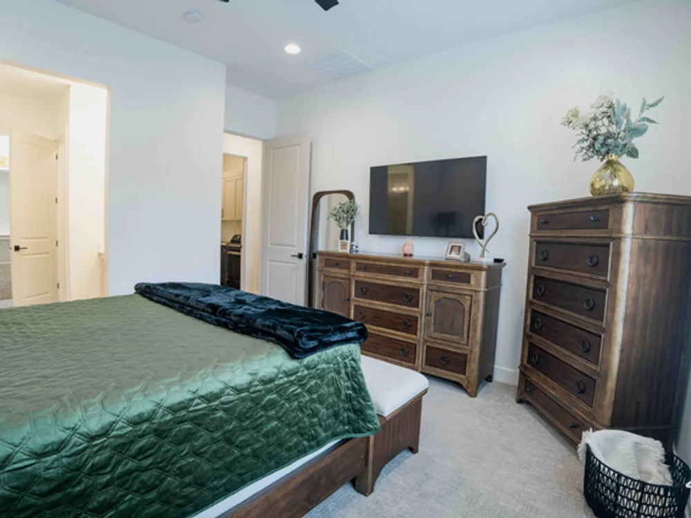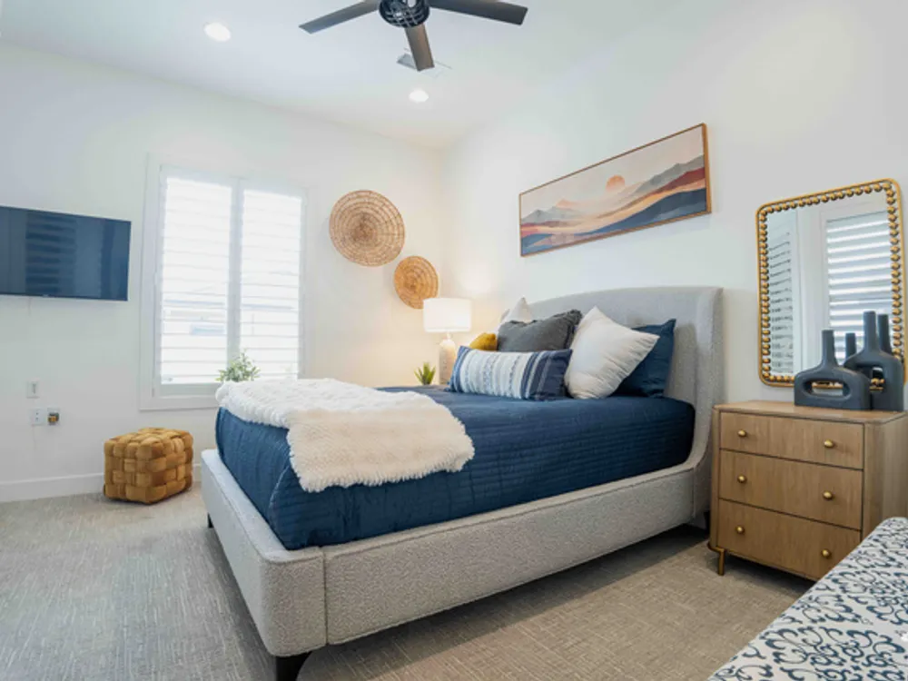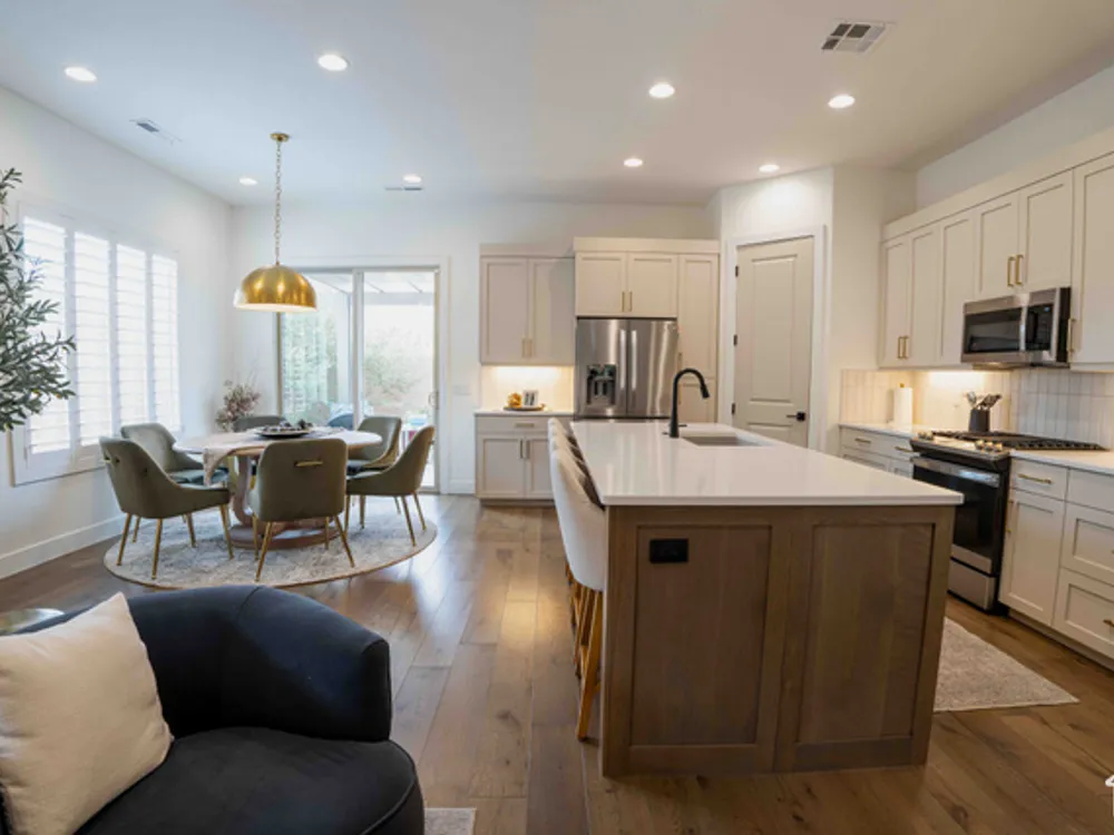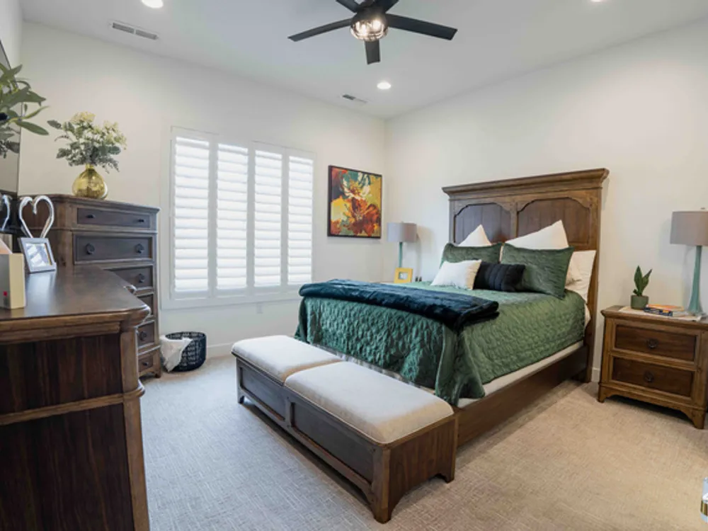 Resort style amenities, mountain views, and a home designed for everyday luxury. Welcome to the Villas at Sun River, where this beautifully upgraded 3 bedroom, 3 bathroom home combines comfort, style, and a true vacation every day lifestyle. Inside, you'll find soaring 9 foot ceilings, a spacious open layout, and a gourmet kitchen featuring a custom 7x4 quartz island with seating. The deluxe master suite offers a spa like retreat with a walk in shower and floor to ceiling Euro glass. Plantation shutters, epoxy sealed garage floors, abundant storage, and thoughtful finishes elevate the everyday experience. Step outside to enjoy your private 10x10 lattice cover, tranquil waterfall fountain, and captivating mountain views. As a resident, you'll have access to the brand new clubhouse with resort style amenities including a pool, spa, pickleball courts, state of the art fitness center, cooking facilities, and private events. Powered by Dixie Power.