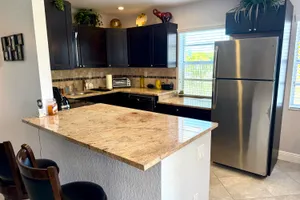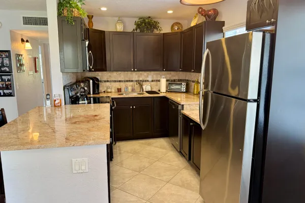 WOW! REMODELED, CORNER, 2 BEDROOM, 2 BATH STYLISHLY FURNISHED CONDO WITH ALL MODERN TOUCHES. 18''TILE ON DIAGONAL THROUGHOUT. OPEN KITCHEN WITH CUSTOM CABINETS, GRANITE COUNTERS, STAINLESS APPLIANCES, SNACK BAR, & DINING AREA. RECESSED LIGHTING & FANS. UPDATED BATHS. LARGE WALK IN CLOSET WITH BUILT IN SHELVES. SCREENED PATIO OVERLOOKING CANAL & GARDEN. WASHER & DRYER IN UNIT. OFFERED TURN KEY. ENJOY THE OUTSTANDING LIFESTYLE KINGS POINT OFFERS ITS RESIDENTS. THERE ARE 3 CLUBHOUSES, FEATURING AN ABUNDANCE OF ACTIVITIES. ENTERTAINMENT,PICKLEBALL, TENNIS, FITNESS CENTER, INDOOR & OUTDOOR POOL, SPA, SHUFFLEBOARD, CARD GAMES, CLUBS, GOLF COURSES...YOU NAME IT, YOU WILL FIND IT HERE AT KINGS POINT. SHORT DRIVE TO THE BEACH, SHOPPING, DINING, CULTURAL VENUES, & THE PB INTERNATIONAL AIRPORT.