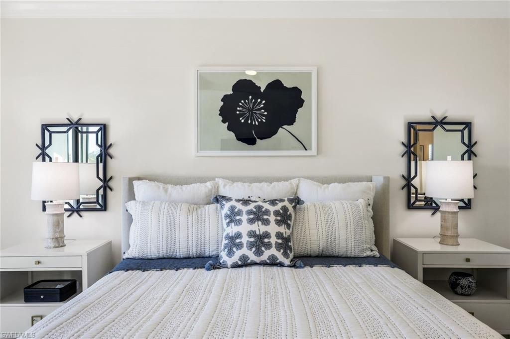 Captivating you the moment you step off the private elevator. A commodious great room with zero edge sliders seamlessly merges the expansive lanais. Enjoy panoramic views of the fountained lake, pool, & lush landscape. The coastal contemporary designed home is uniquely situated on a cul de sac providing privacy & sunny SE exposure. Boasting over 2900 sq ft of living to include 3 ensuites, powder room, & a study with private balcony. A generous gourmet kitchen with natural gas, 12 x 24 running bond tile, quartz countertops, & wine bar with dual coolers are a few of many enhancements to appreciate. Custom closets to maximize storage. Impact resistant windows & doors in addition to electric storm screen roll downs on the loggias. Convenient motorized screen storm protection keeps things tidy and private for peace of mind and outdoor living at its finest! A highly amenitized gated community, a private Island Beach Park, Waterfront Restaurant, Kayaking, Fitness Center, Tennis, Pickleball, in addition to optional golf memberships. Located within minutes to over 144 retail shops, restaurants, & the International Airport. Envision a lifestyle of endless opportunities in a most preferred SWFL location.