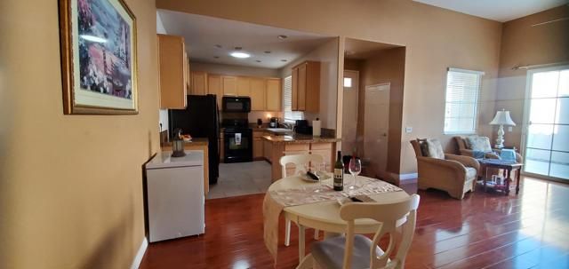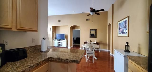 Total purchase price is $455,000 ($352,000+$103,000). Nestled in the heart of the Watercolors 55+ community, this move in ready 3-bedroom, 2-bathroom home impresses with its spacious and airy floor plan, highlighted by soaring vaulted ceilings.. As a moderate-income qualified property, it includes a $103,000 silent second provided by the LQ Housing Authority, catering to 55+ owner-occupants who meet income and asset criteria. The gated community offers a recreation center, community pool and spa, and low HOA dues that cover internet and cable services. The residence features wood-like flooring throughout, tile flooring in the kitchen and bathrooms, solar lights in two bedrooms, granite countertops, and various upgrades, including newer cabinetry and appliances in the kitchen. This property exemplifies pride of ownership, presenting a clean and move-in-ready living space. Income limits minimum and maximum income based on household size:1 person 62,501 to 87,300, 2 people 71,651 to 99,750, 3 people 80,551 to 112,250. Must be a primary residence, no rentals, no all cash purchases, no investment buyers.