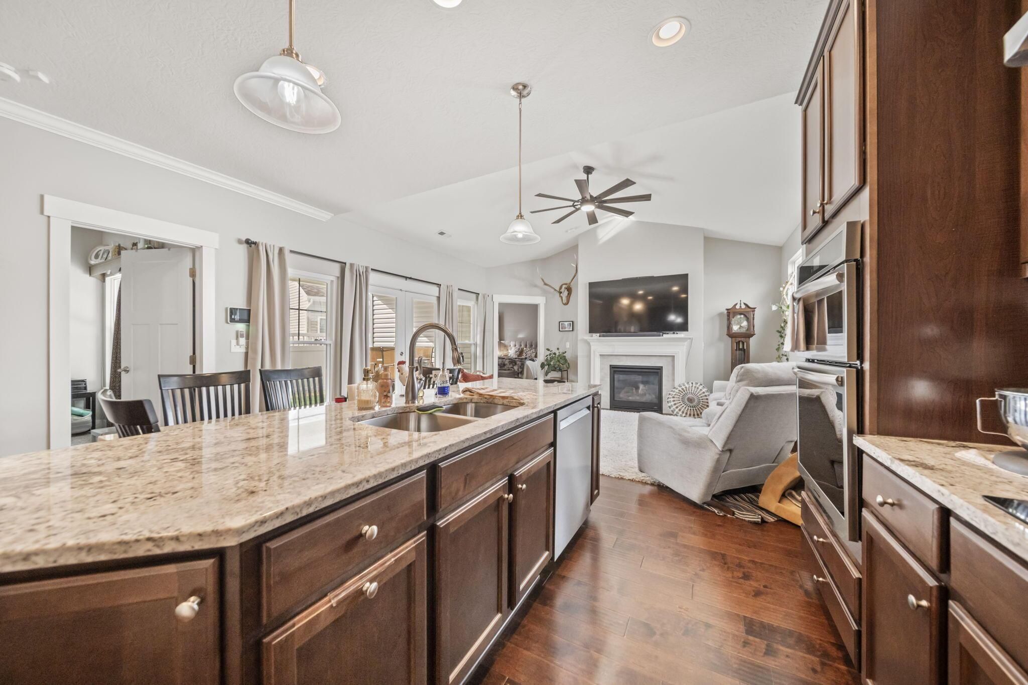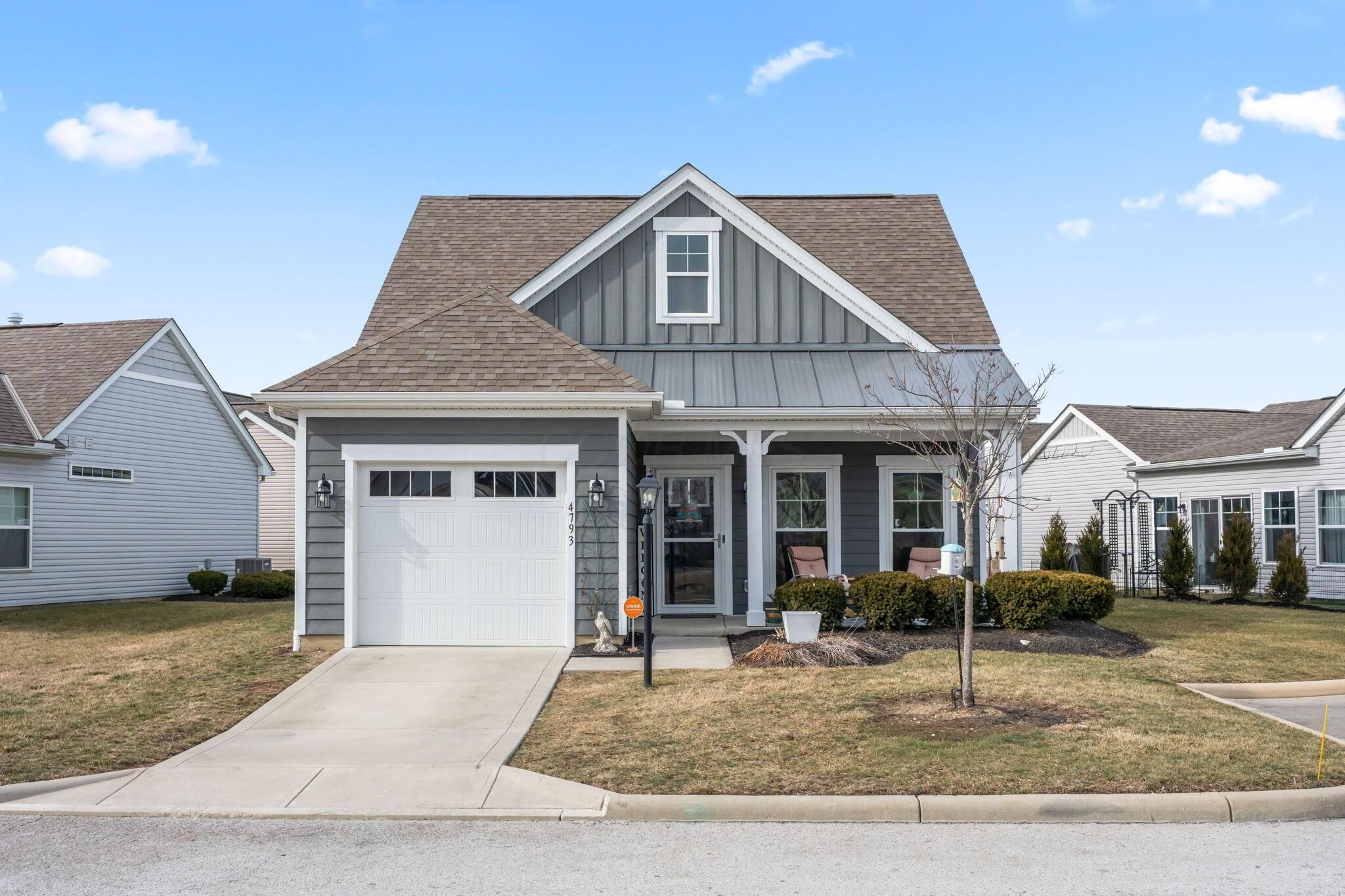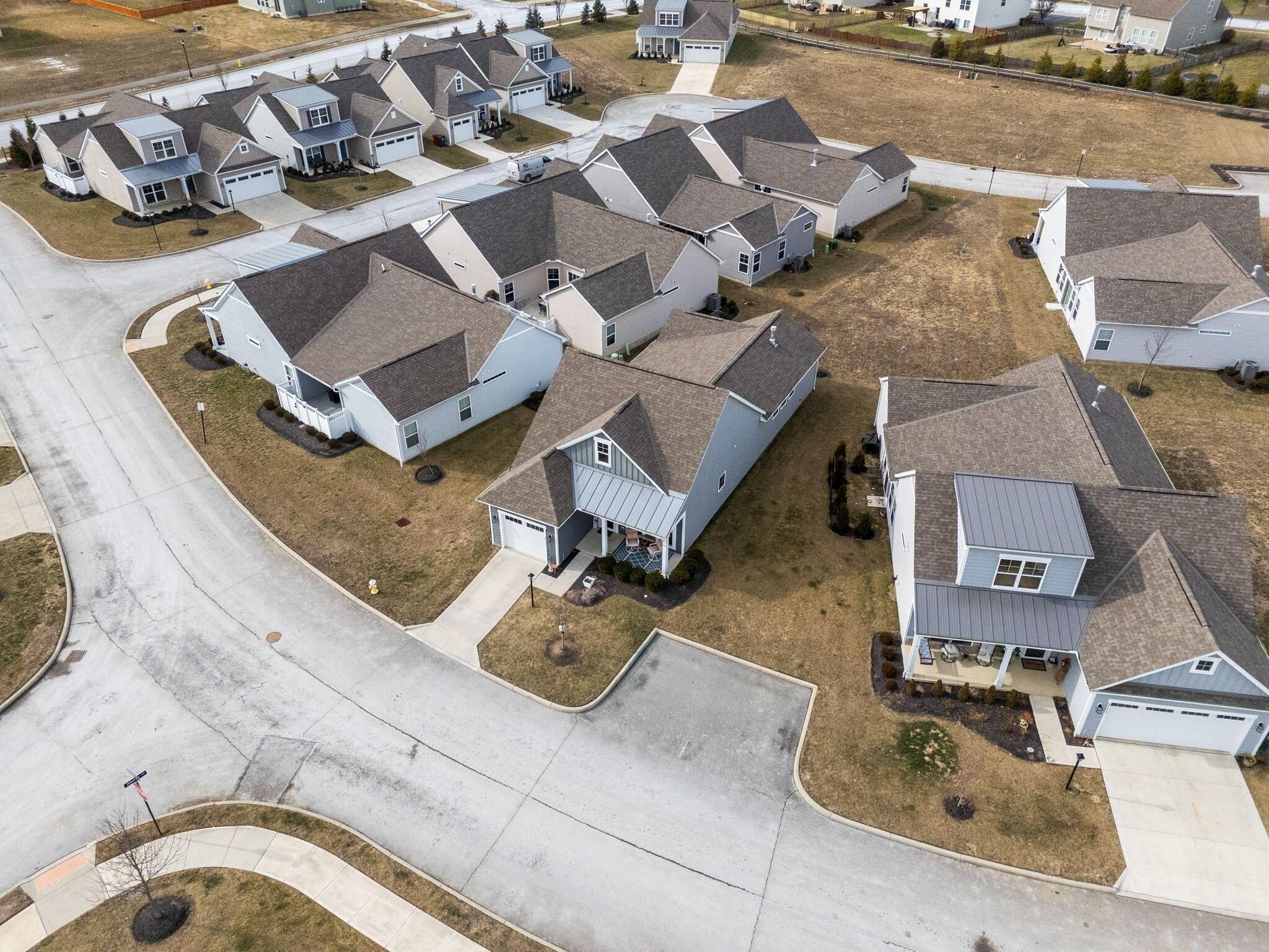 This thoughtfully upgraded 2-bedroom, 2 full bath ranch-style home with a dedicated office offers more than new construction--with quartz countertops, tempered windows, elegant French doors, and stylish ceiling fans (including on the covered patio). Unlike the nearby new builds, it includes all kitchen appliances, extra garage storage, and a Vivint security system for added peace of mind. Nestled against preserved green space with nearby walking trails and an active clubhouse, you'll enjoy a rare blend of privacy, community, and low-maintenance living. While it's been on the market longer, the extended days are simply about timing—this home is in excellent condition and truly move-in ready.(Builder: Trinity. Floorplan: Newton. Community: Woodside at Holton Run.) HOA includes exterior maintenance, water, sewer, trash, snow removal, and clubhouse usage.