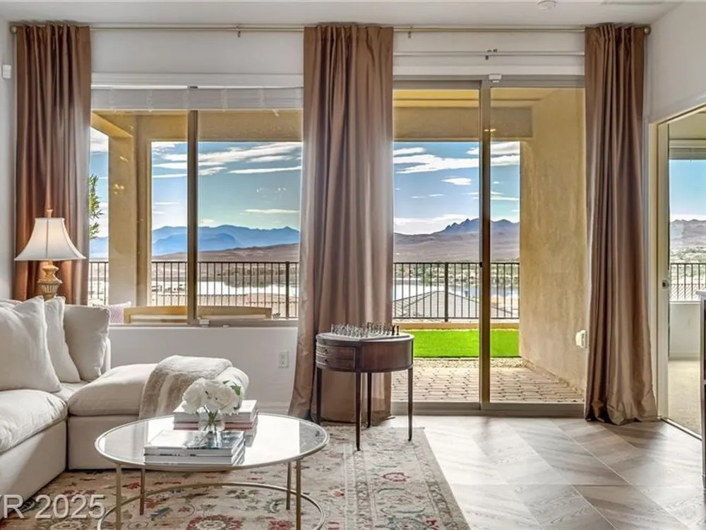 IF A LAKE VIEW MATTERS, THEN LOOK NO FURTHER. ELEVATED HIGH ABOVE THE ENCLAVE OF LAKE LAS VEGAS AWAITS 180-DEGREE VIEWS. Rare panoramic lake, mountain and golf course views greet you as soon as you step into the foyer of this stunning single story home. This luxurious home newly built in 2023 features an open spacious floor plan with high ceilings, gourmet kitchen with quartz island and full backsplash, walk-in pantry, primary bedroom suite with custom closet, covered patio to enjoy the scenic vistas, mature landscape, 3rd bedroom perfect for home office, and so much more. Includes membership to the gated and exclusive Del Webb Clubhouse with resort and lap pools, spa, pickleball and bocce courts, fitness facility. Feel your cares slip away as you relax in your new home with breathtaking views and enjoy the Lake Las Vegas resort lifestyle.